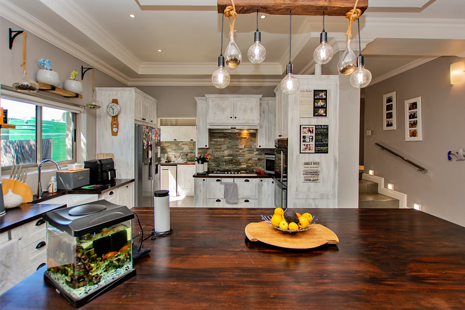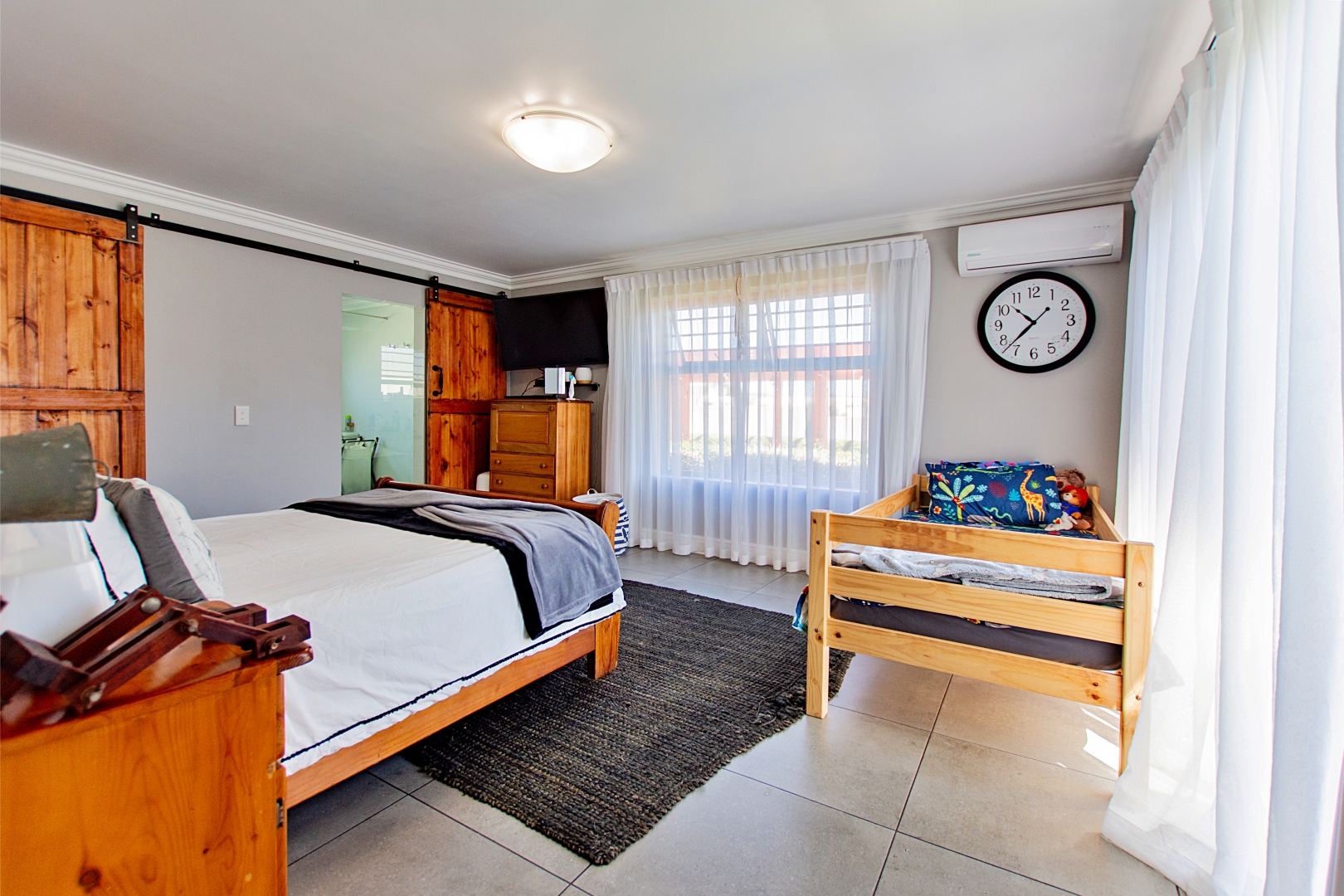 The property is fully fenced, providing privacy and security for residents. The roof, made of tiles, ensures durability and adds to the overall aesthetic appeal of the house. With its combination of modern interior features and attractive exterior elements, this 5 bedroom house in Myburgh Park is a must-see for those seeking a stylish and secure home in Langebaan.