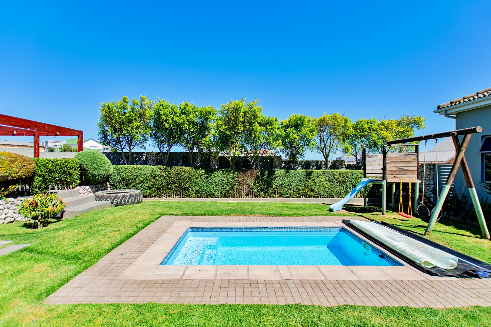 Moving outside, the property offers a range of delightful exterior features that add to its appeal. The highlight is a sparkling pool, perfect for enjoying the warm Langebaan weather and creating lasting memories with loved ones. The landscaped garden adds a touch of natural beauty and creates a peaceful oasis for relaxation.