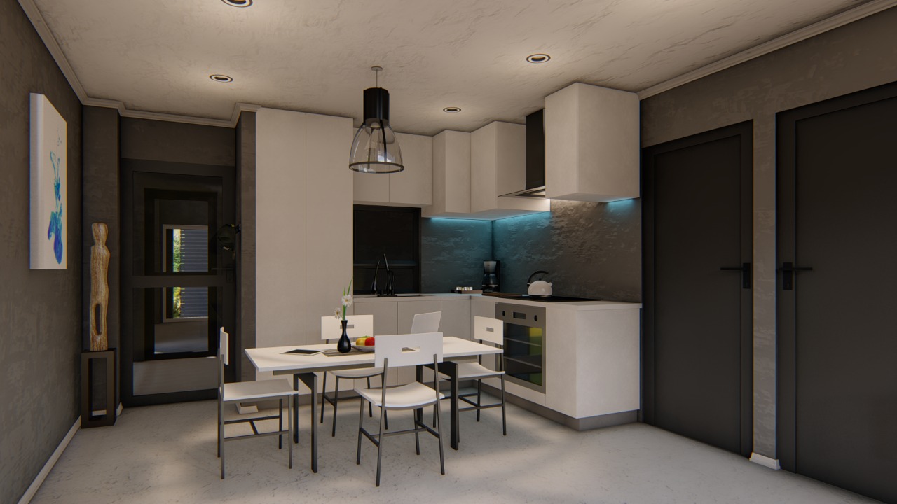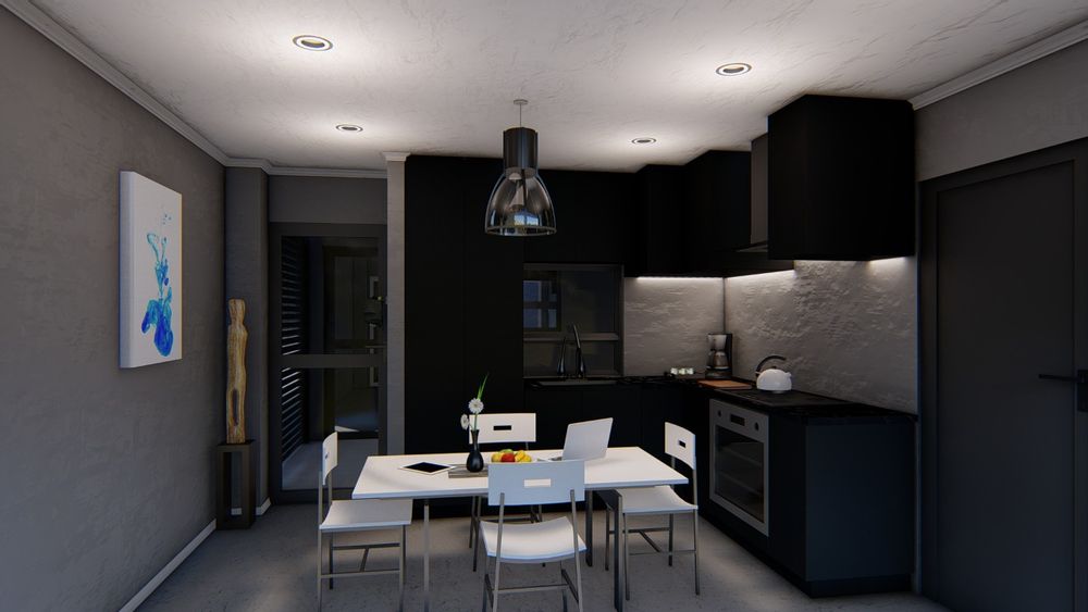 A single, stylish bathroom caters to your needs, while the fully equipped kitchen invites culinary adventures. Relax and unwind in the cozy lounge, perfect for post-beach relaxation. Step outside onto your private patio, a tranquil haven for enjoying morning coffee or evening cocktails under the starlit Mykonos sky.