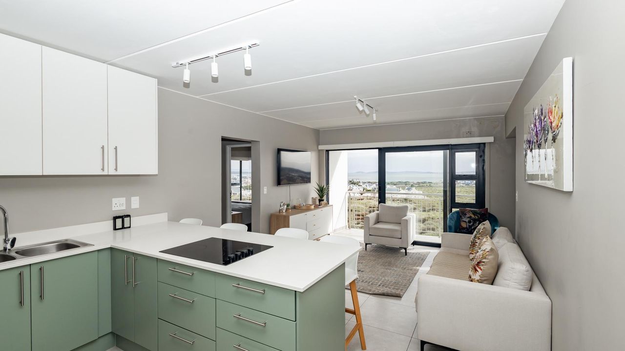 Enjoy open-plan living with a sleek modern kitchen, stylish furnishings, and seamless flow to a spacious balcony with uninterrupted ocean views.