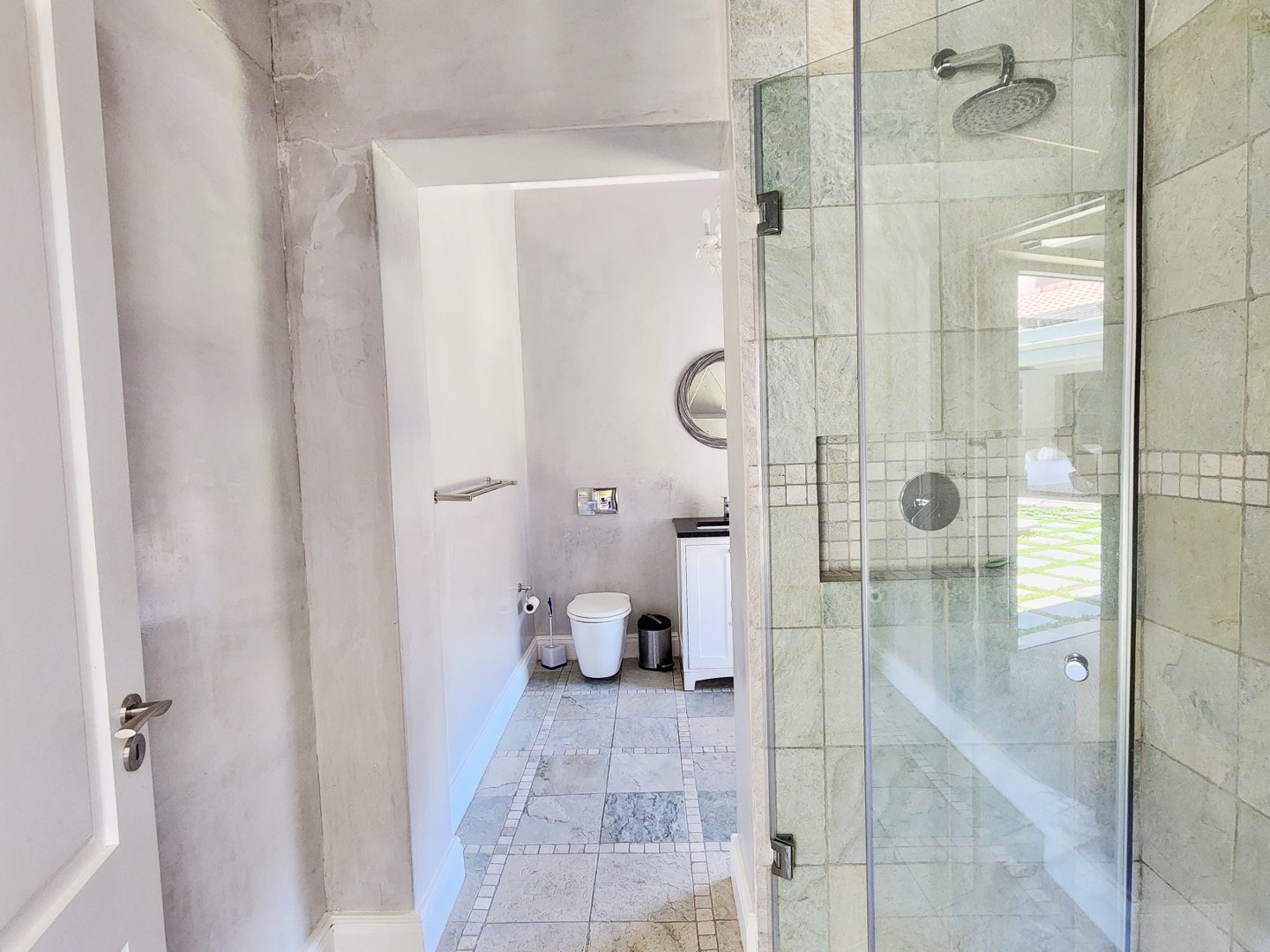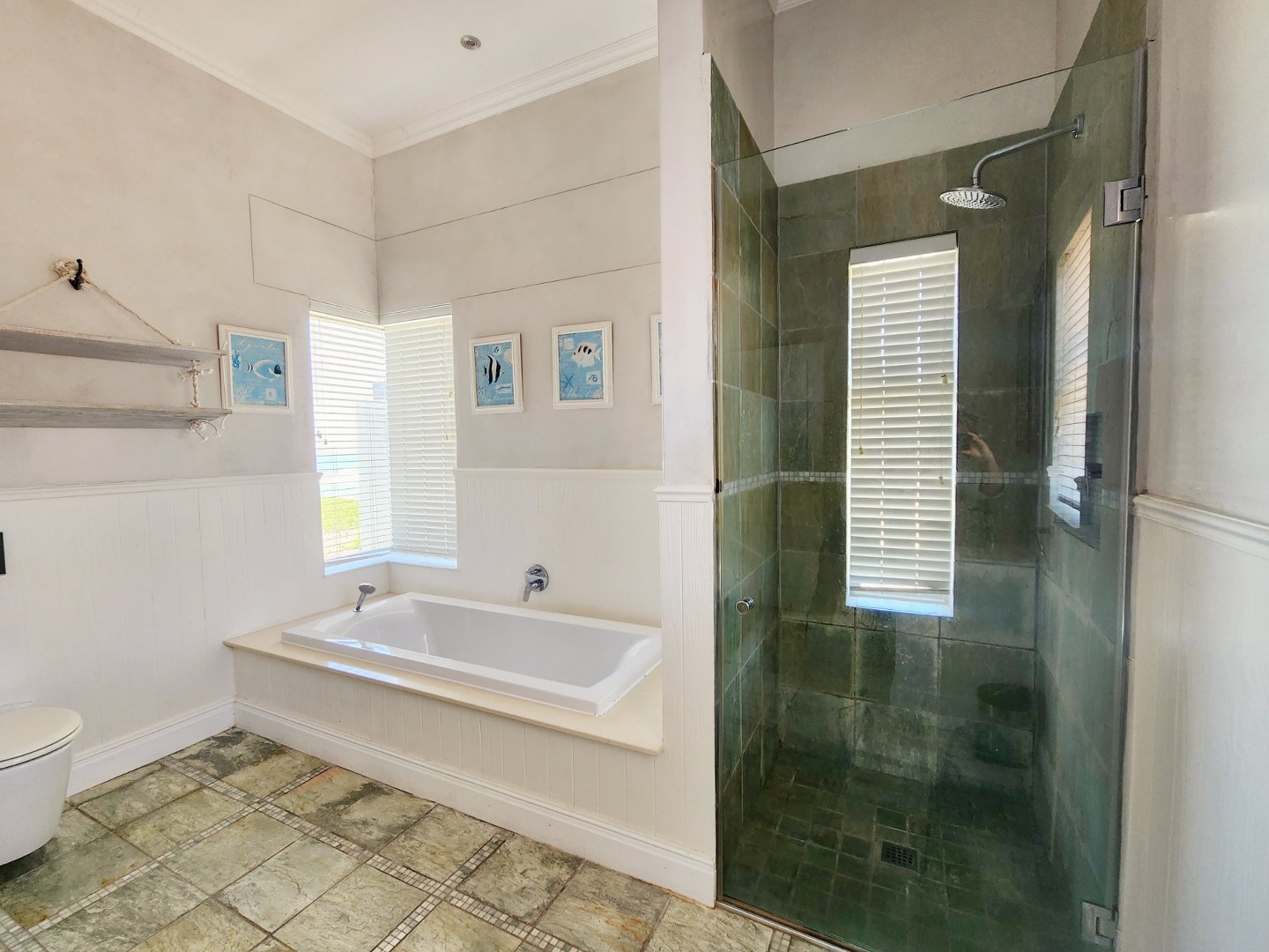 The spacious interiors are thoughtfully designed to create an airy and open ambiance. Entertain with flair in the open living areas, where stackaway doors seamlessly connect the indoor pool area, sliding doors reveal a covered patio with a private beach access point, offering an unparalleled connection to the sea. The gourmet kitchen is a chef's dream, featuring top-of-the-line appliances, including a built-in microwave, double eye-level oven, coffee machine, gas hob, and extractor. The expansive marble counter space provides ample room for culinary creations, while the separate scullery ensures convenience and organization.