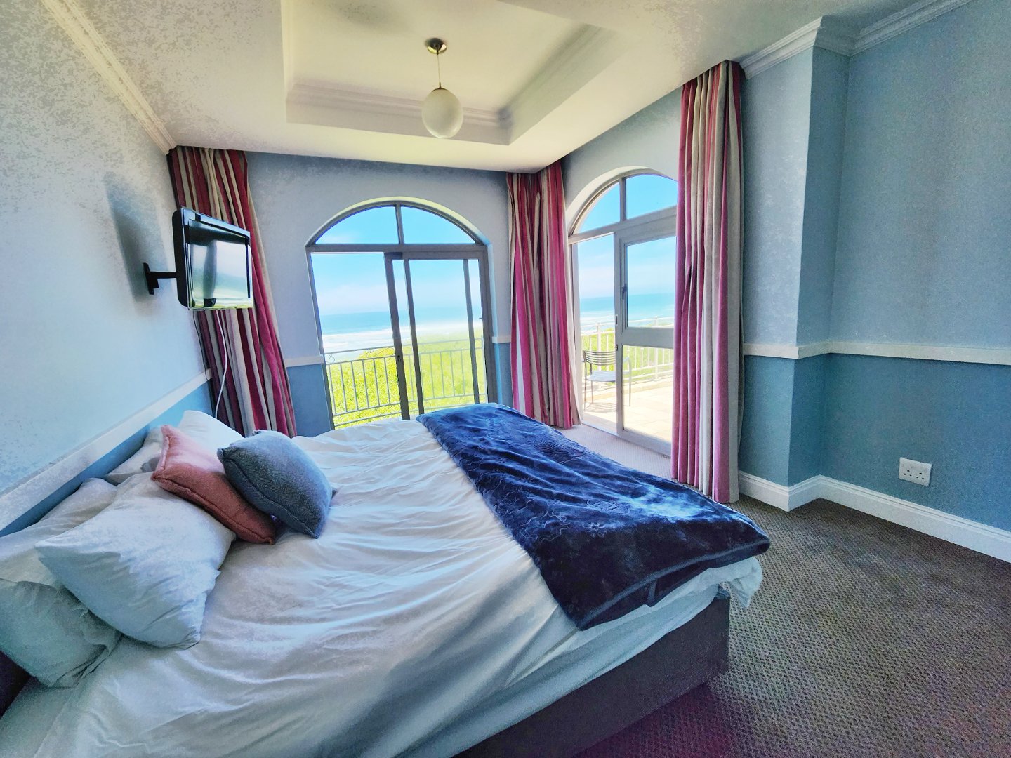 For added versatility, two studio flatlets above the garages feature mini kitchenettes, en-suite bathrooms, and balconies with partial ocean views—ideal for use as teenage retreats or potential rental income.