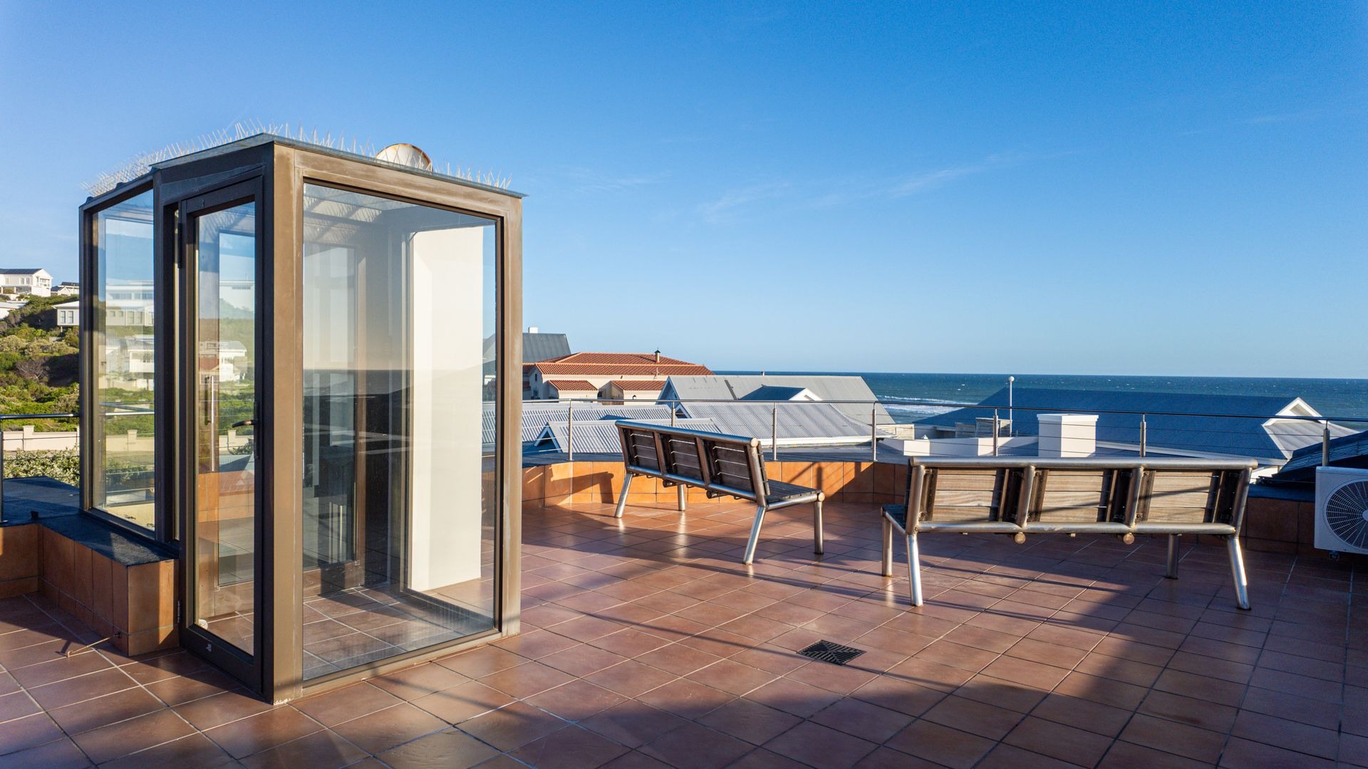 The pièce de resistance awaits on the rooftop terrace, accessible by one of two commercial-grade elevators, where you can bask in the panoramic views of the Indian Ocean and soak in the sun.