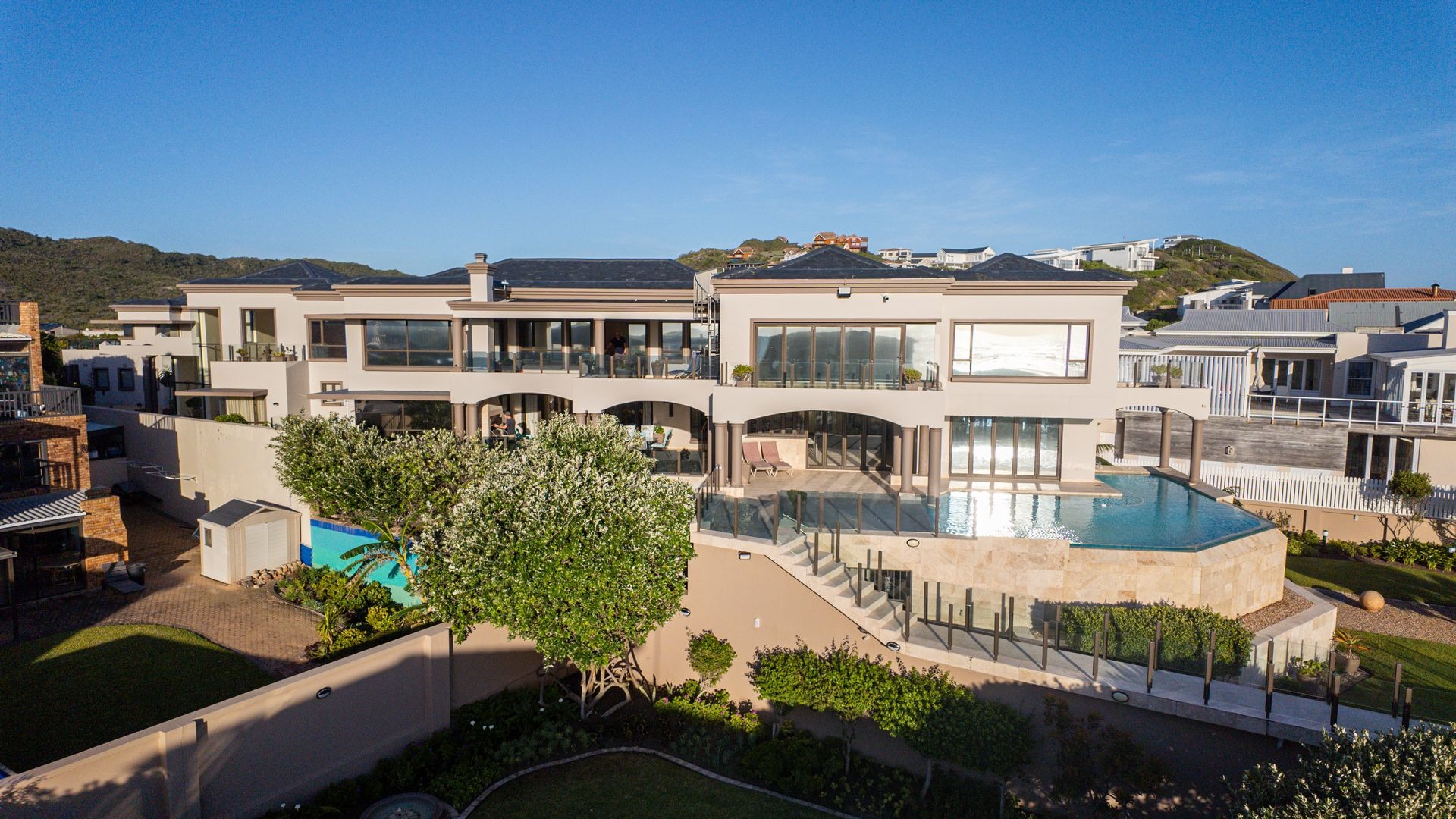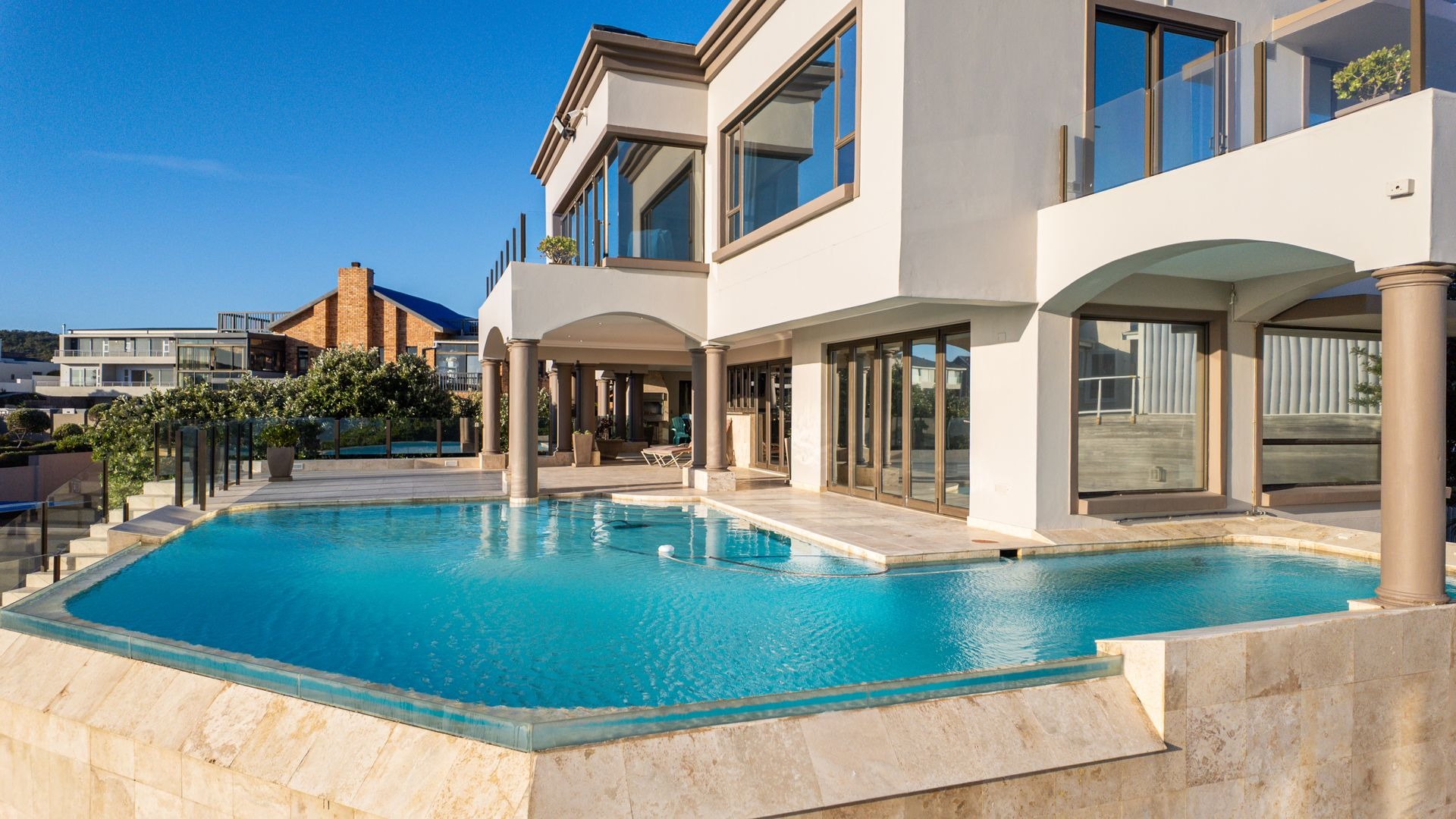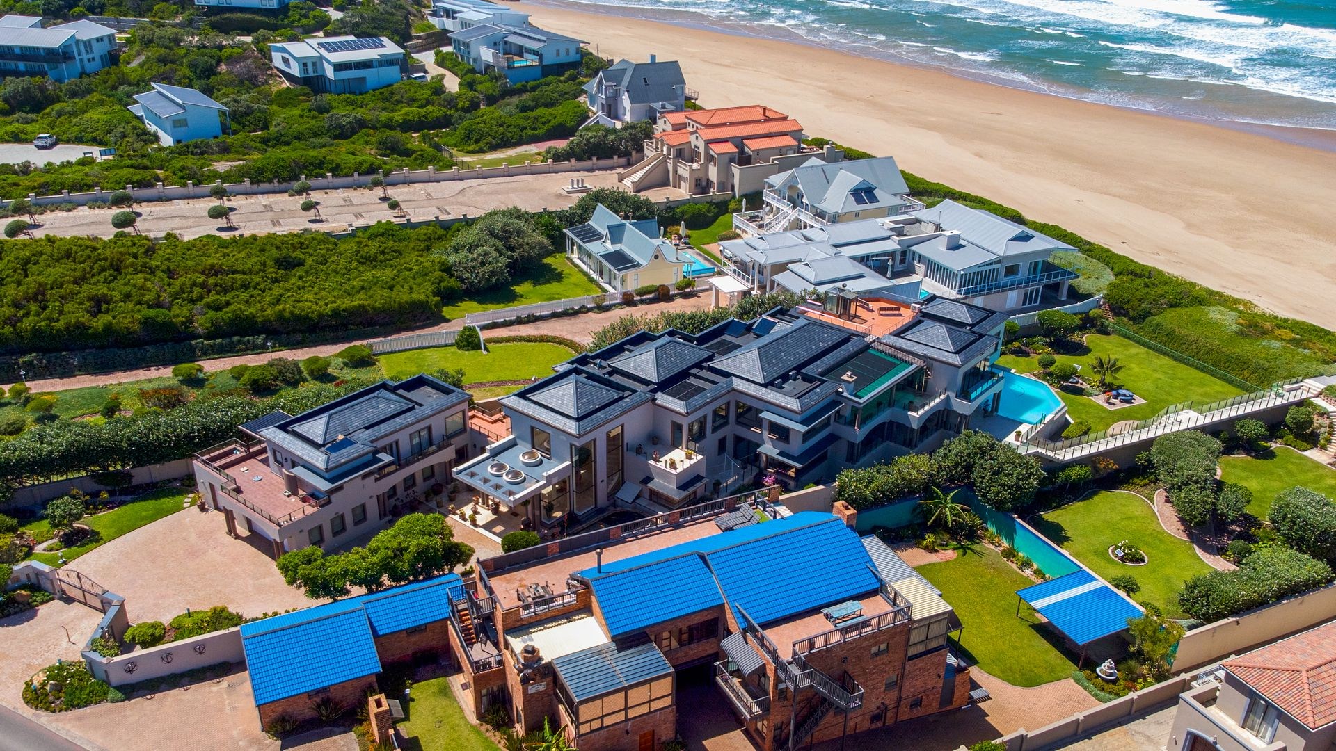 Welcome to your own slice of paradise, set on the Boulevard strip of Myoli Beach, equidistant to two of the Garden Route’s most stunning and world-famous beaches, Cola Beach and Myoli Beach, where coastal living reaches new heights of elegance and comfort. This architectural masterpiece, set on a sprawling 3,765 square meter property, boasts 1, 932 sqm of luxurious living space showcased across three levels, offering breathtaking ocean views that redefine seaside serenity. This stunning home epitomizes coastal living. Residence amenities include open, airy design entertainment areas, home cinema, private gym, rooftop terrace and so much more...