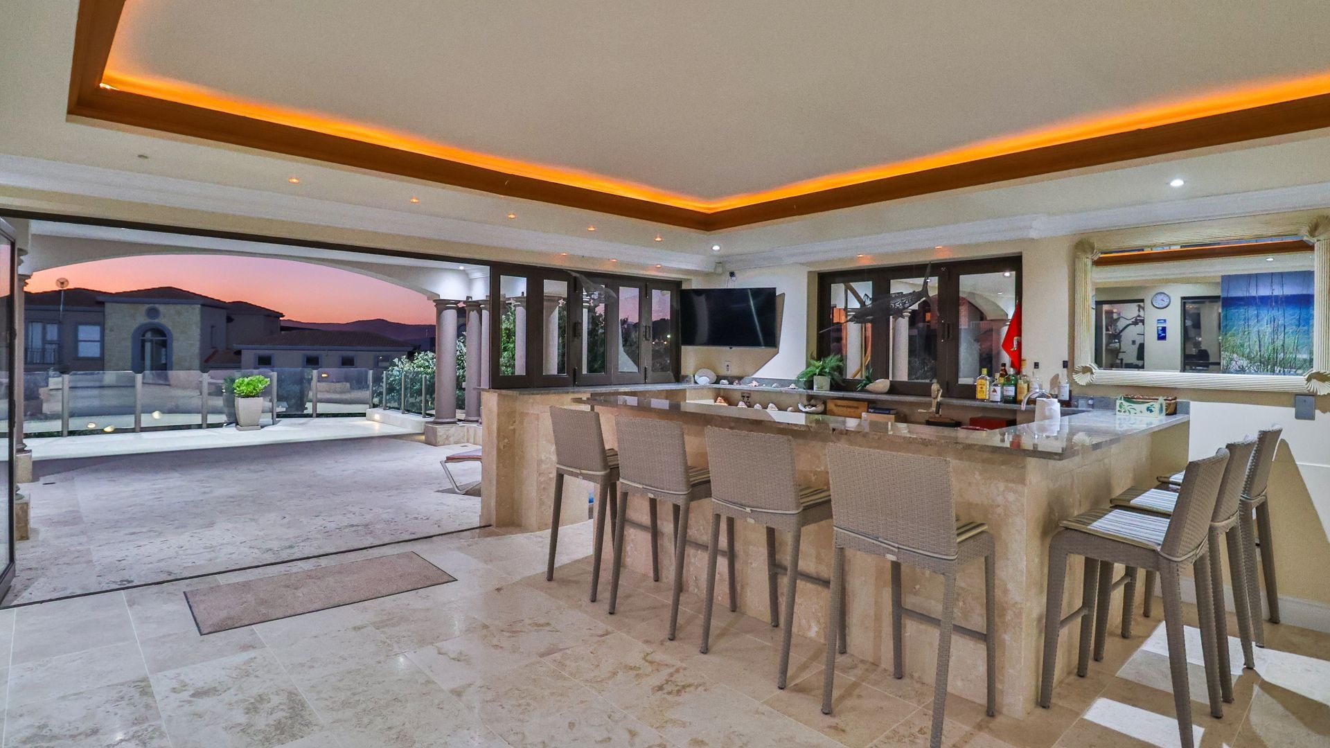 For your ultimate relaxation and entertainment, indulge in the state-of-the-art 9-seater home cinema or unwind at the sophisticated open-plan entertainment room complete with a stylish cigar bar.
