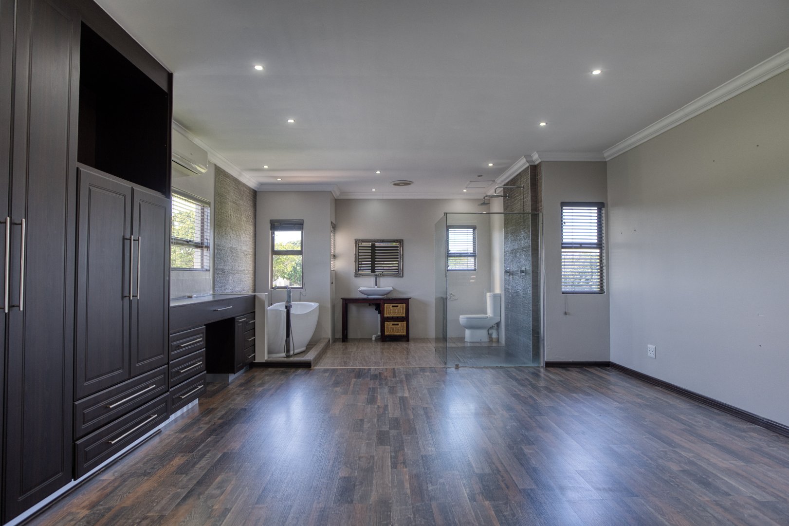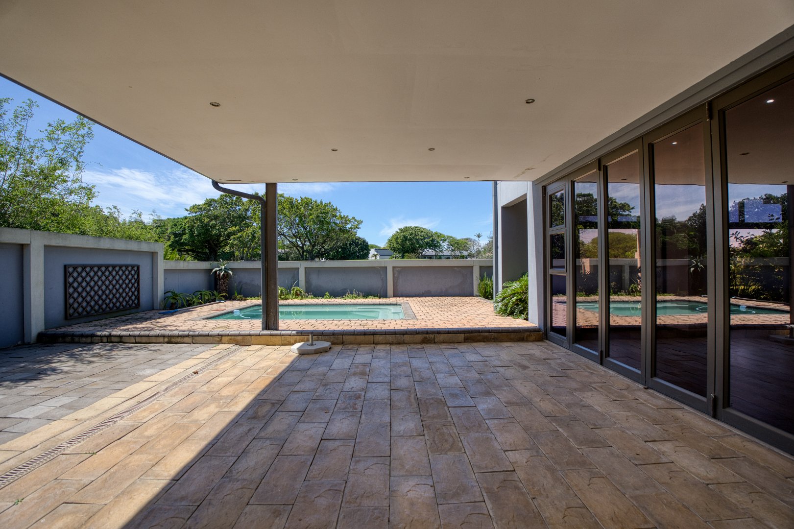 The open-plan kitchen, dining, and lounge areas flow effortlessly, creating a warm and inviting atmosphere ideal for entertaining or family gatherings. Large glass doors open to an outdoor entertainment area complete with a sparkling swimming pool and scenic views over the prestigious Mzingazi golf course. The property also boasts a three-car garage and ample off-street parking, making it convenient for both residents and guests. This home offers an unparalleled lifestyle in one of the estate’s most sought-after locations, combining elegant living spaces with a serene, natural setting.