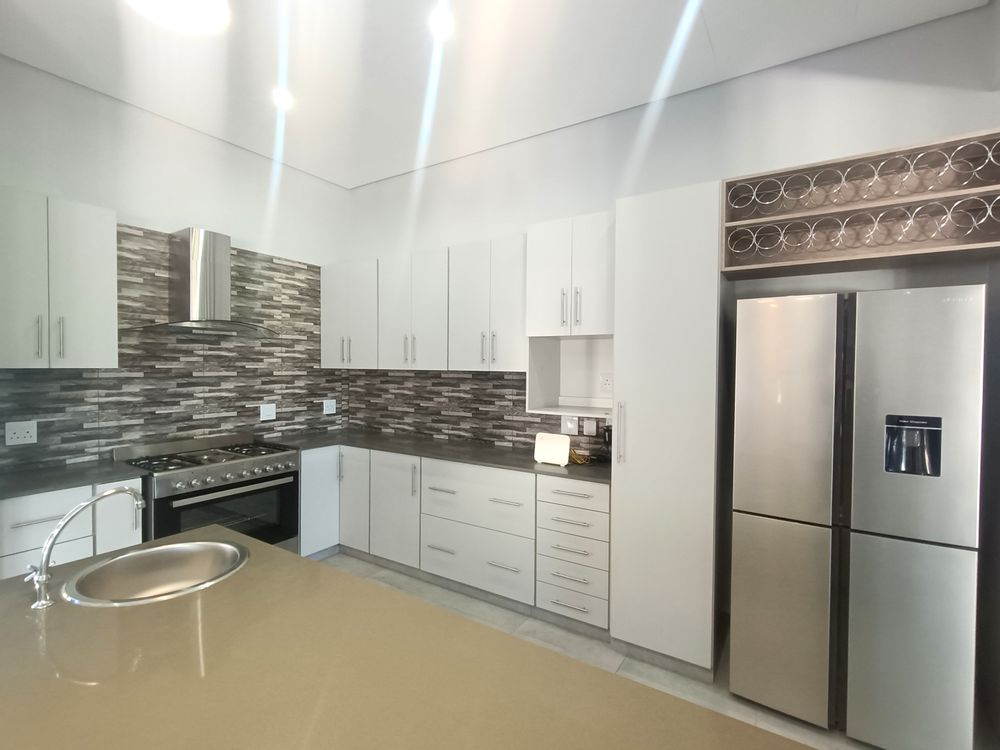Discover refined elegance and space in this stunning five-bedroom residence nestled within the prestigious Mzingazi Golf Estate. Perfectly designed for comfort, entertaining, and everyday luxury, this home offers a seamless blend of modern finishes and timeless charm. With an automated double garage plus an extended automated space ideal for a golf cart, storage is effortless thanks to ample built-in cupboards. Step inside to be welcomed by a light-filled interior where an open-plan kitchen with granite countertops, a gas stove, and a separate scullery with generous cupboard space creates the perfect heart of the home. The expansive dining and lounge area flows naturally onto a large covered patio with a built-in braai – an entertainer’s dream setting.