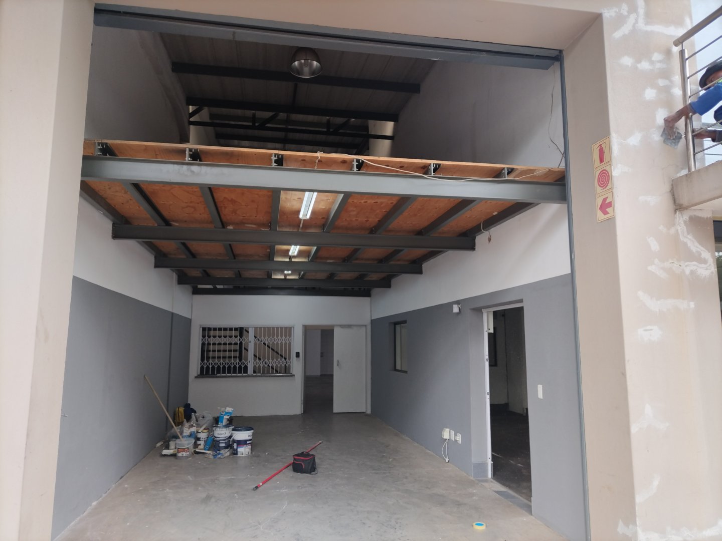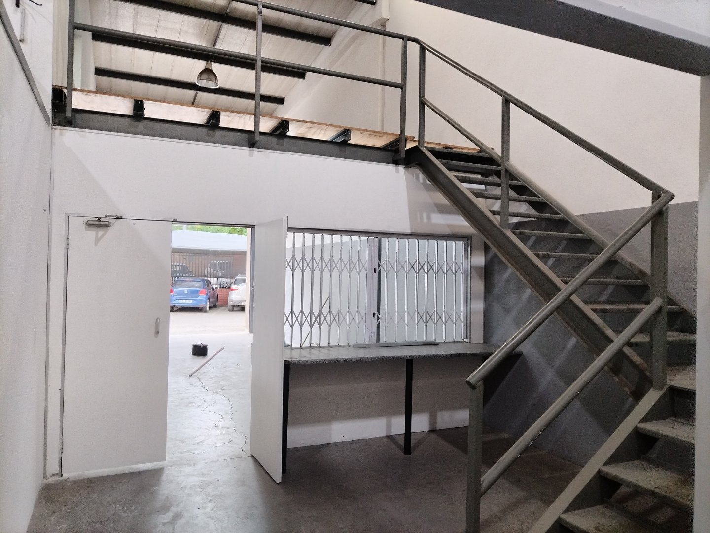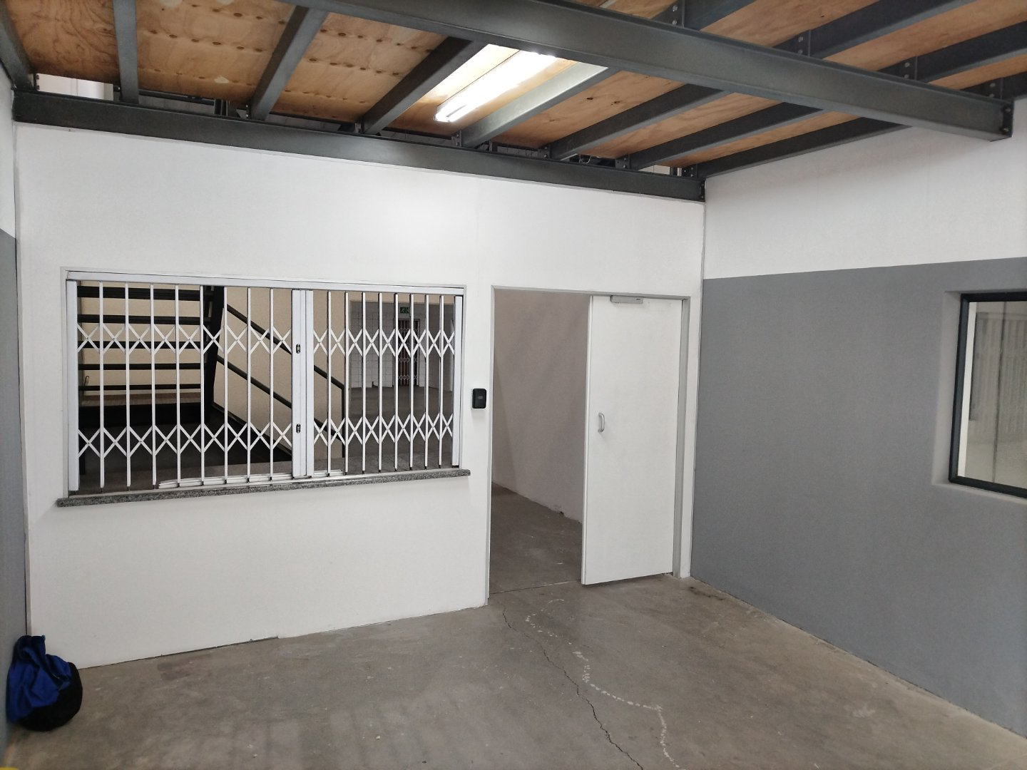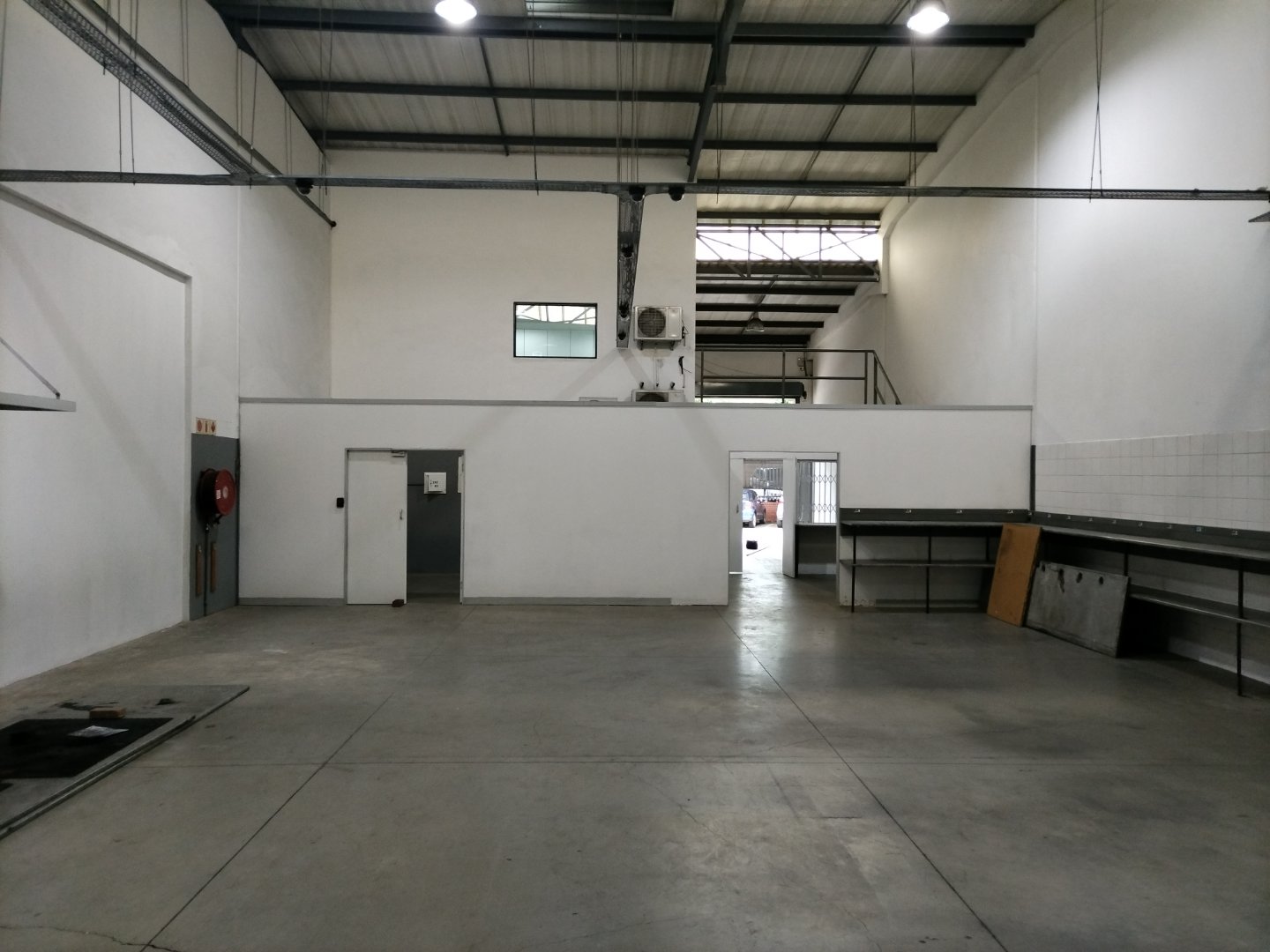 Warehouse component measuring 230m2, complemented with an office section of 63m2 and a mezzanine floor of 38m2.