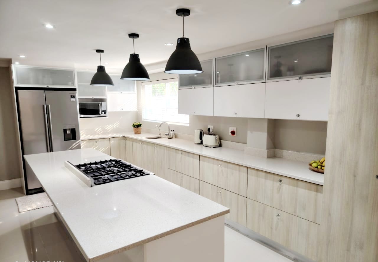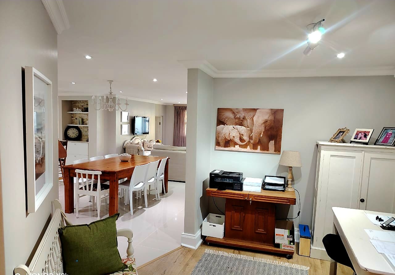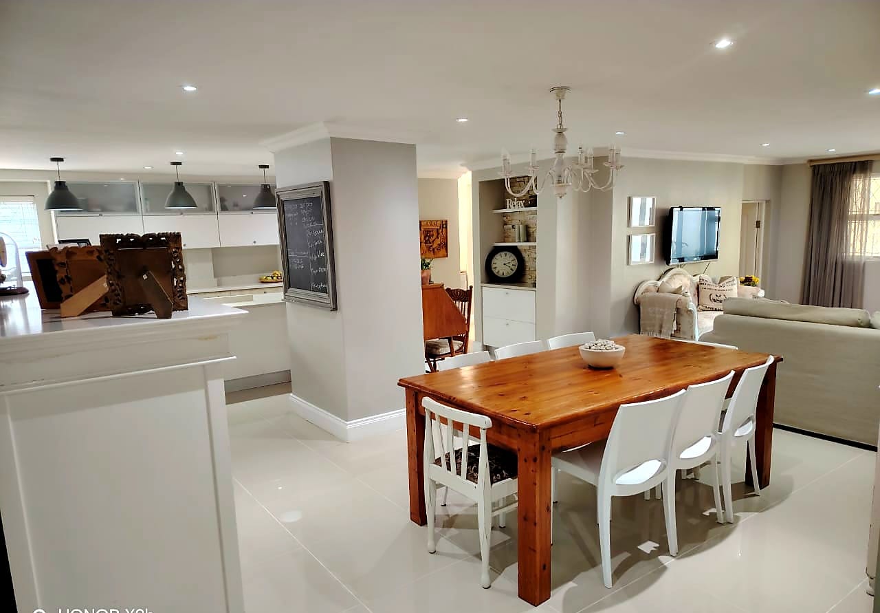 This immaculate residence features a modern, newly fitted gourmet kitchen that flows seamlessly into the open-plan dining area. The home boasts two spacious lounges—a formal lounge and a TV lounge with sliding doors opening onto a beautiful deck—perfect for relaxed family living and entertaining.