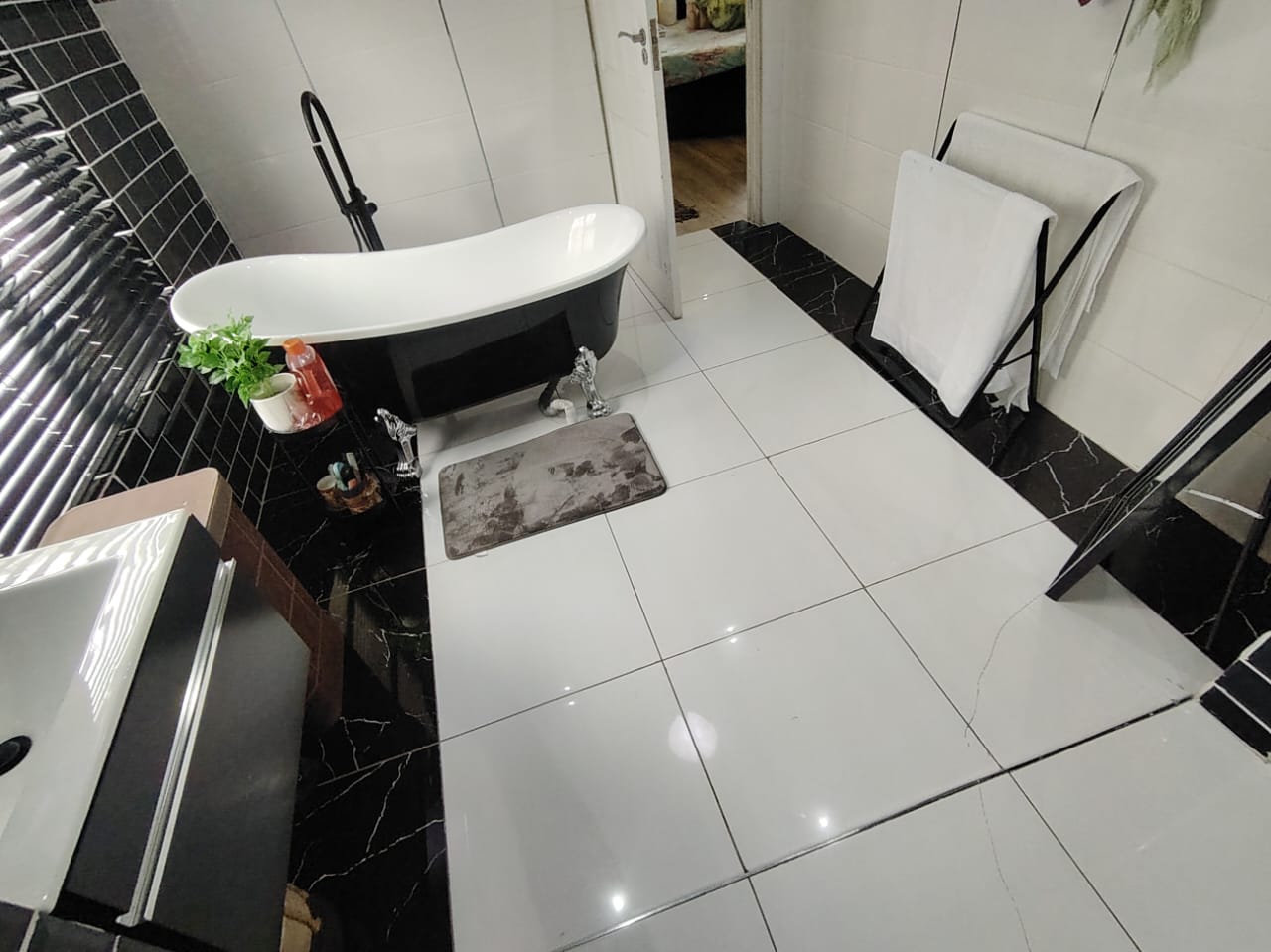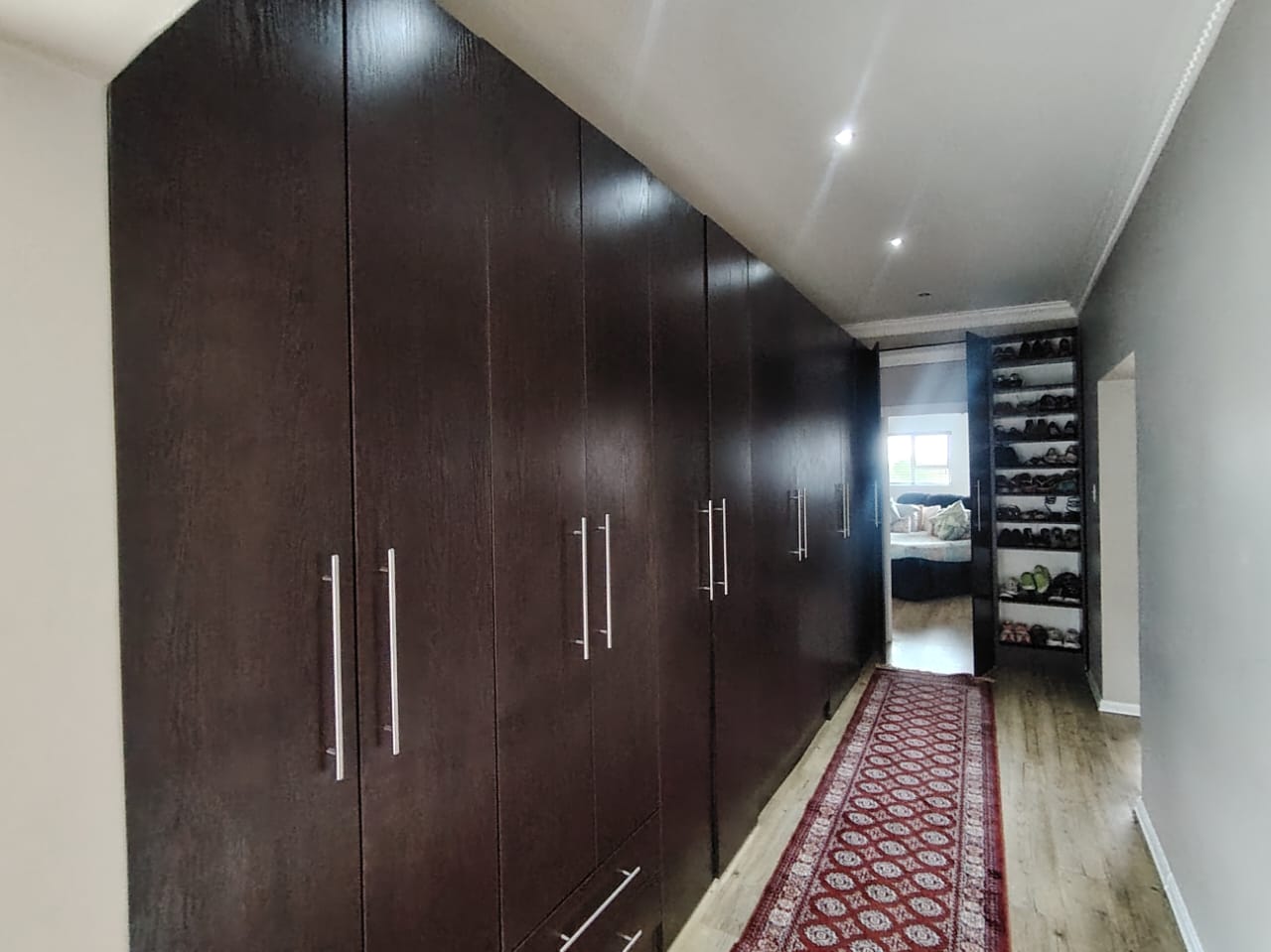 The home comprises four generously sized bedrooms, all with built-in cupboards. The main bedroom is a true retreat, featuring a large dressing room and a beautifully designed en-suite bathroom that adds a touch of luxury.