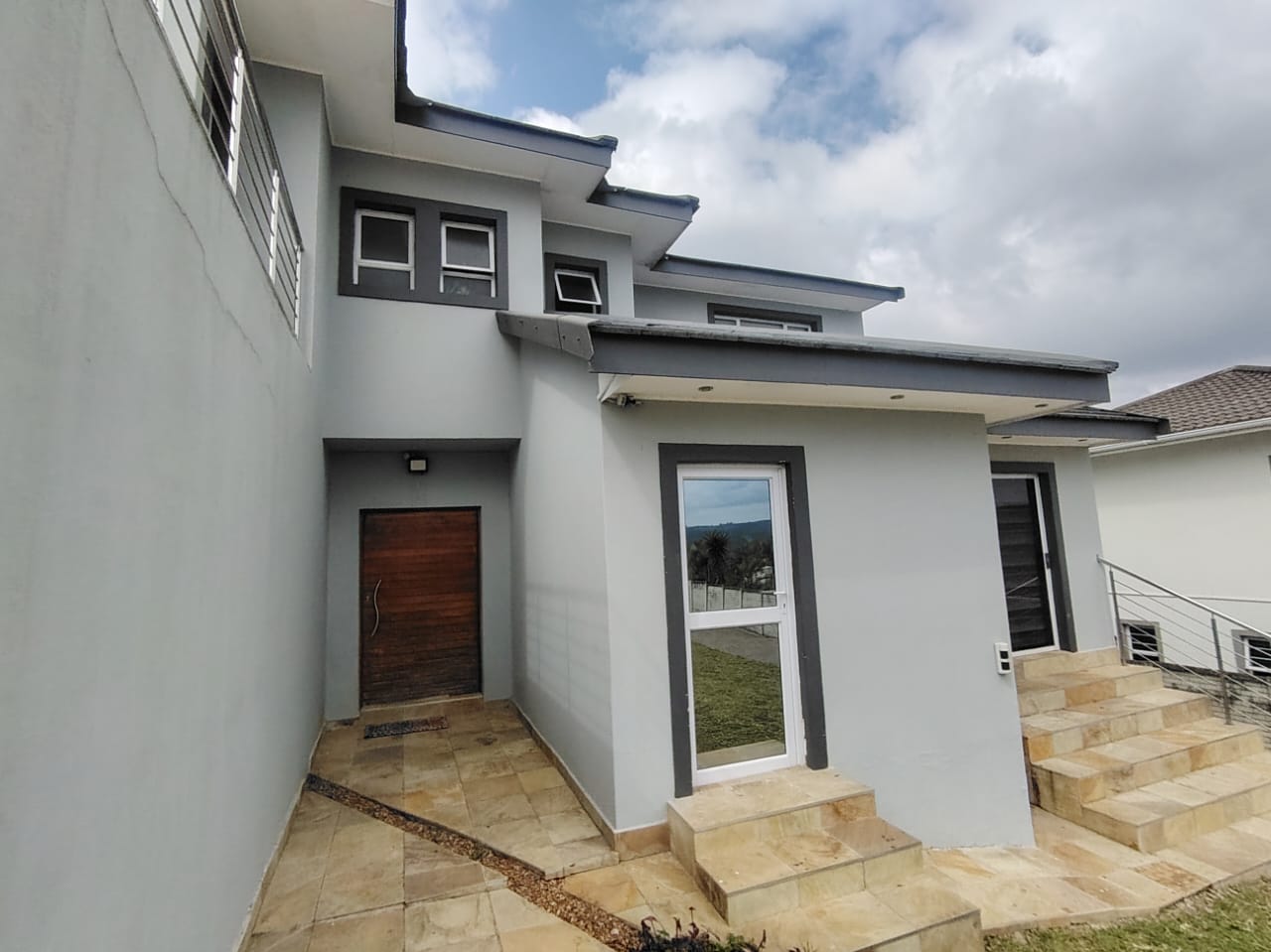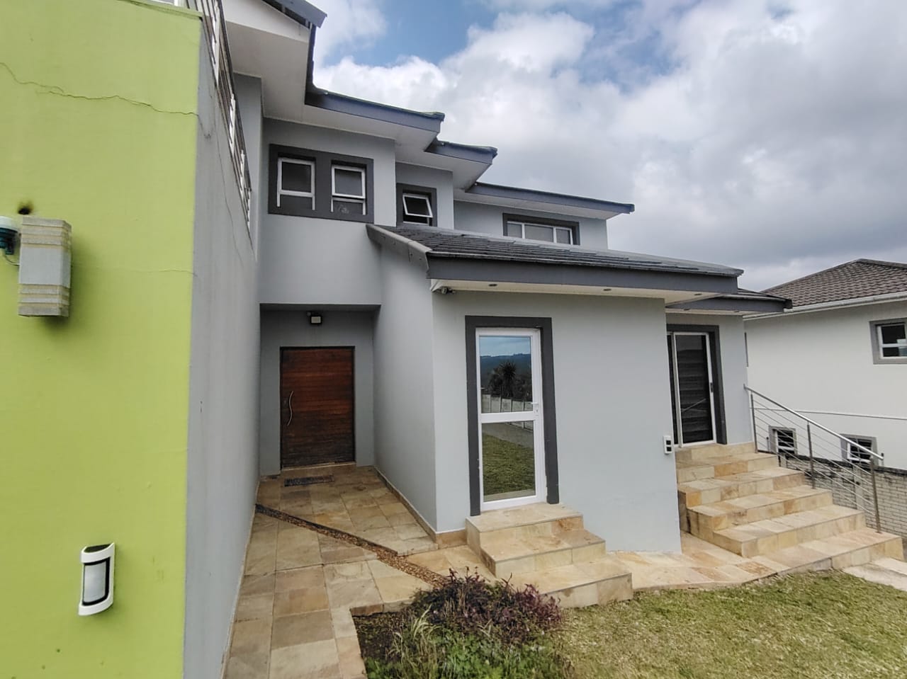 There are four lounge areas to enjoy. One is located upstairs and opens out onto a balcony, where you can take in stunning views of the surrounding valley. The three lounges downstairs provide ample space for family gatherings, relaxation, and entertainment. A well-appointed dining room flows seamlessly from the living spaces, while the large kitchen is designed to meet all your culinary needs.