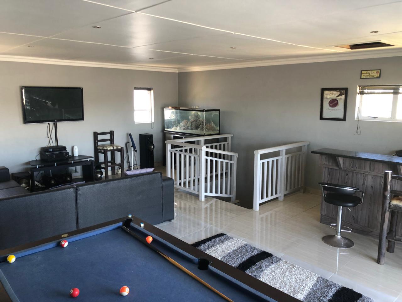The property is built for entertaining, featuring a dedicated entertainment wing complete with an additional lounge, a stylish bar, and a balcony with a built-in braai area.