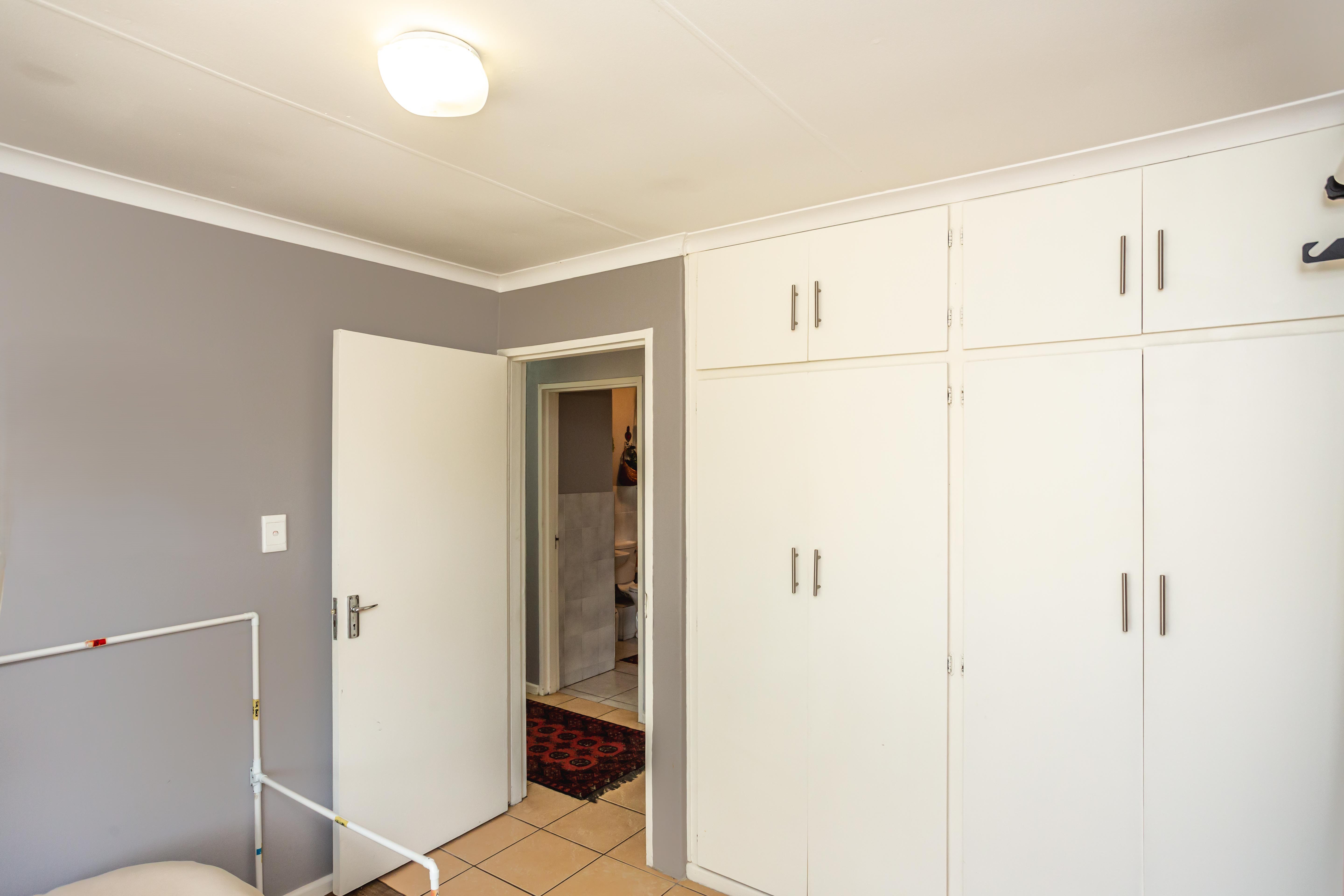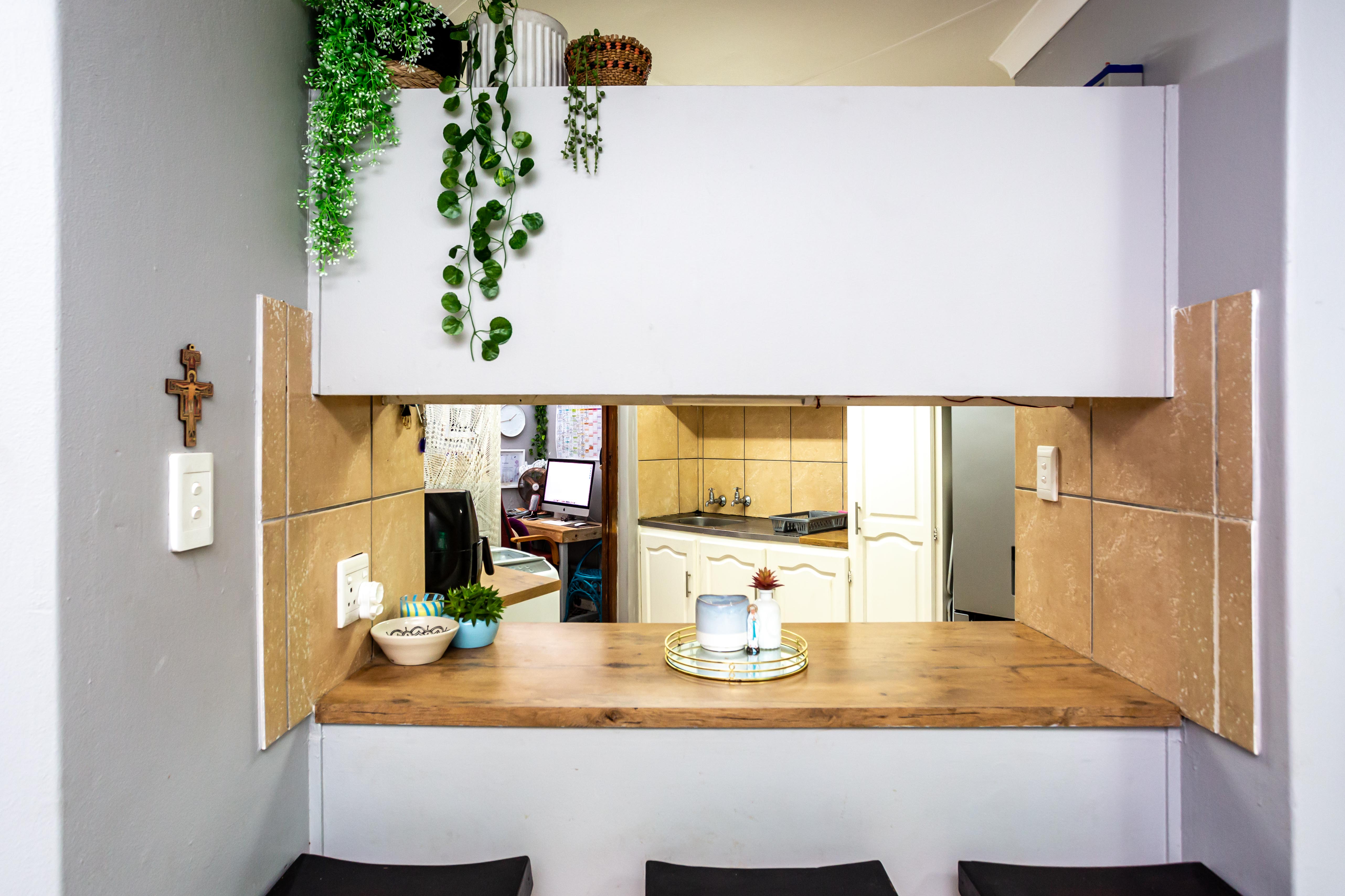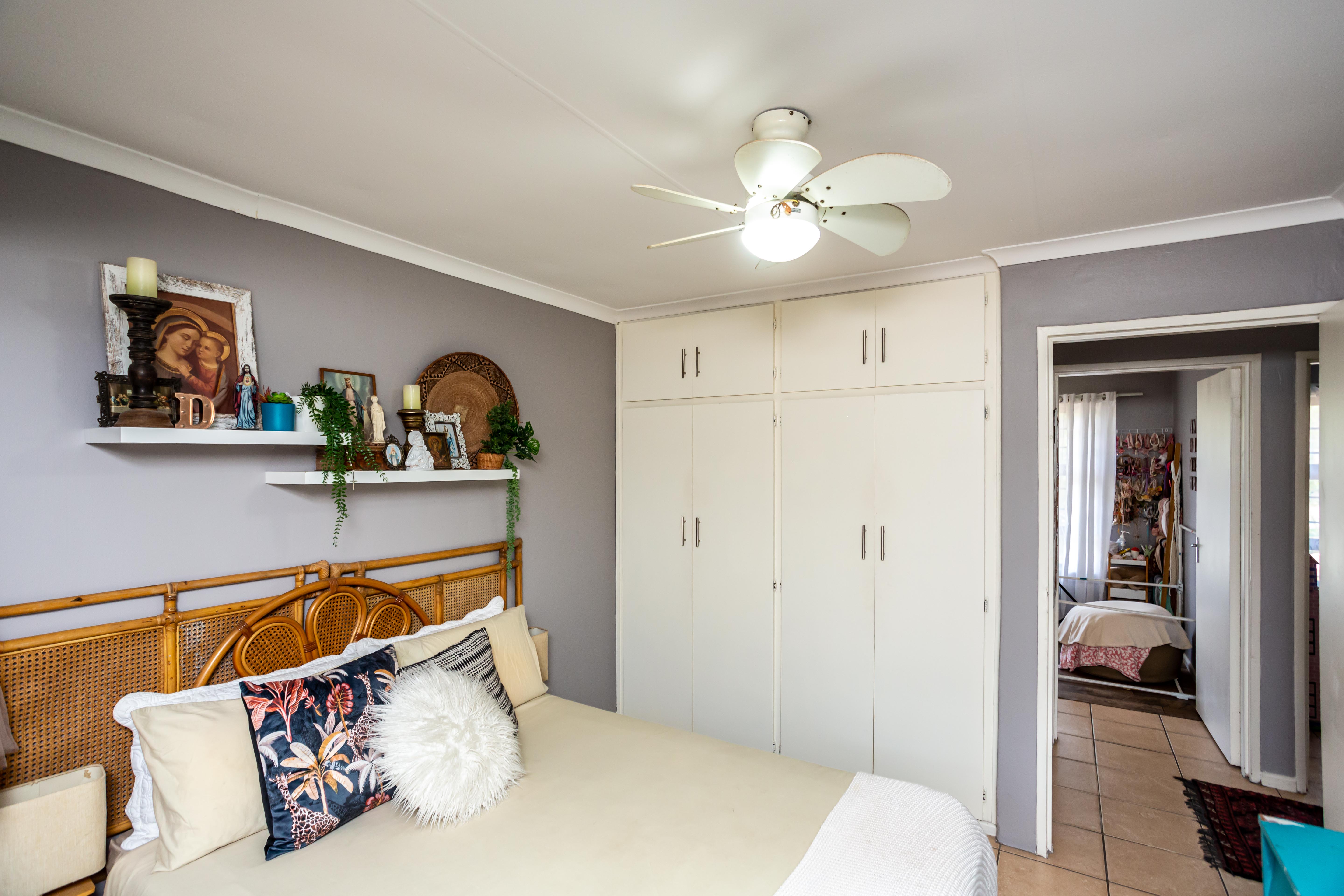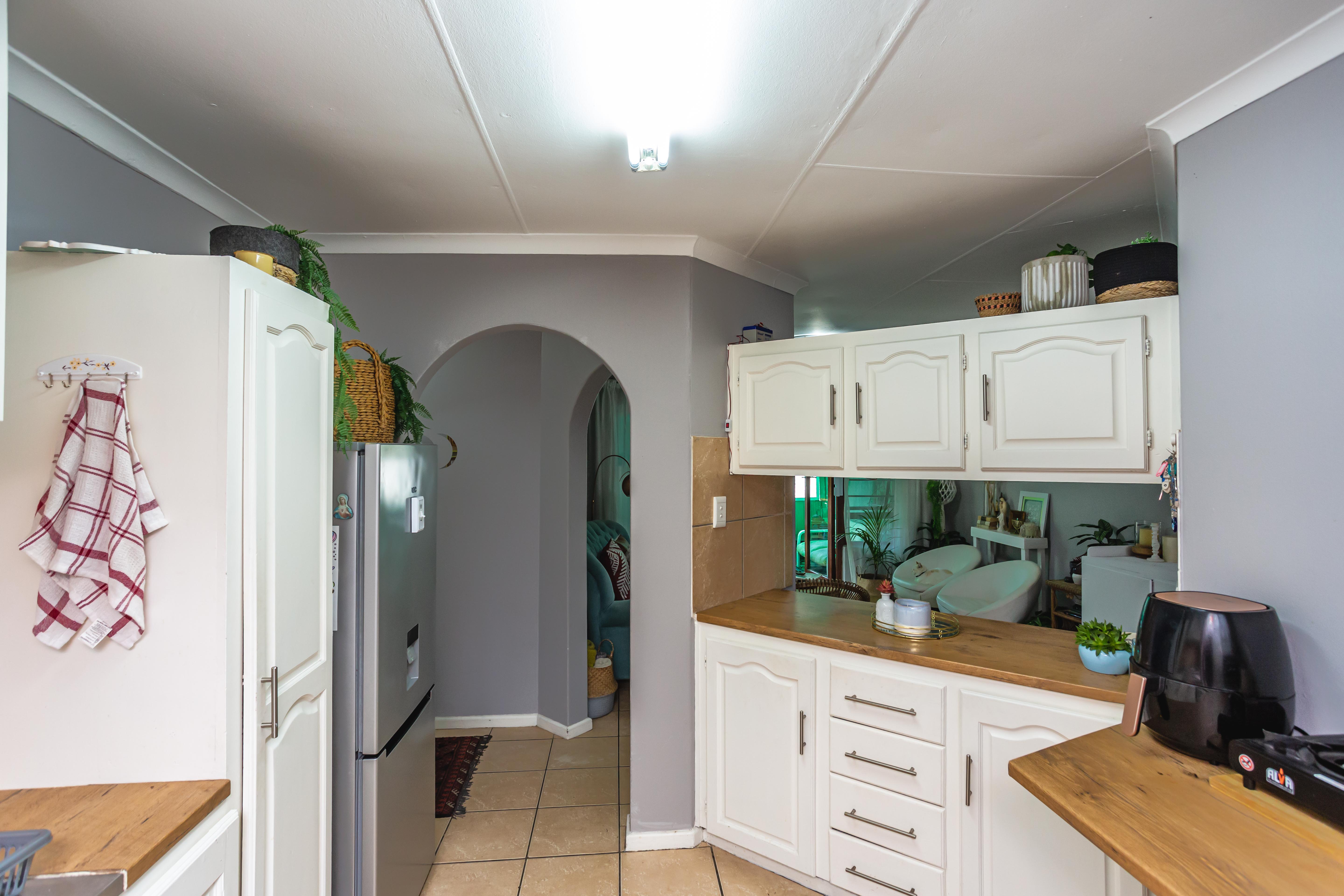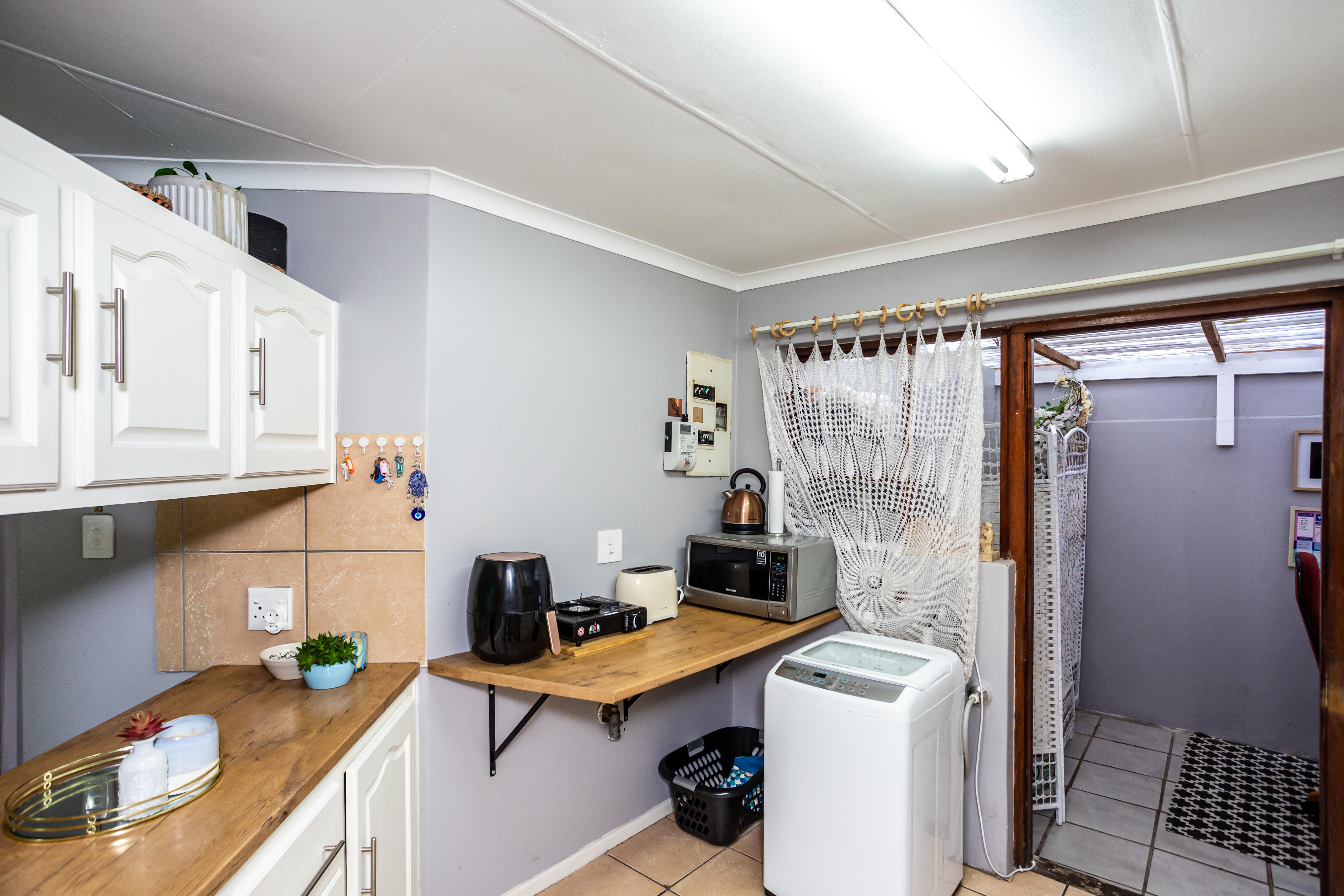 The property offers a cosy lounge just off the open plan kitchen. There is a enclosed area just off the kitchen that could be a small laundry area. The double doors from the lounge open onto a small private patio with a built-in braai and spacious enclosed yard – perfect for the kids to play and fur babies to run.