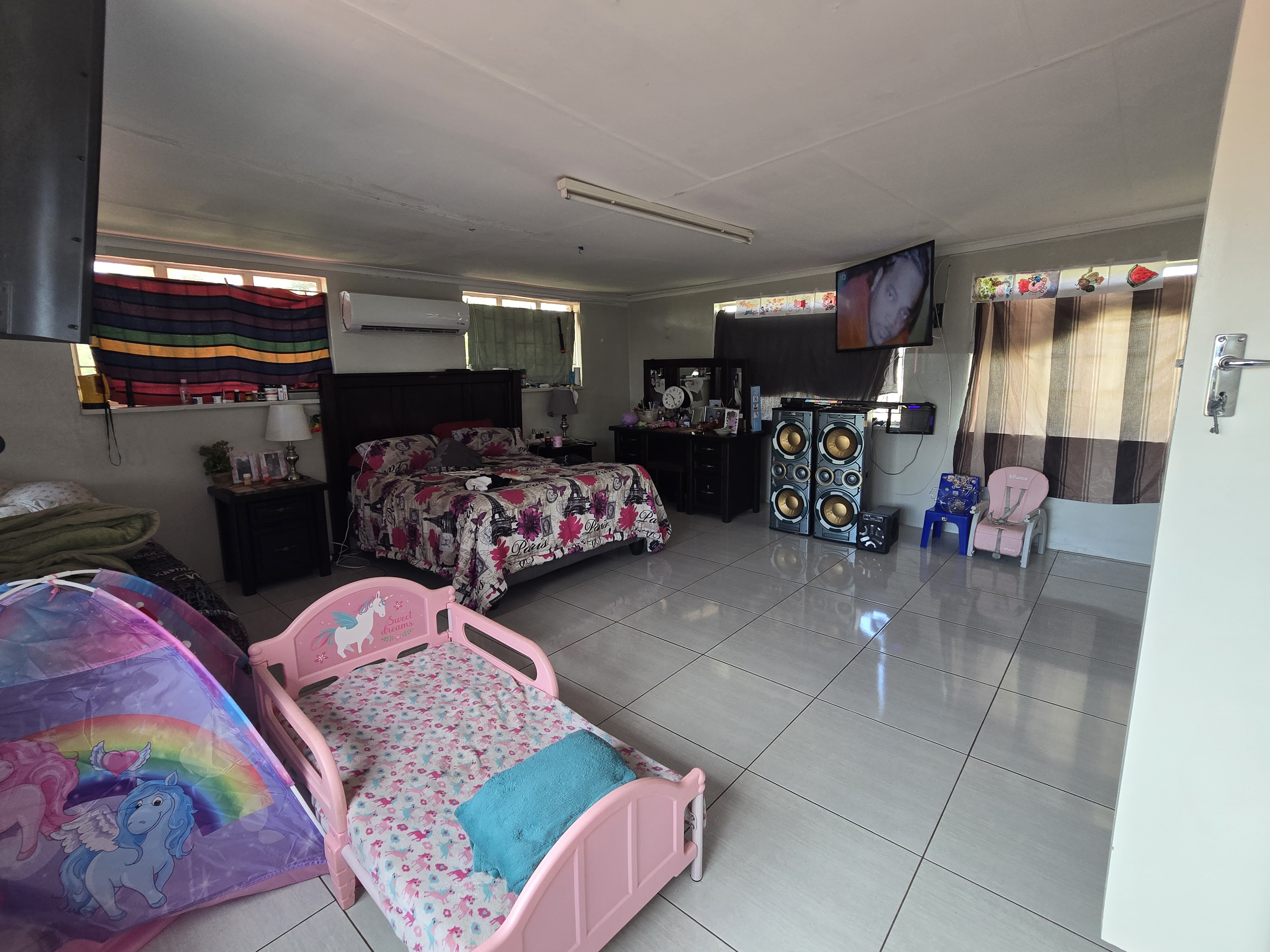 There is a study equipped with its own kitchenette and a playroom that can also be converted into an additional bedroom. The outdoor entertainment area includes a built-in braai, along with a sparkling swimming pool.