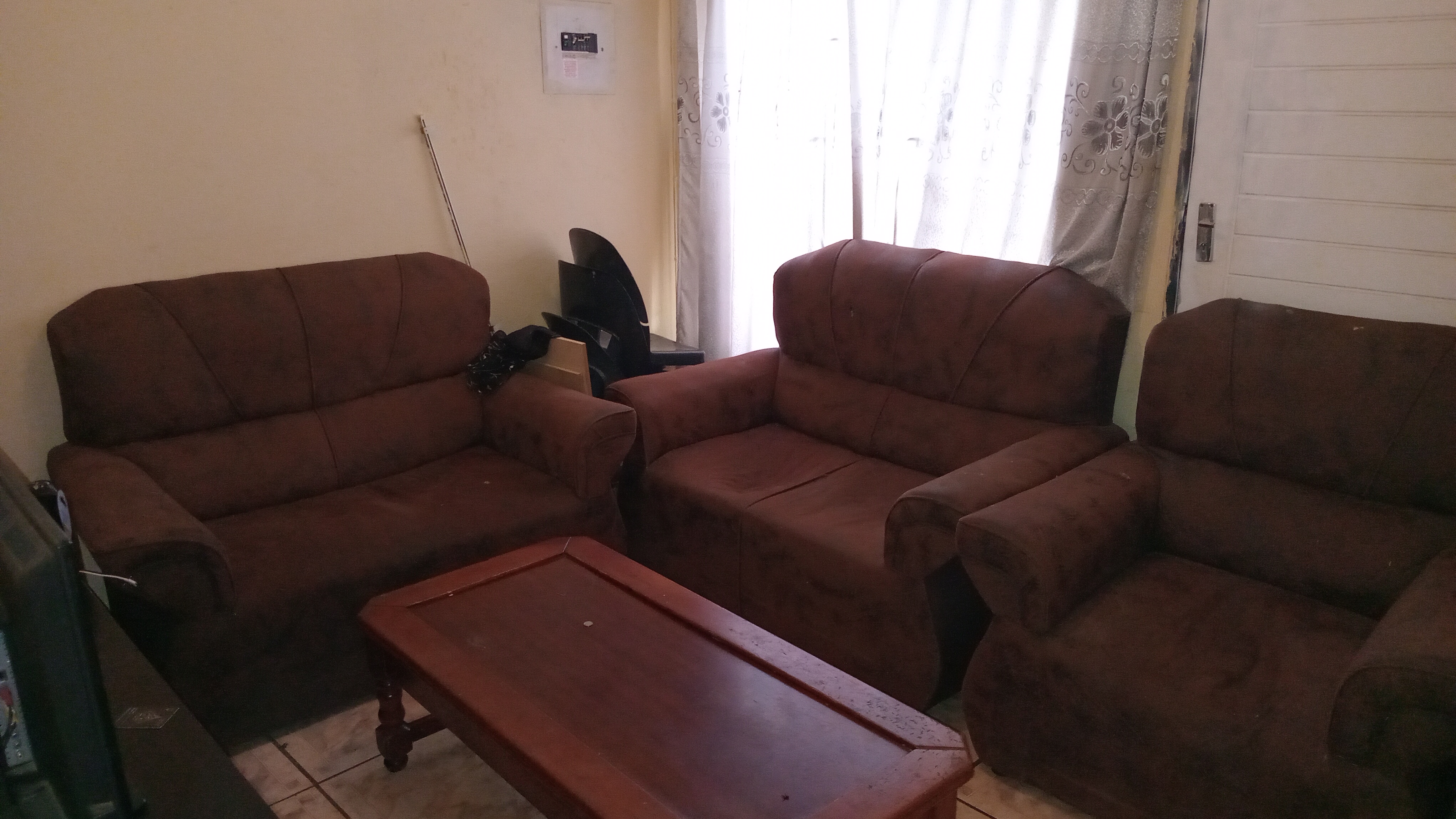 Built-in cupboards, a comfortable lounge, a fitted kitchen, and a neat bathroom.
