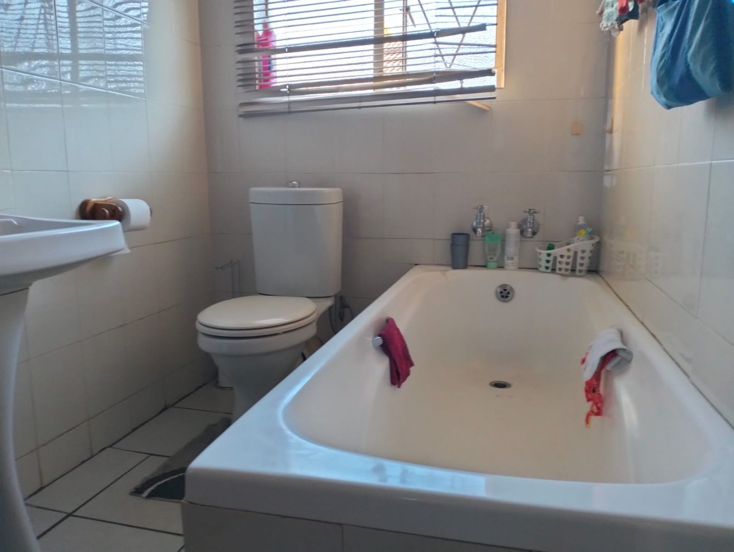 The two bedrooms both feature space for a double bed, built-in cupboards, tiled floors, ensuring easy upkeep and a functional layout. The bathroom is fitted with a bath, basin, toilet, with tiled finishes for a clean look.