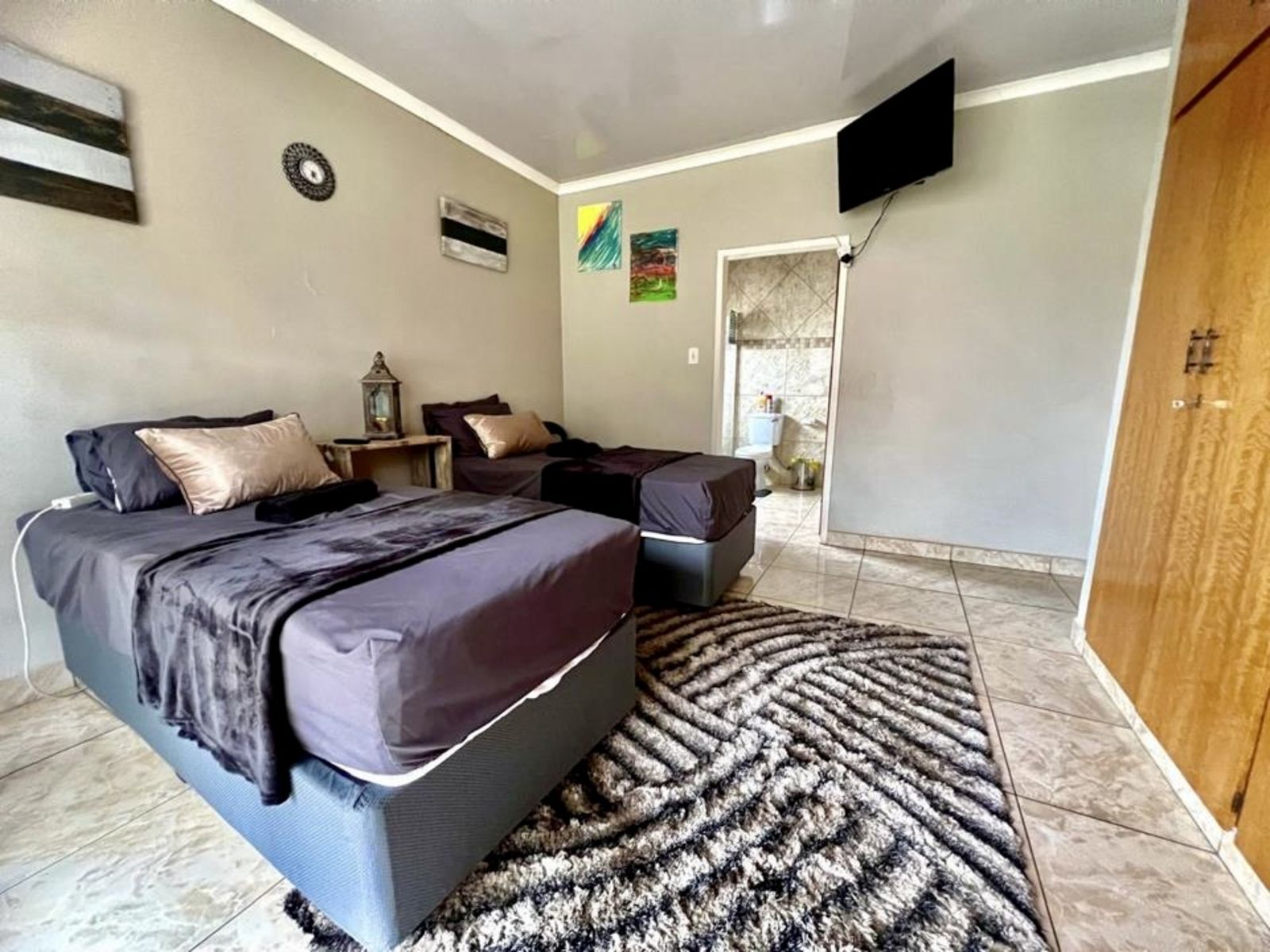 A double-volume garage accommodates up to three vehicles. Additional features include staff accommodation with a separate toilet, three Wendy houses, two JoJo water tanks, and a fully walled, well-kept garden. Burglar bars and security gates add peace of mind.
