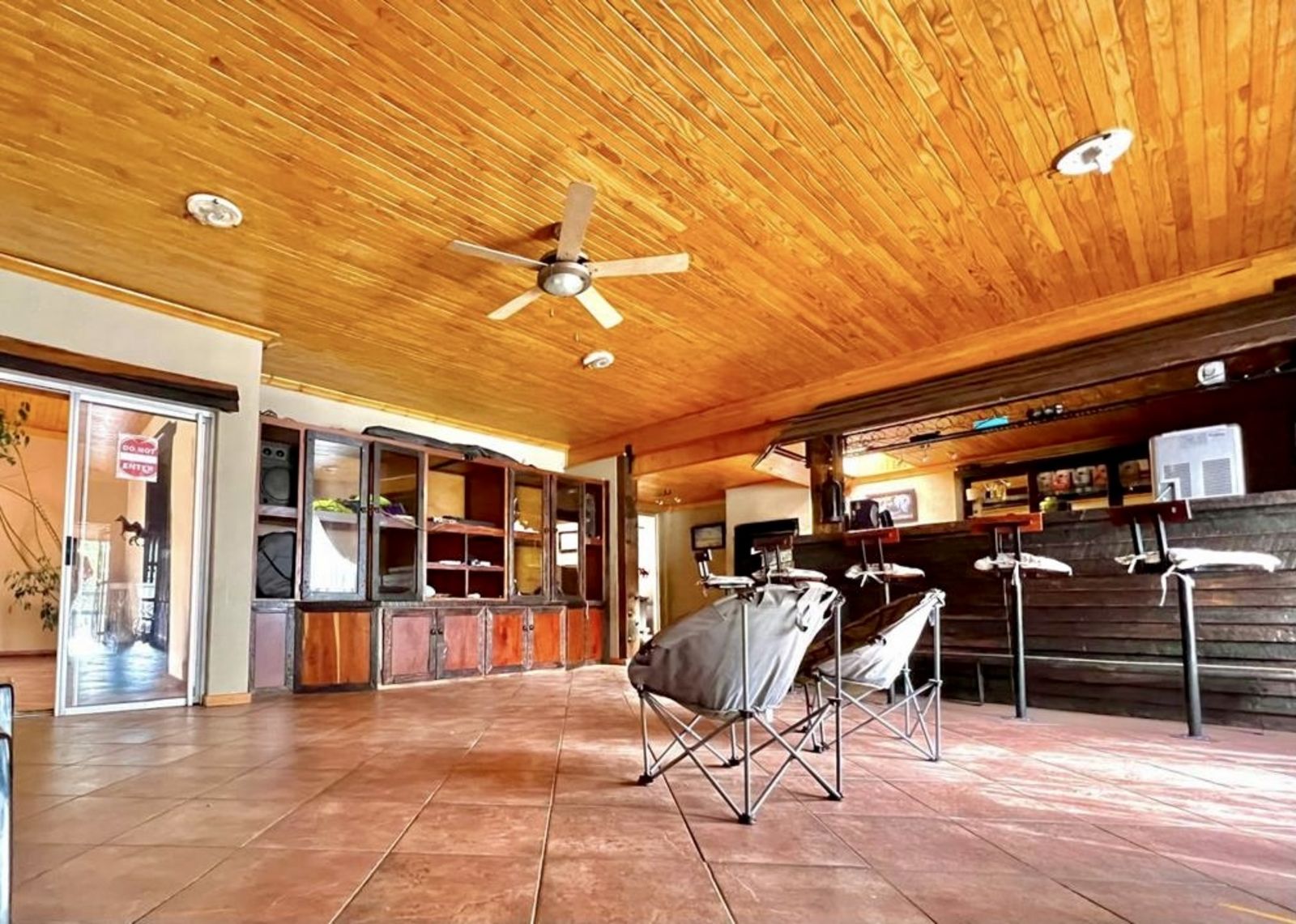 The braai and entertainment area, complete with a built-in sleeper wood bar and TV wall unit, forms a warm gathering space. A large, practical kitchen caters to both daily family life and hosting. Neat tiling throughout ensures a clean, cohesive finish.