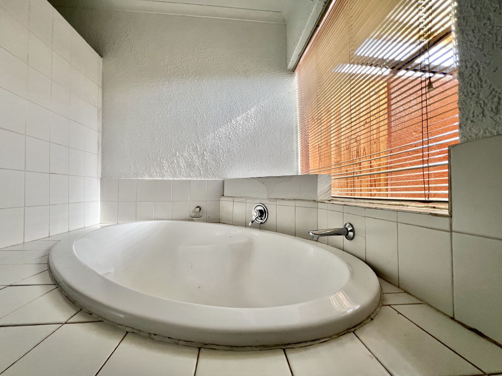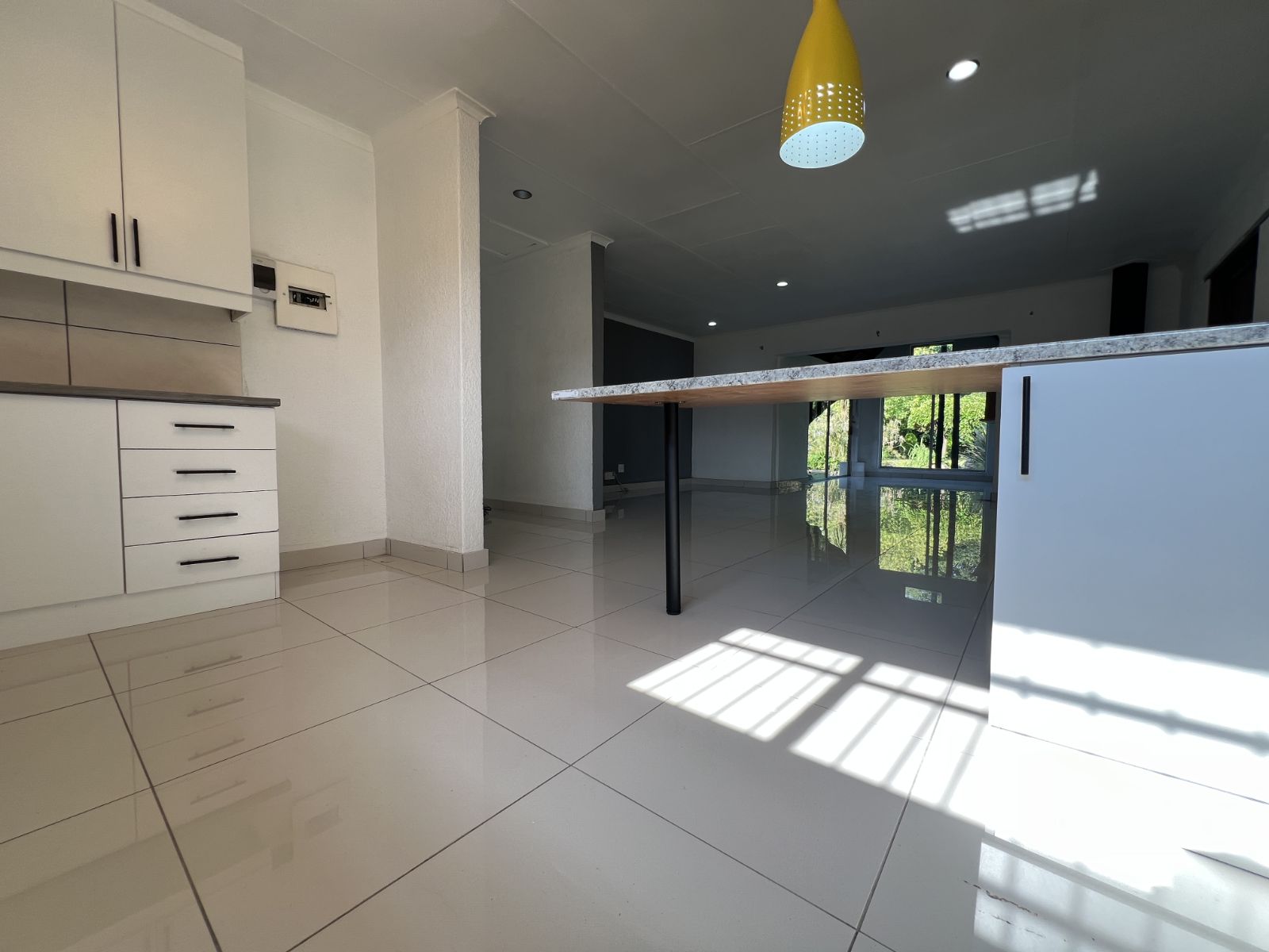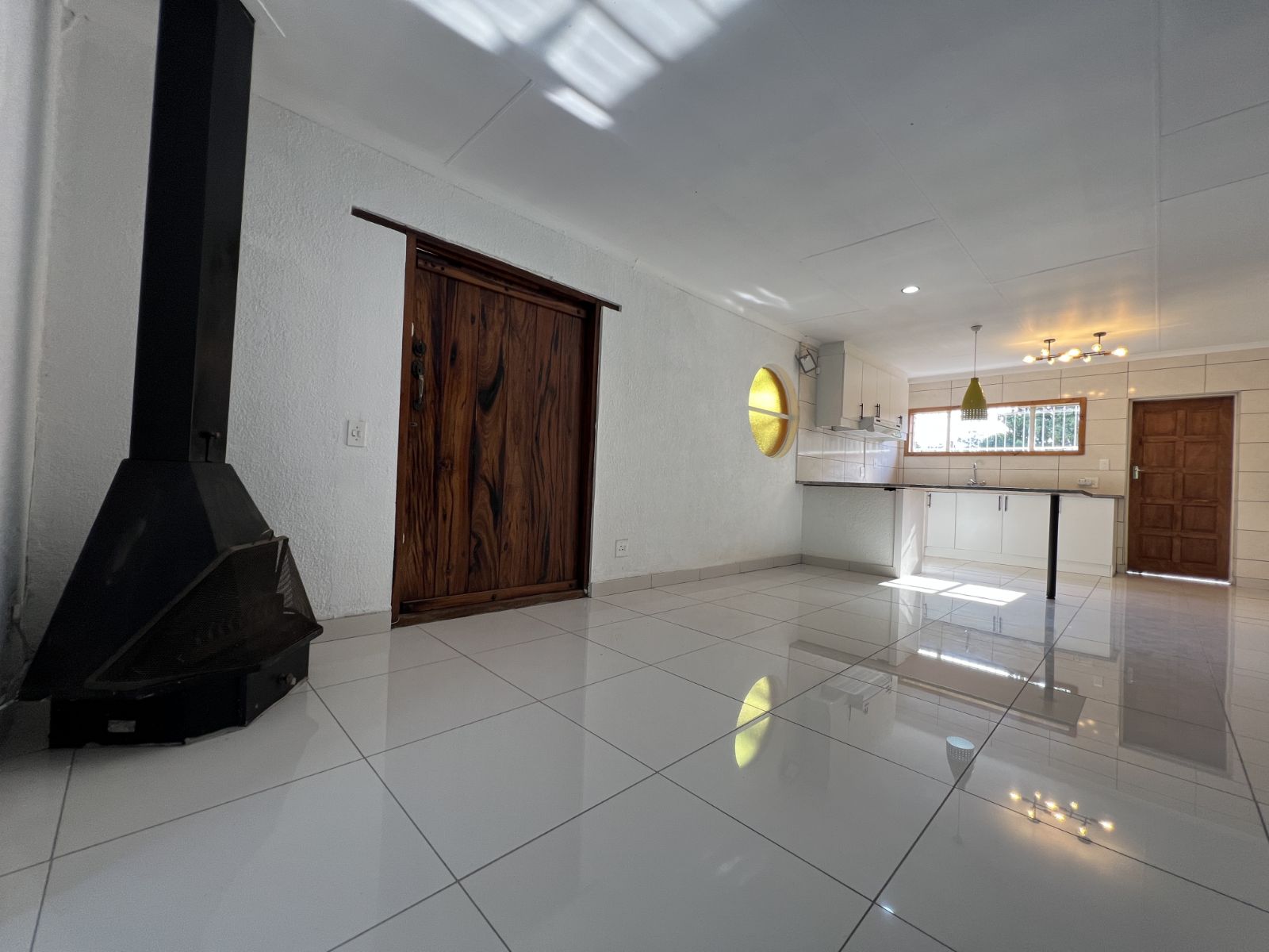 The open-plan kitchen and living area flows effortlessly to a lapa with built-in braai, making it ideal for everyday living and entertaining. Sunlight fills these spaces throughout the day. The kitchen is tastefully finished and fitted with a new stove and extractor fan.