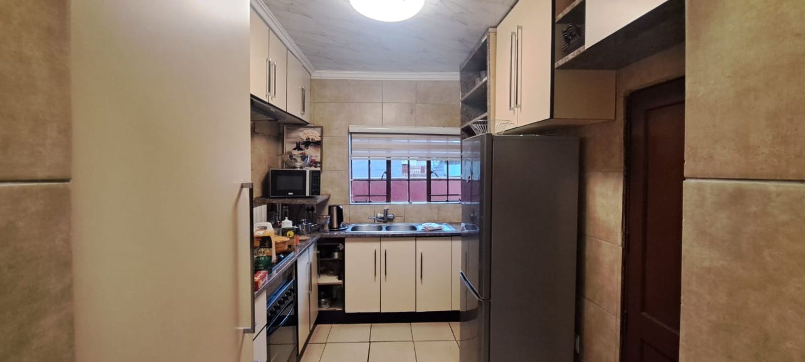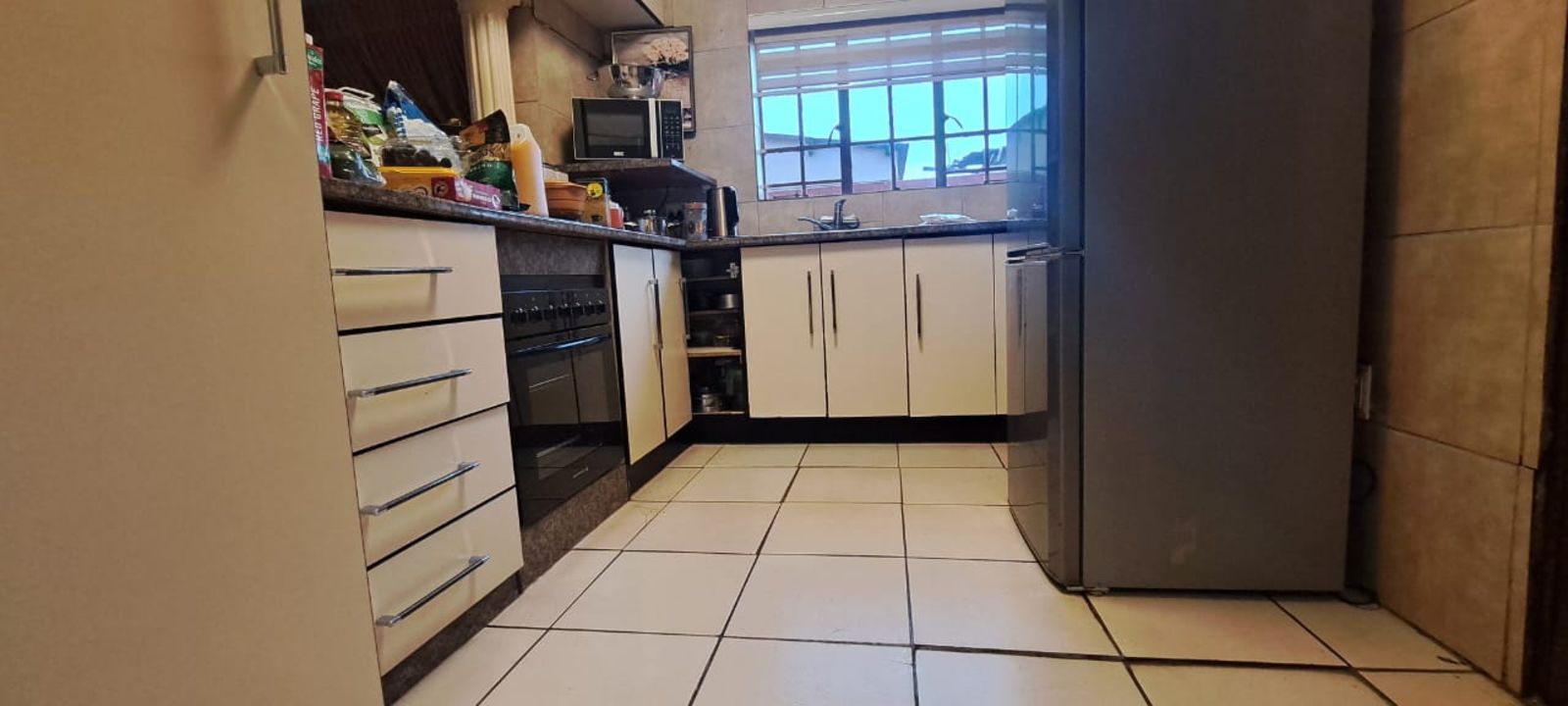 Welcome to this stunning and well-maintained family home, offering comfort, space, and convenience. The main house features 2 spacious bedrooms, a modern full bathroom, a dining area, and a beautiful kitchen fitted with modern built-in cupboards. The home is fully tiled, with freshly painted walls and roof, a neat ceiling, and stylish lighting throughout.