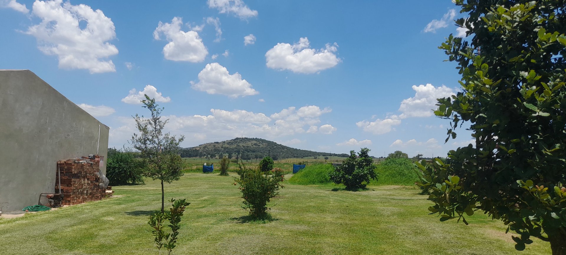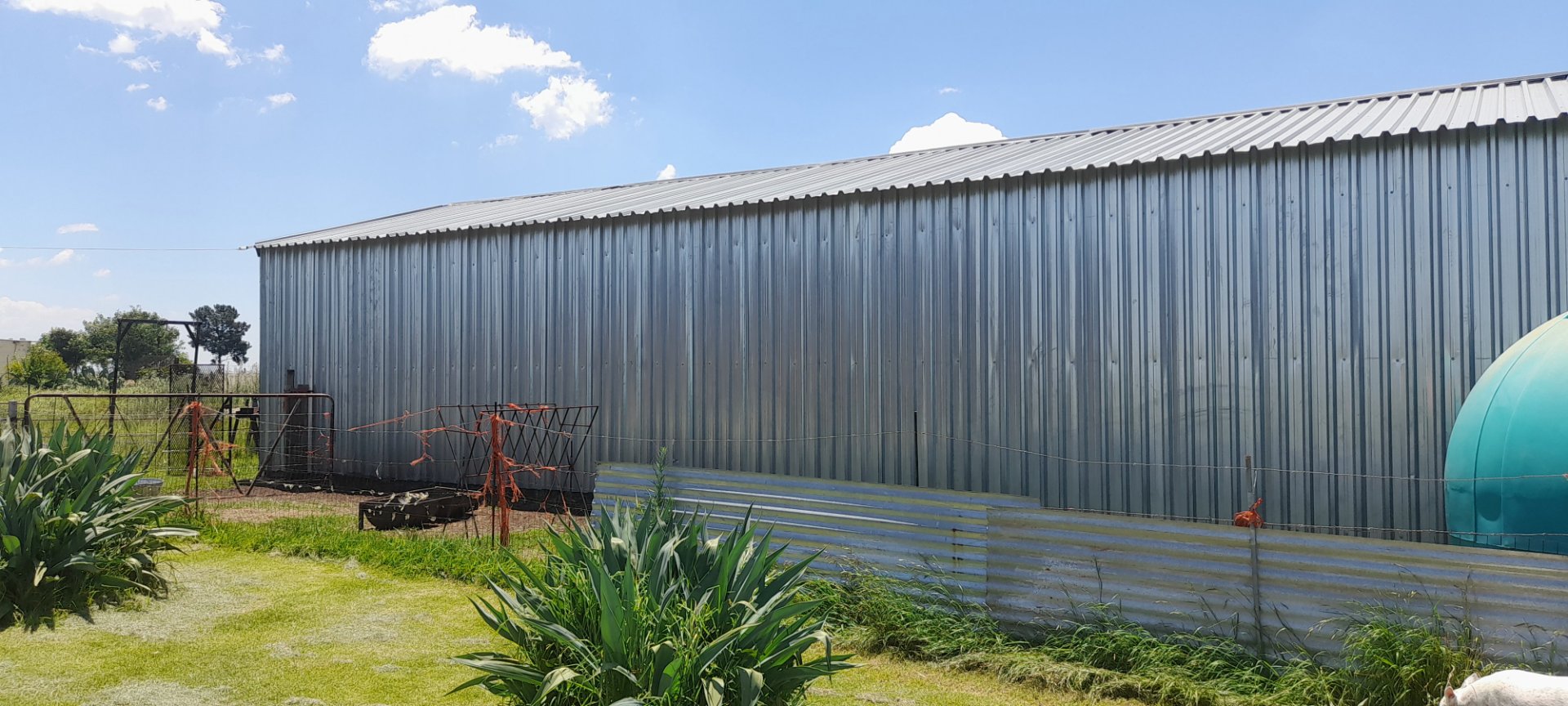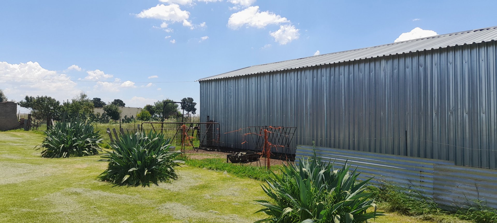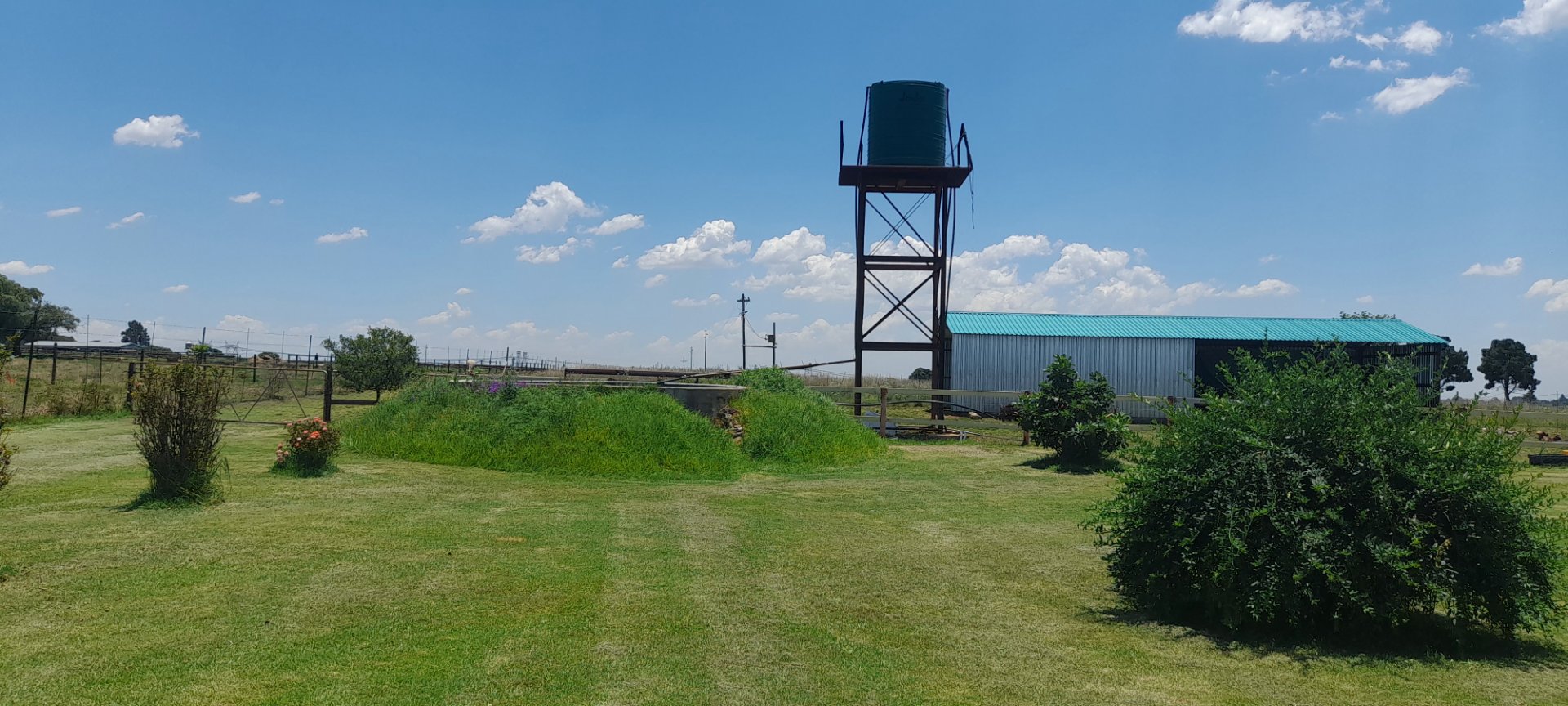 Outbuildings comprise 2 steel store rooms (included with IBR) of 108 m2 each ( 6x18m each), Large garages with 3 entrances that are 81 m2( 9mx9m ), and the small brick house where your borehole pump is secured. Borehole 50m deep with a submersible pump rendering 2500 liters per hour with a 5000-liter tank that takes + - 2 hours to fill up,(connected to the solar system)Solar system comprising of 5KVA Deye inverter, 8 x 200amp amp-hour batteries, (12 x 250 watt) solar panels.With a solar geyser.