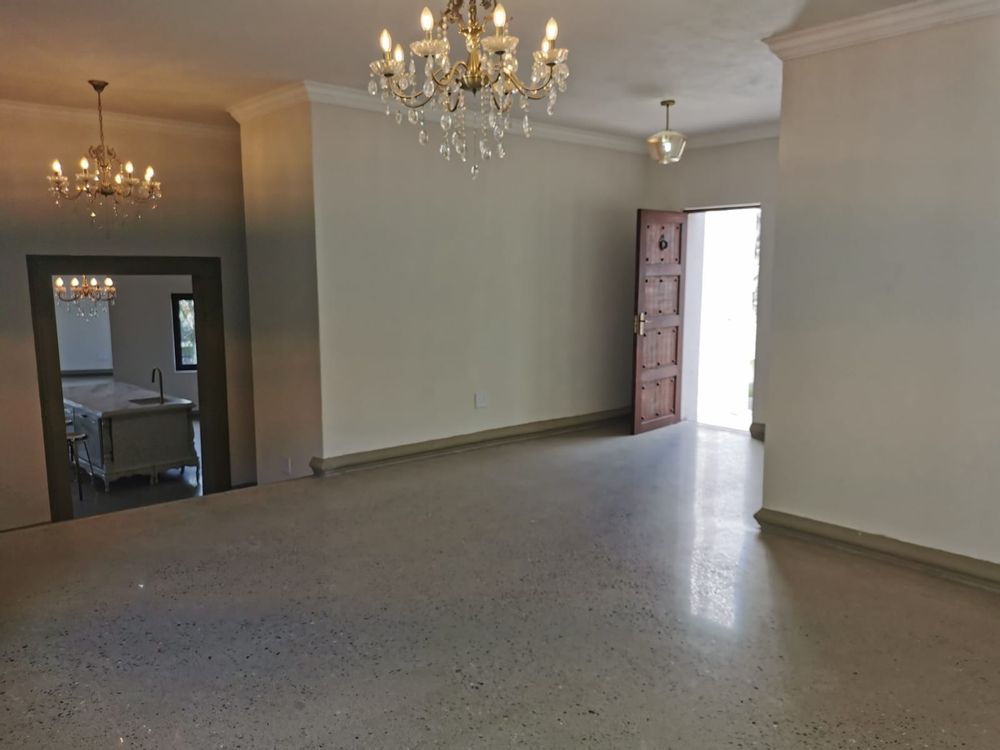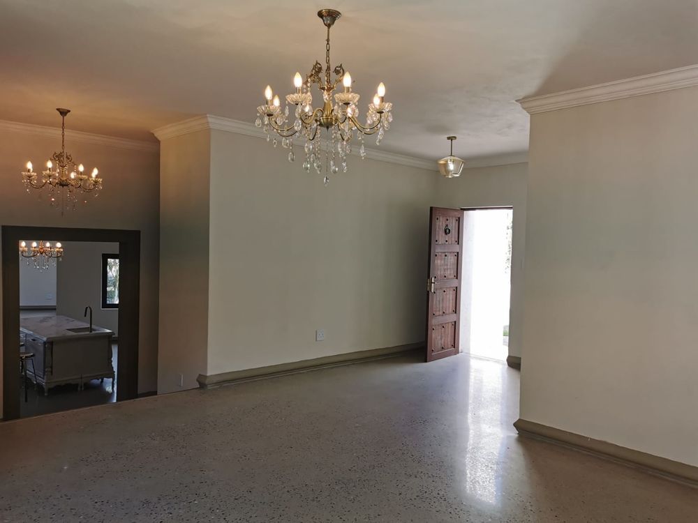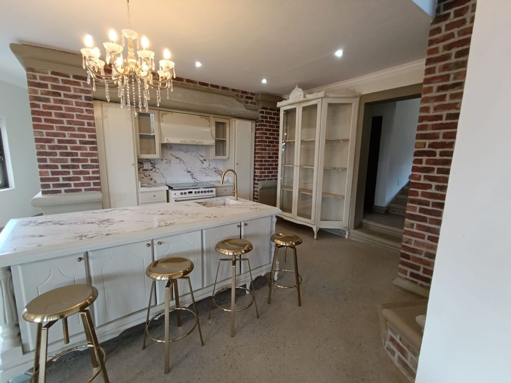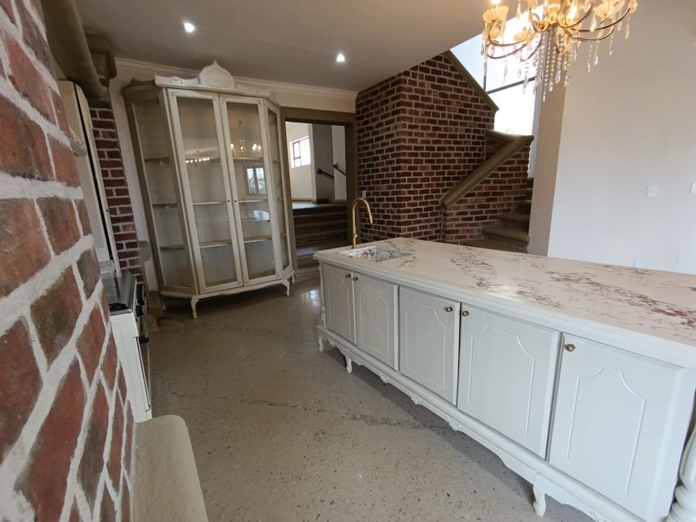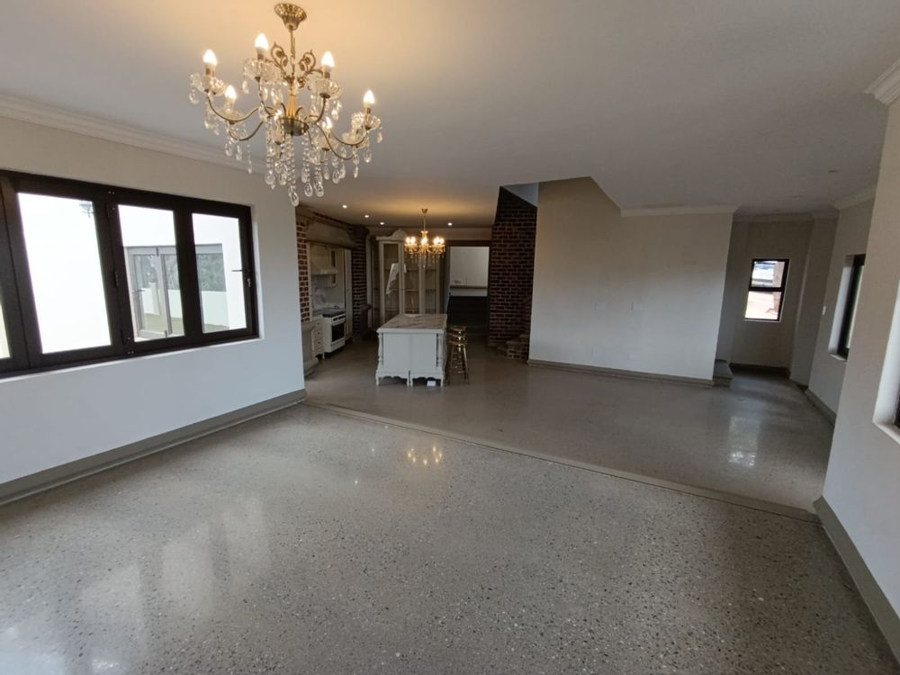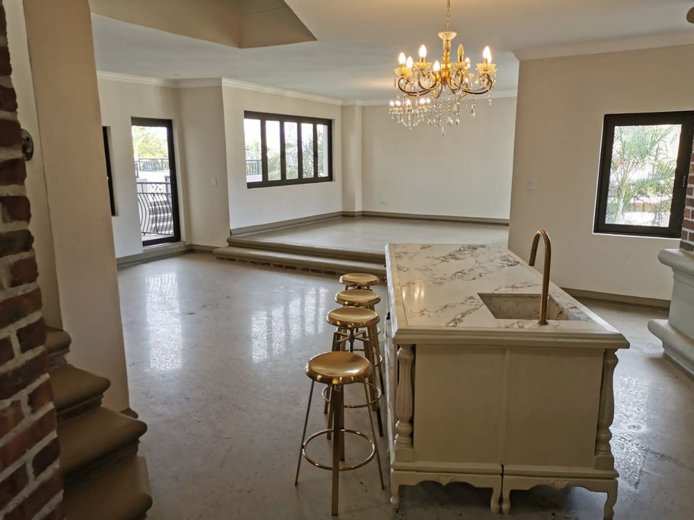 As you enter, you are greeted by a spacious open-plan living area with elegant, modern finishes. The home features two expansive lounges and a state-of-the-art kitchen complete with a pantry and scullery. The dining room opens up to a truly unique and impressive feature—a large, stylish pool under the staircase, perfect for both relaxation and entertaining.