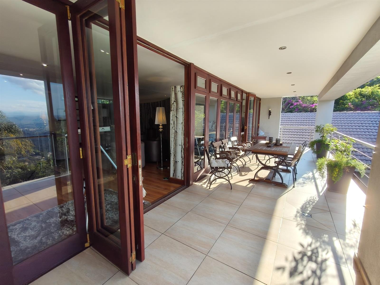 Behind the staircase are wide uninterrupted windows that frame the patio. The patio itself is large and designed for proper entertainment, with a built in bar and braai. From here you have a clear view of the infinity pool, Nelspruit, the ridge lines and the valley below. It is the feature that everyone remembers.