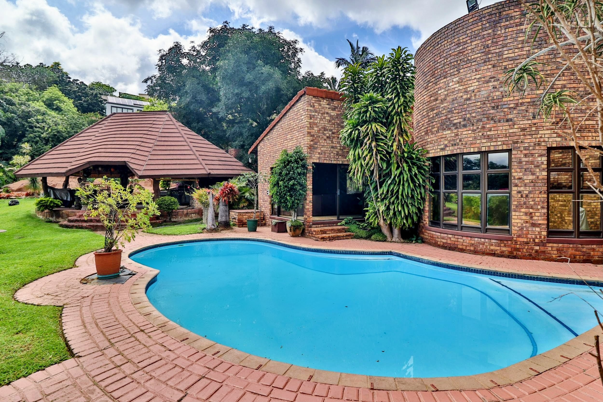 The lapa (60Sqm) forms the centerpiece in this manicured garden surrounded by water features and lush green lawn.