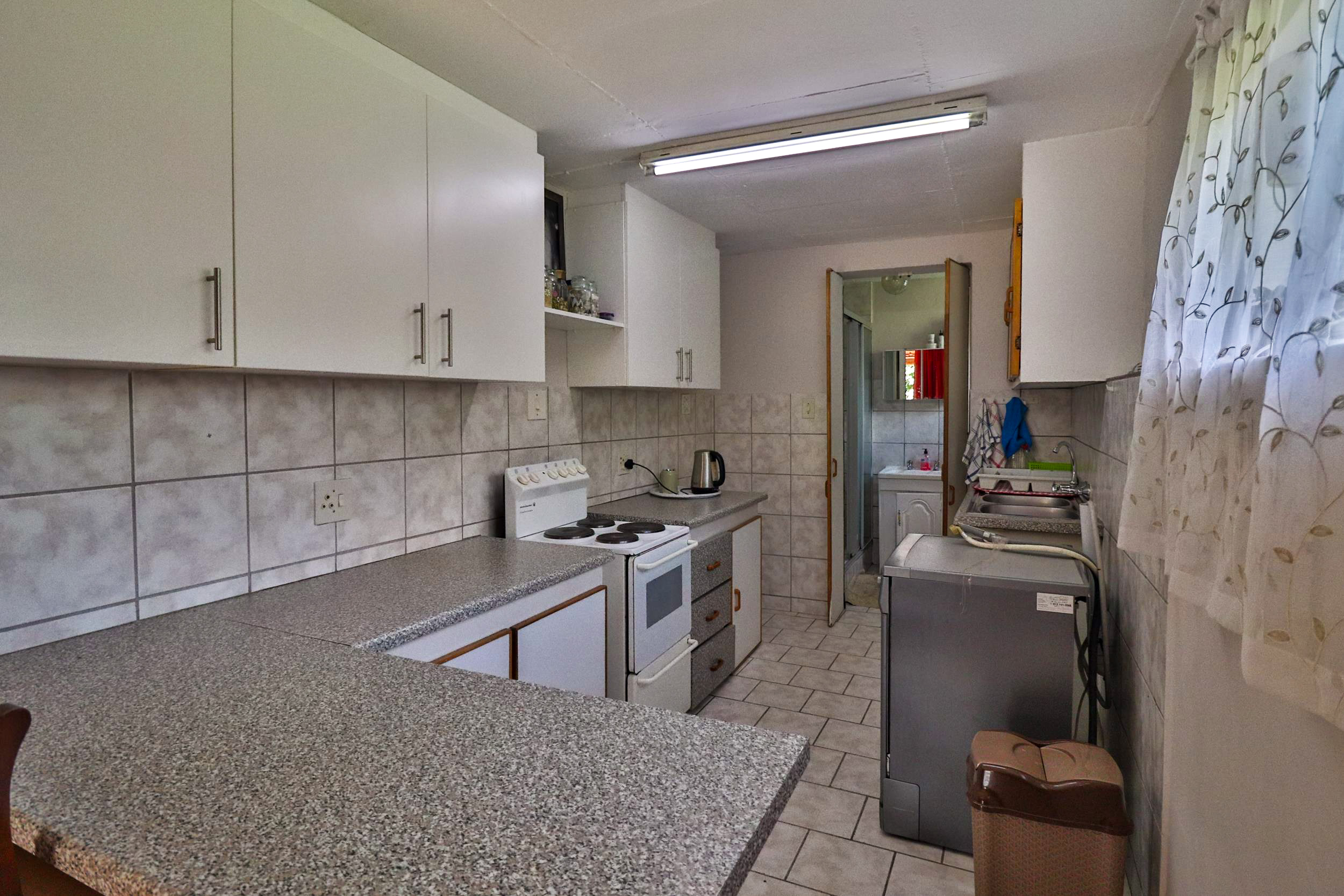 The oversized kitchen is designed with entertaining in mind and offers solid wooden built-in cupboards, a gas stove, eye-level oven, and expansive granite countertops. These flow seamlessly into a well-appointed scullery and separate laundry, ensuring both functionality and convenience.