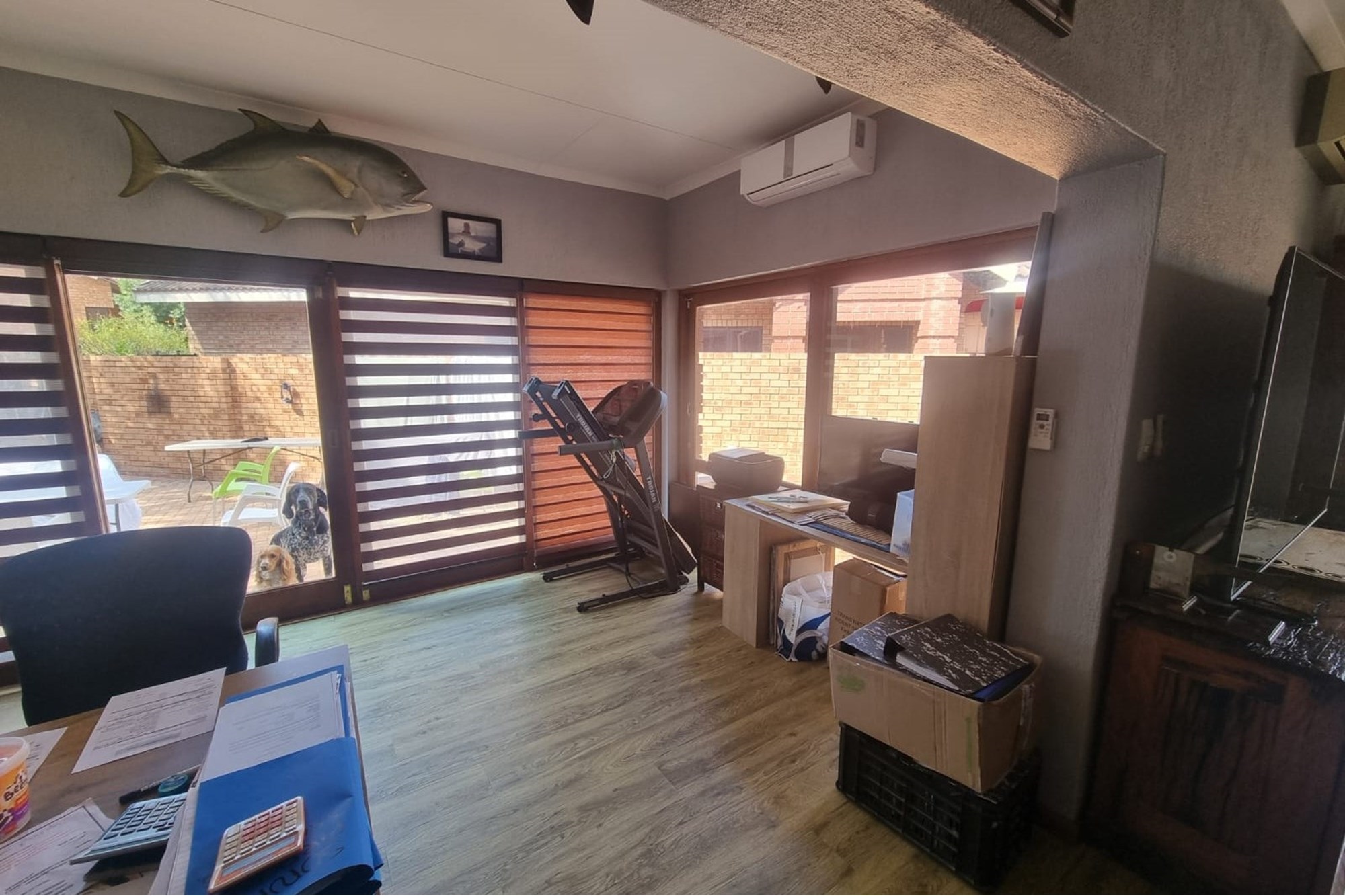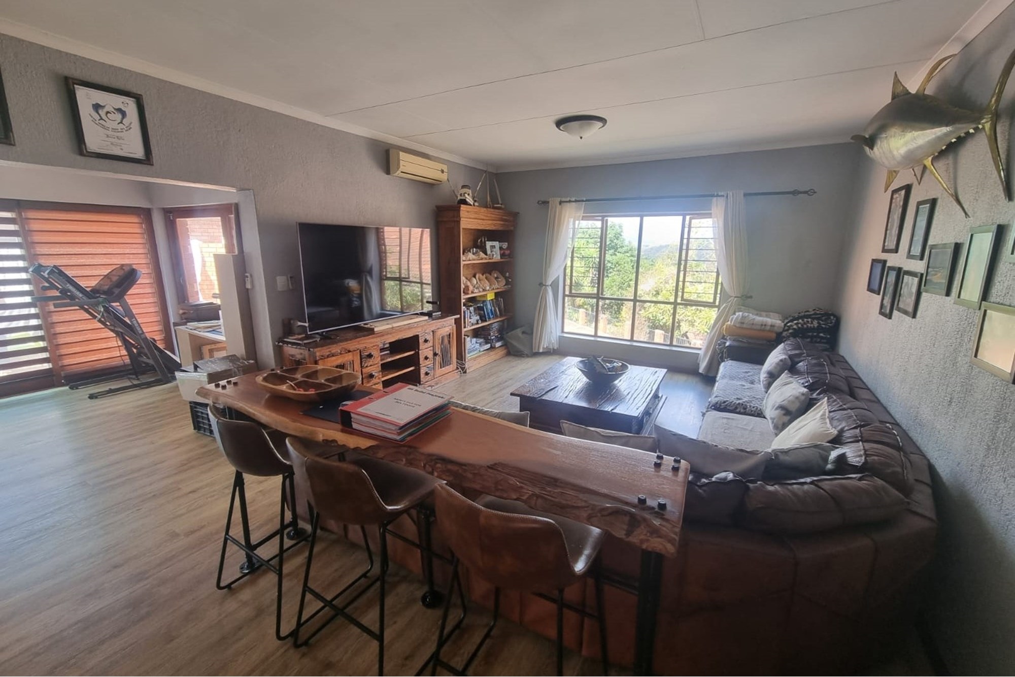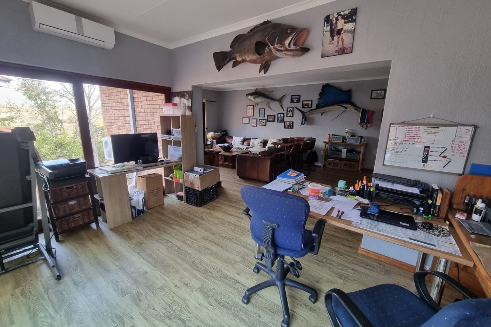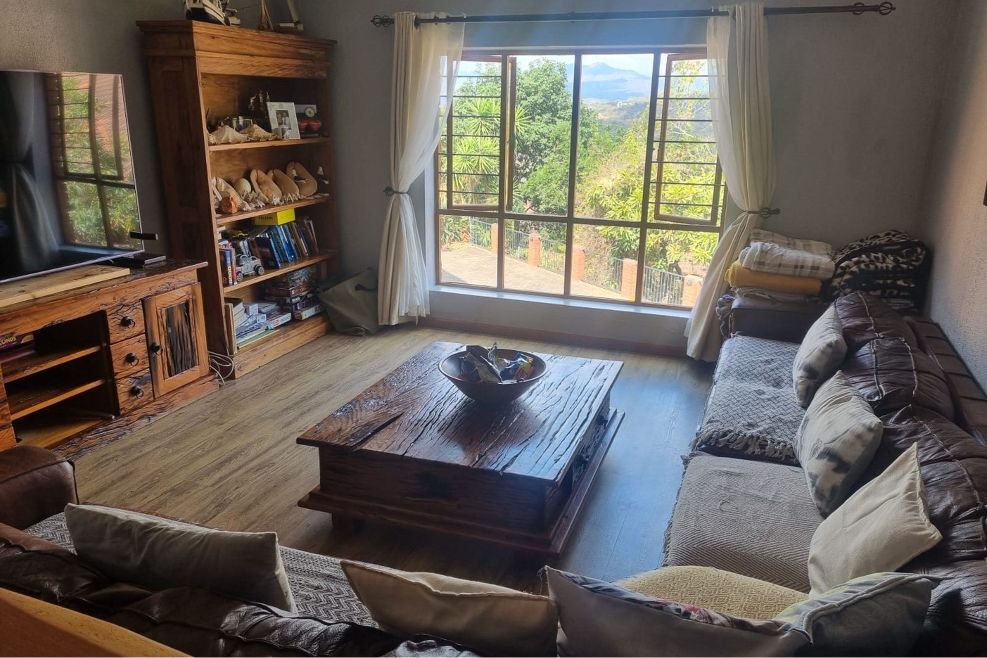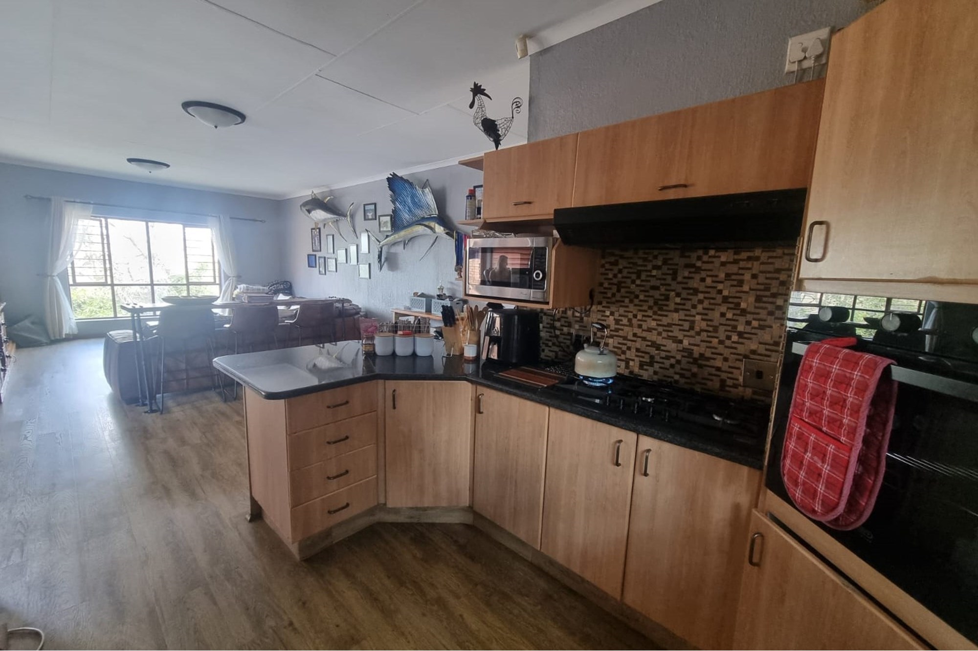 The house offers a Lovely Open-plan Lounge, Kitchen and Dining room layout with a packaway doors giving access to the low maintenance backyard with Boma fireplace and Braai under large shady trees. The living areas has 2 air-conditioners to ensure your comfort.