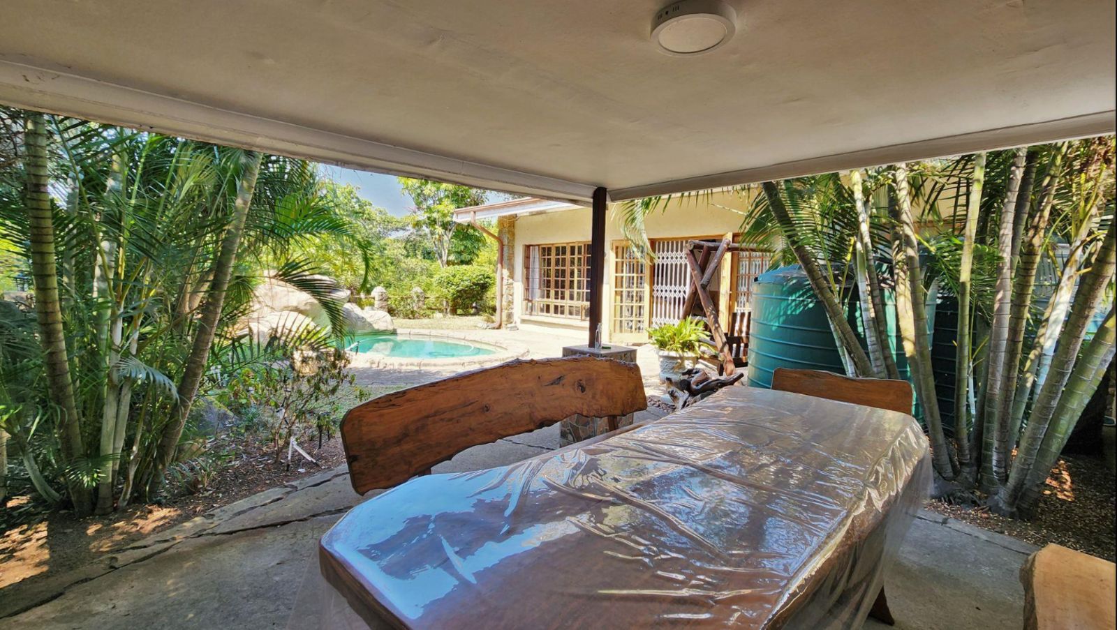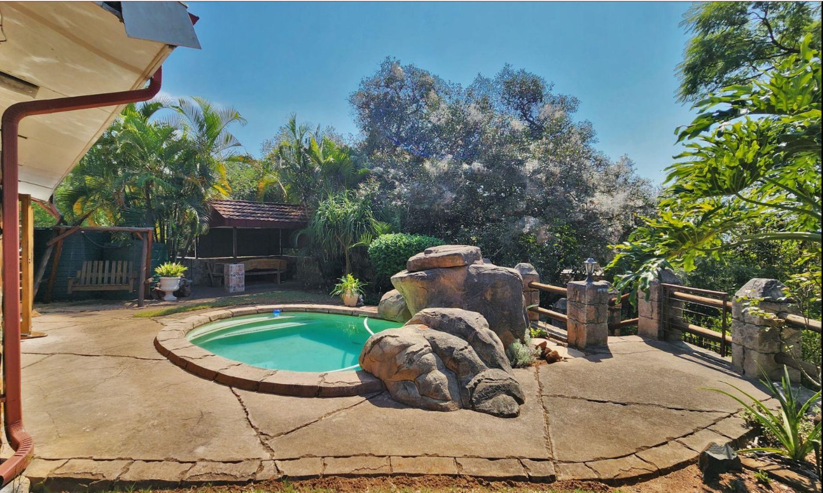 ✅ A beautifully landscaped outdoor space with a pool and lapa for entertainment