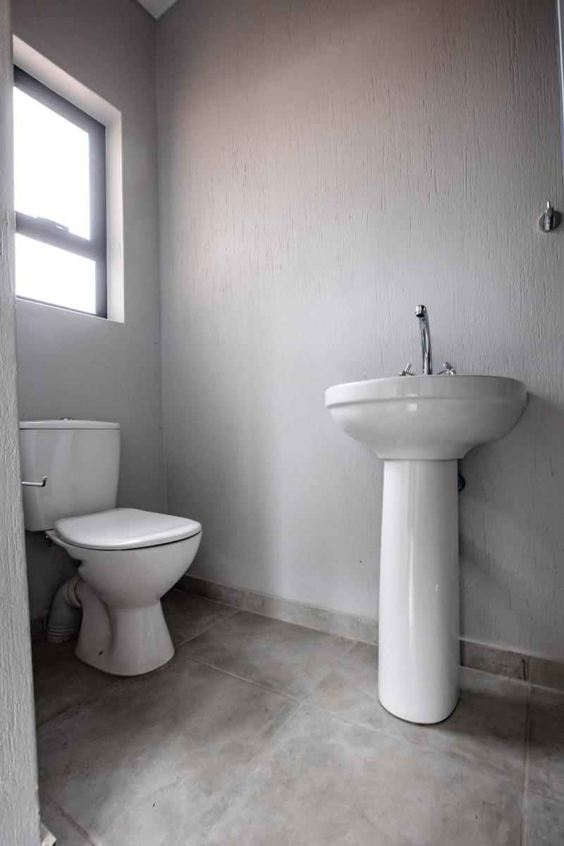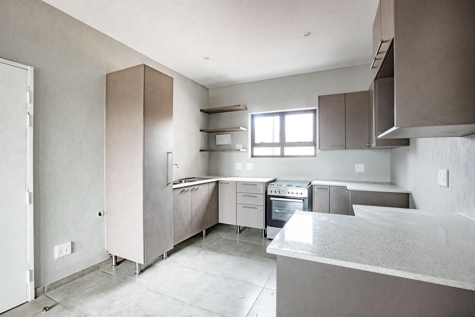 The living area seamlessly flows into the kitchen, which is designed for easy maintenance and functionality. Safety and security are paramount in this exclusive security complex, offering 24-hour access, CCTV surveillance, electric fencing, and an electric gate for peace of mind.