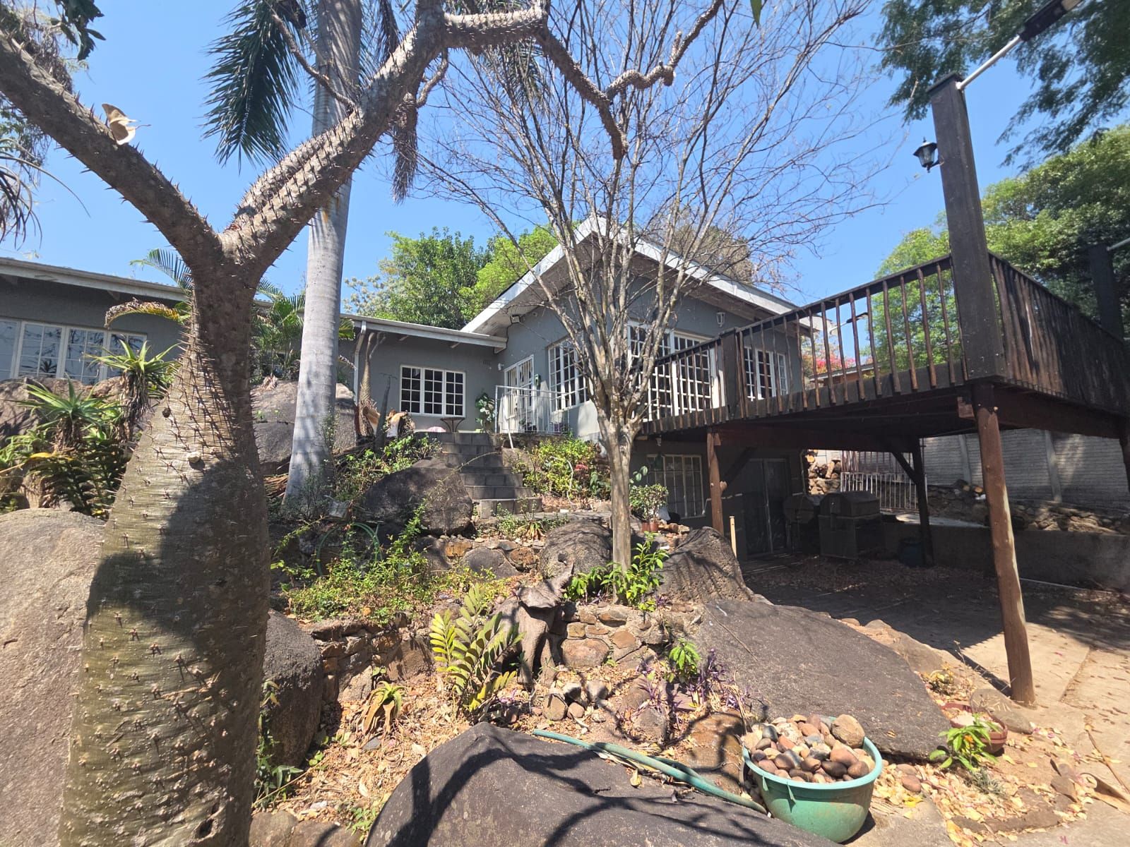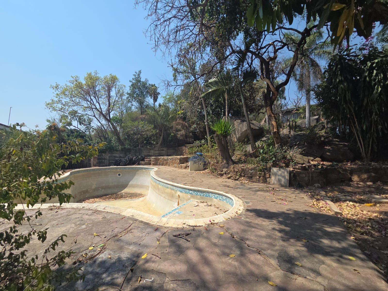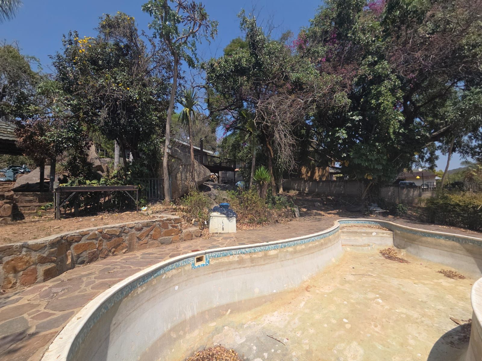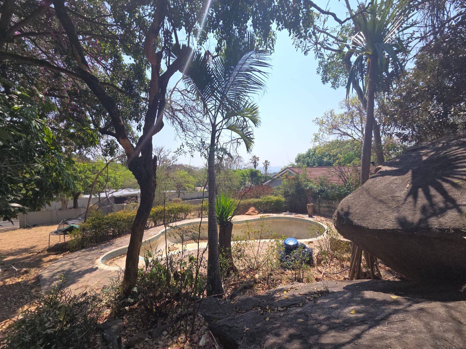 The expansive garden provides ample space for further development, even the option of adding a second flatlet with its own parking. A pool, currently empty but structurally sound, enhances the outdoor lifestyle.