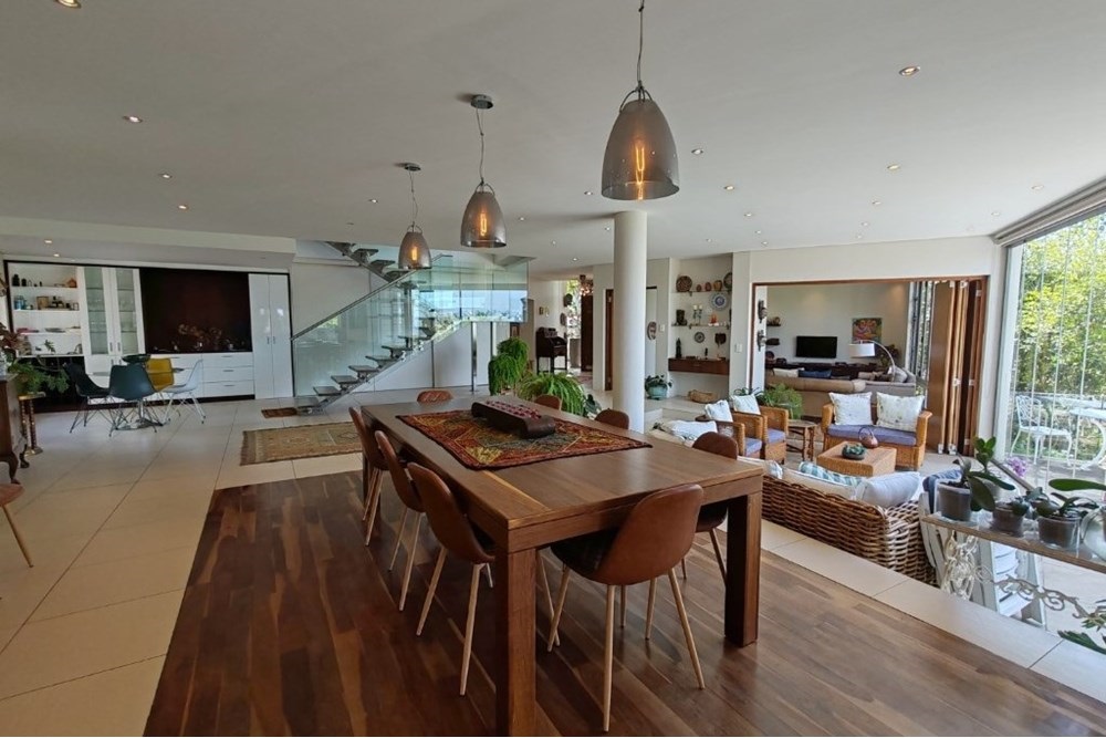 - Spacious Living Areas: Three expansive, light-filled living areas seamlessly flow onto large patios, a sparkling swimming pool, and a deck that overlooks natural gardens.