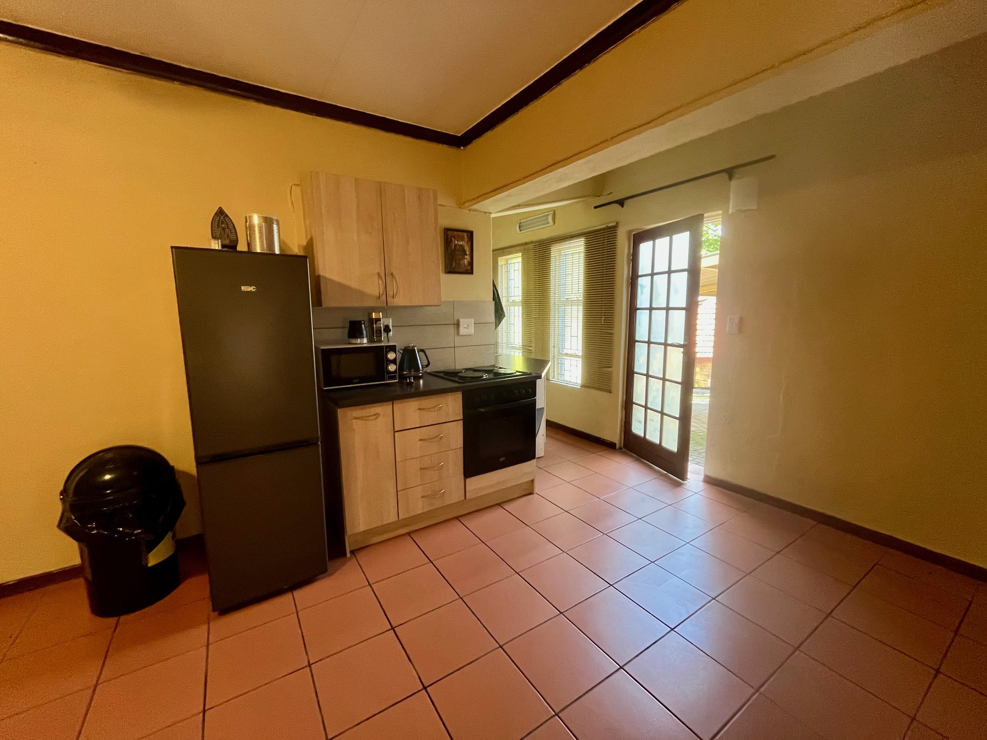 - Open plan living area, bedroom and kitchen