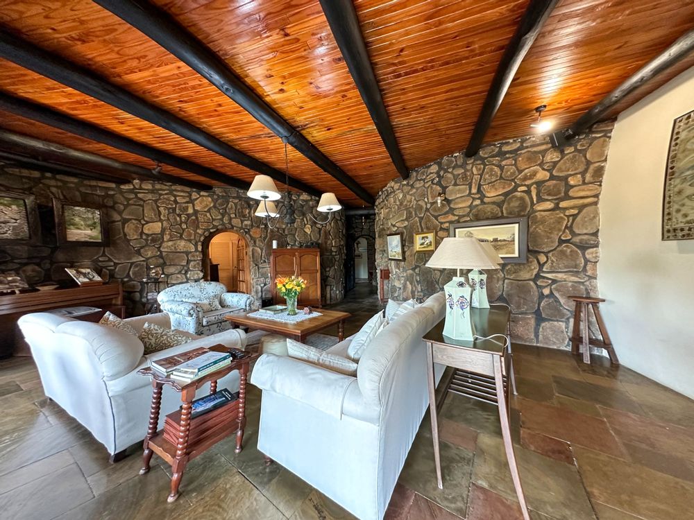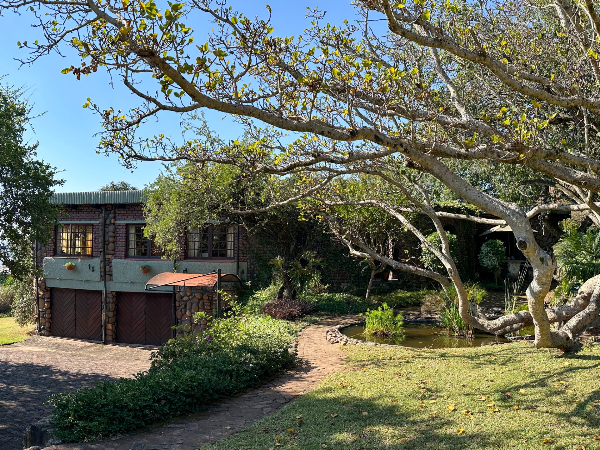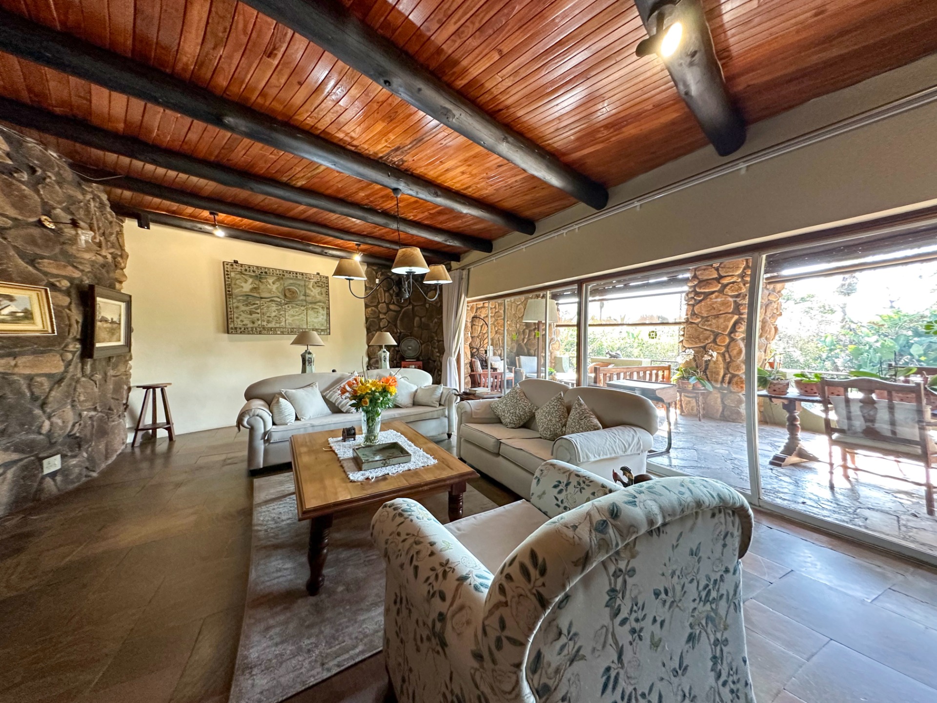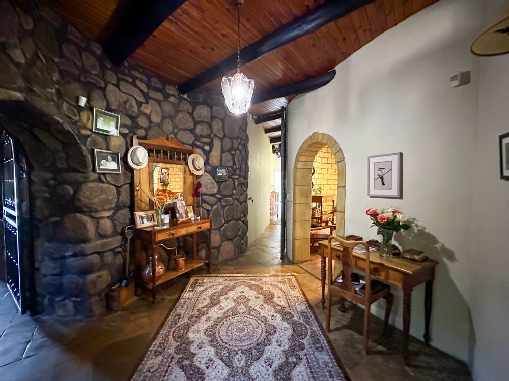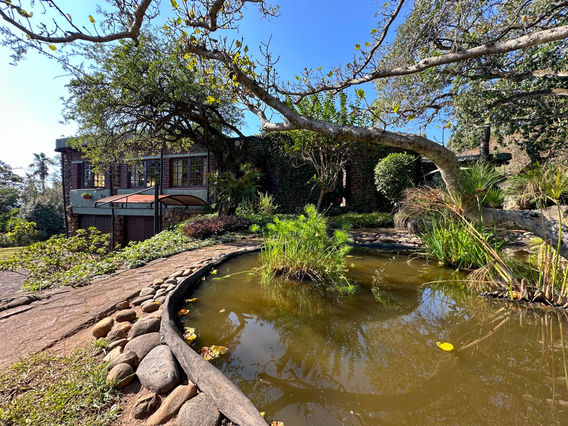Nestled on a sprawling 3900 square meter erf, this home is surrounded by a beautifully landscaped garden featuring water fountains and a serene duck pond. The 512 square meter house stands out with its distinctive stone construction, providing a unique look and feel that promises a serene lifestyle of comfort and space.