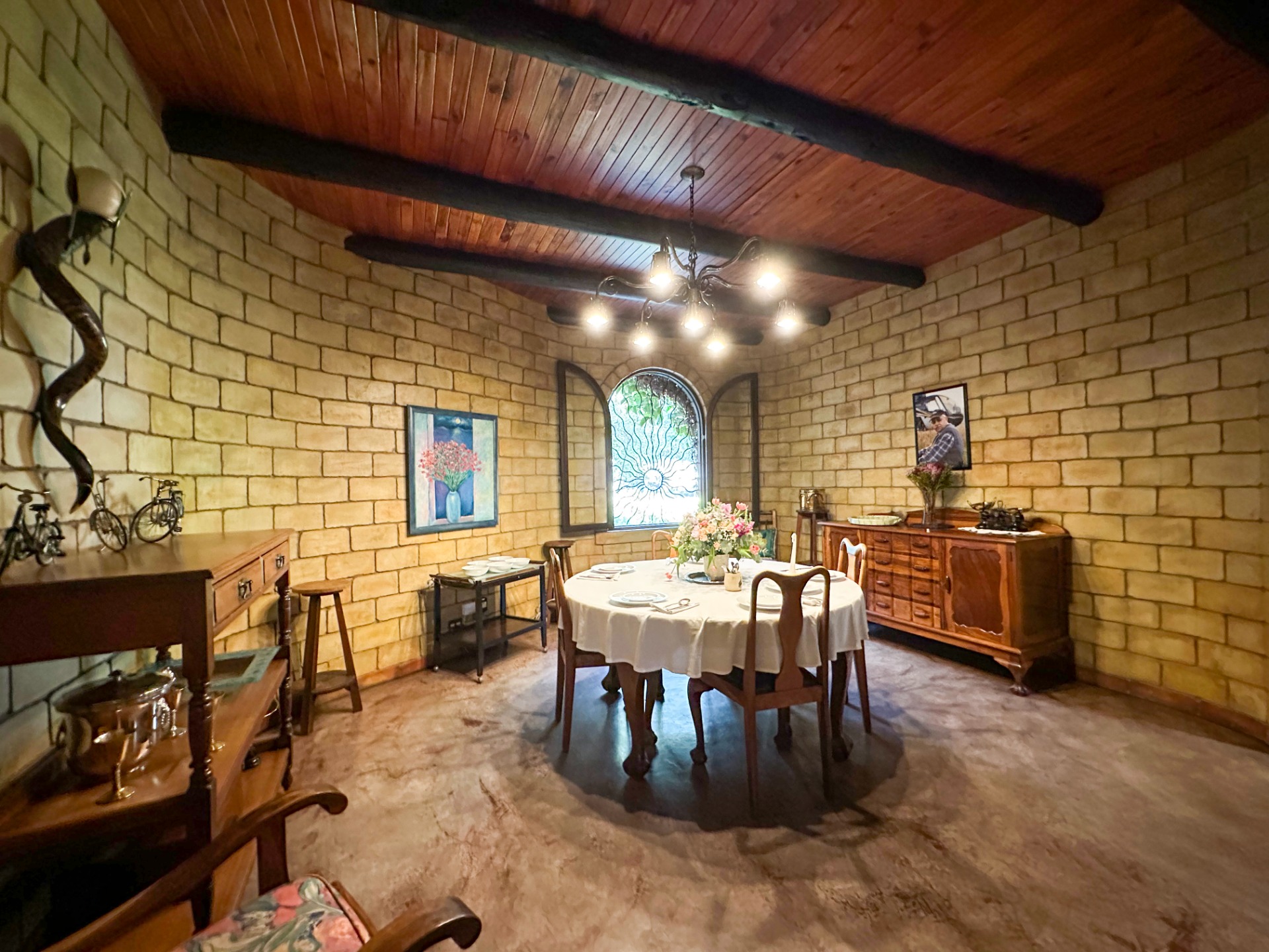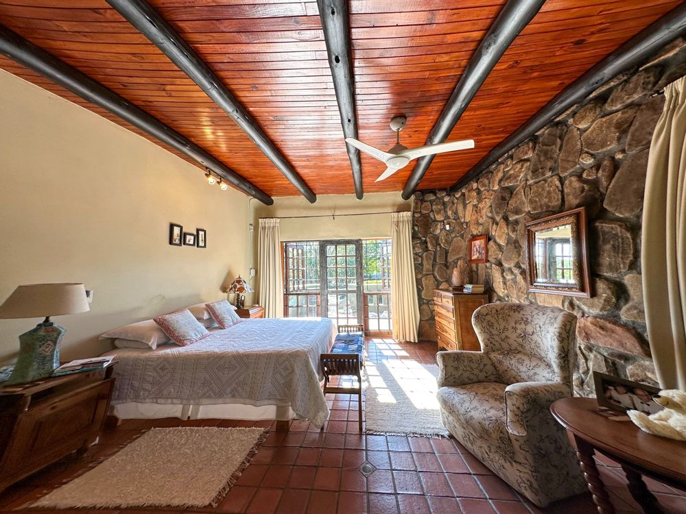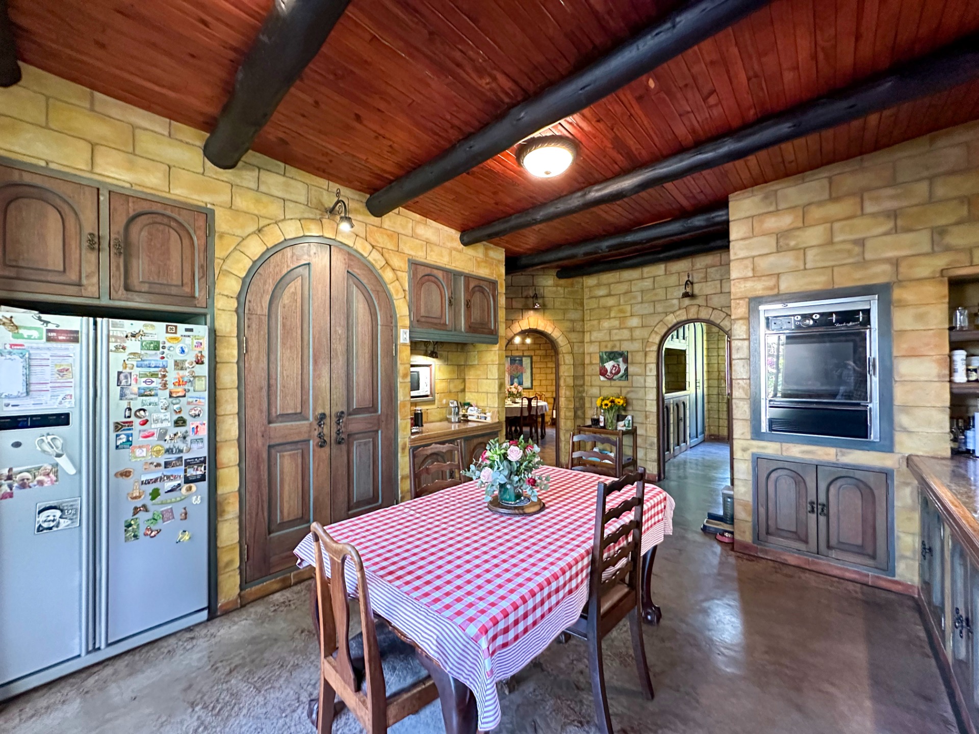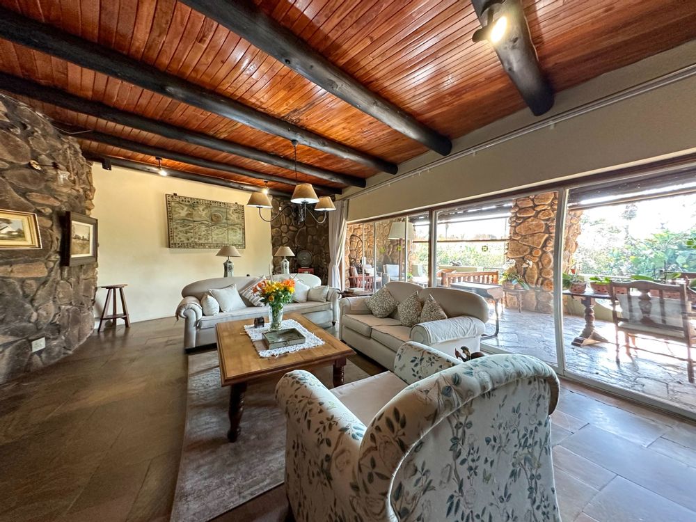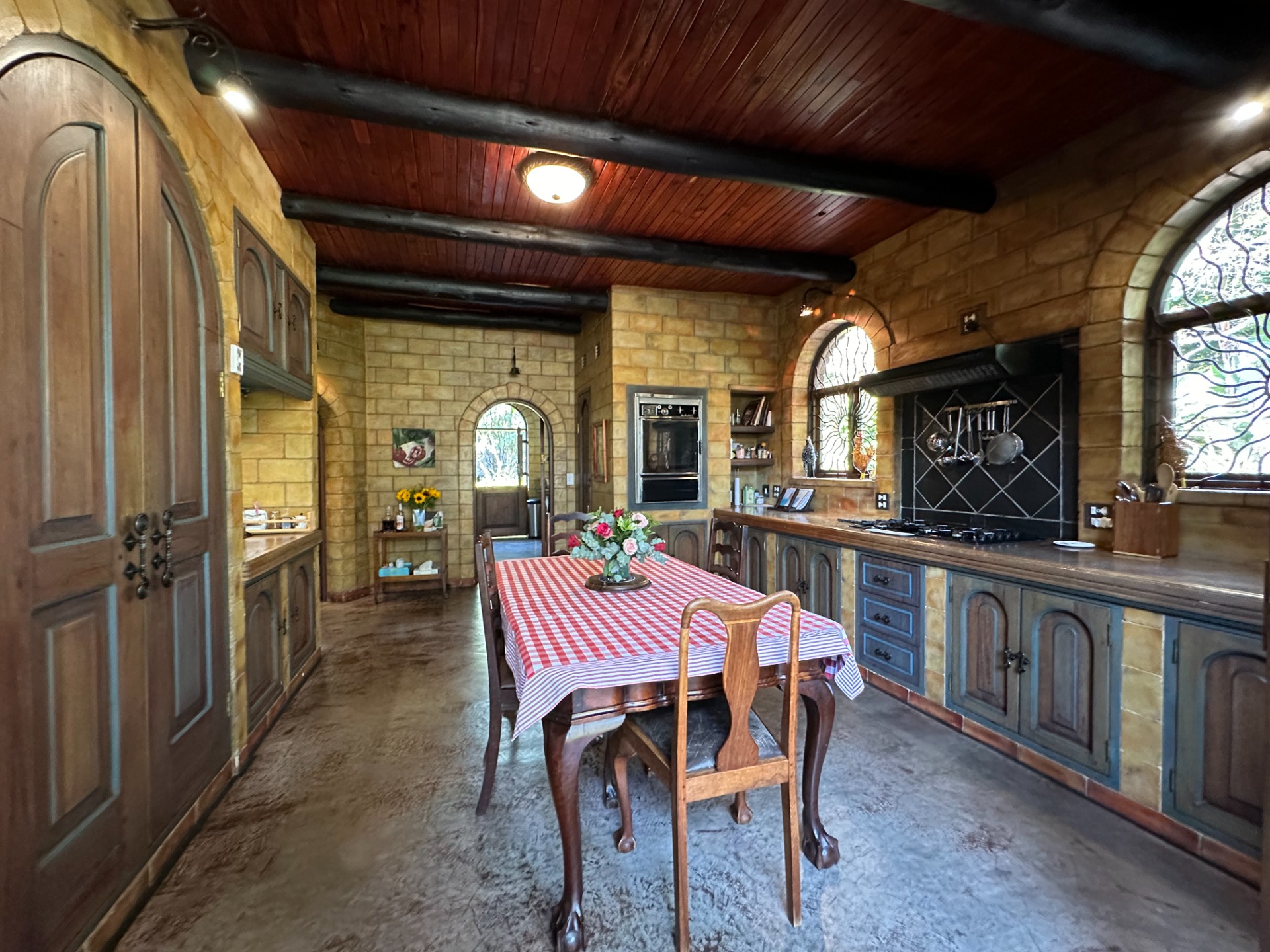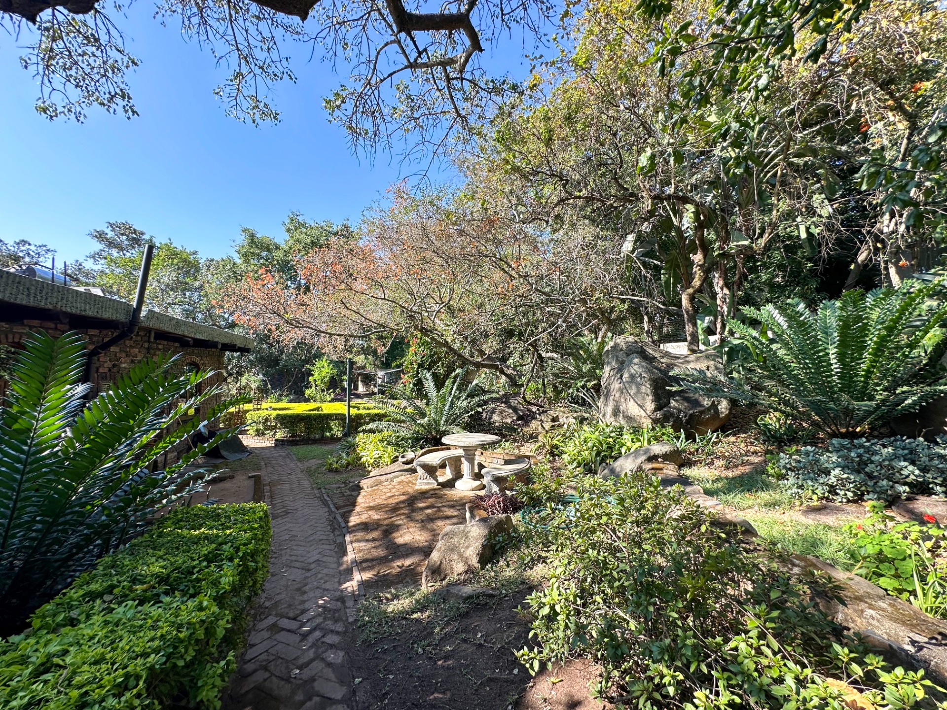 Nestled on a sprawling 3900 square meter erf, this home is surrounded by a beautifully landscaped garden featuring water fountains and a serene duck pond. The 512 square meter house stands out with its distinctive stone construction, providing a unique look and feel that promises a serene lifestyle of comfort and space.