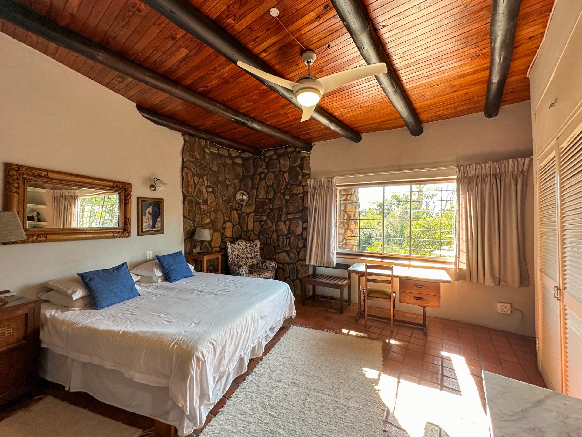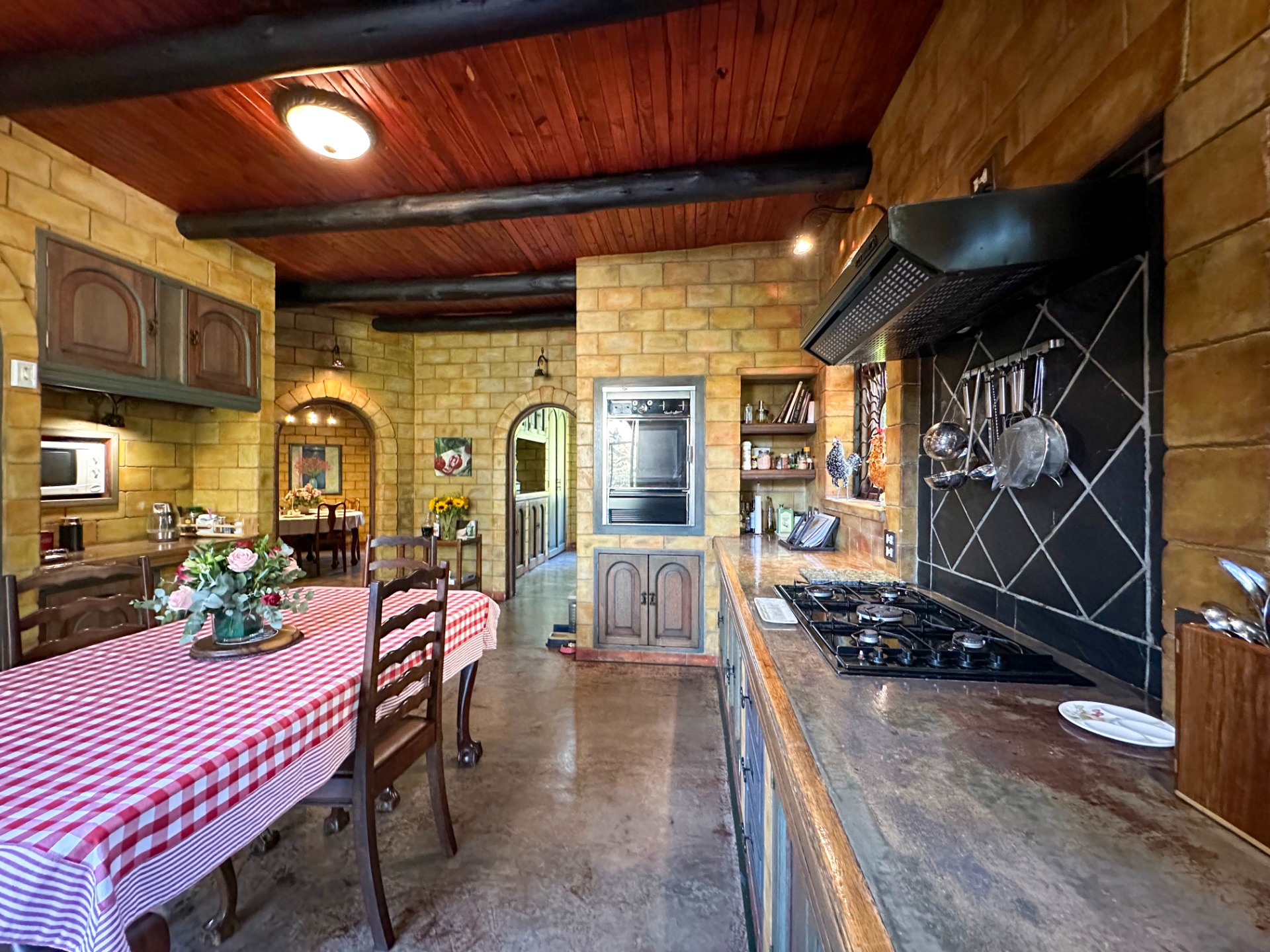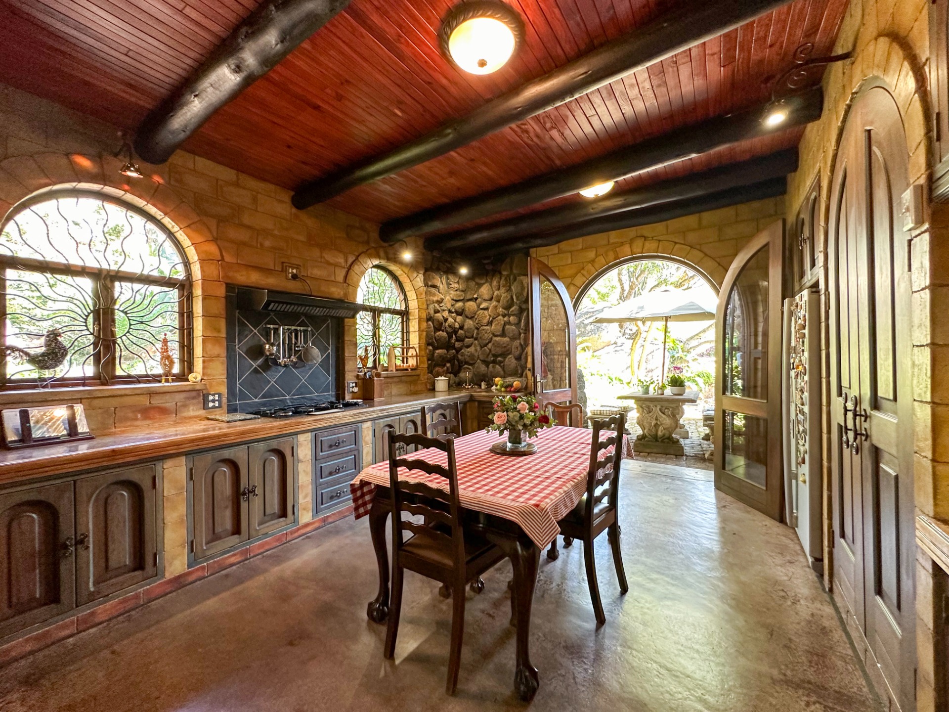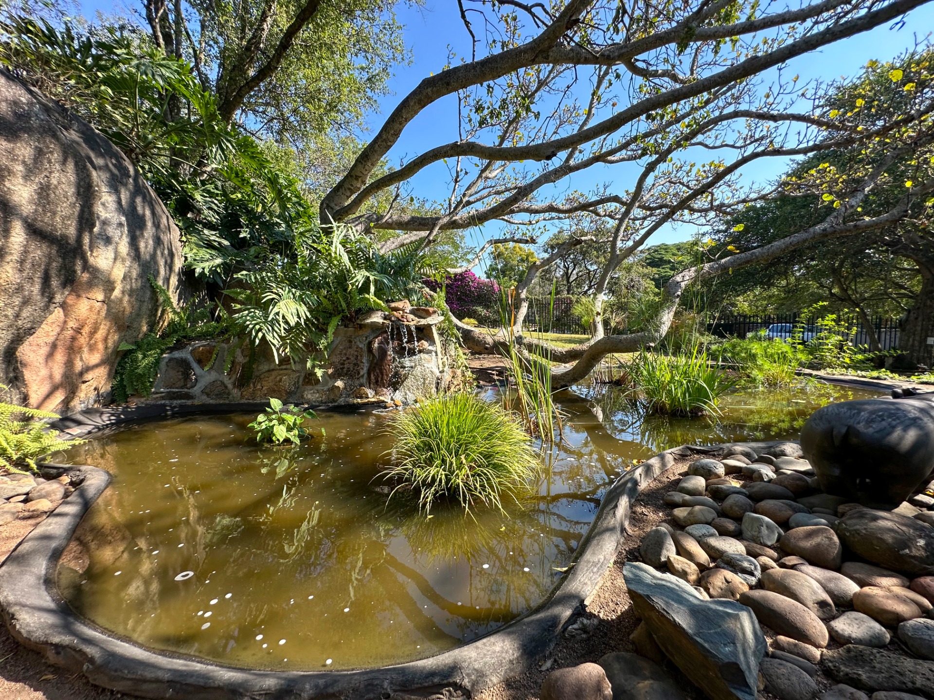 Nestled on a sprawling 3900 square meter erf, this home is surrounded by a beautifully landscaped garden featuring water fountains and a serene duck pond. The 512 square meter house stands out with its distinctive stone construction, providing a unique look and feel that promises a serene lifestyle of comfort and space.