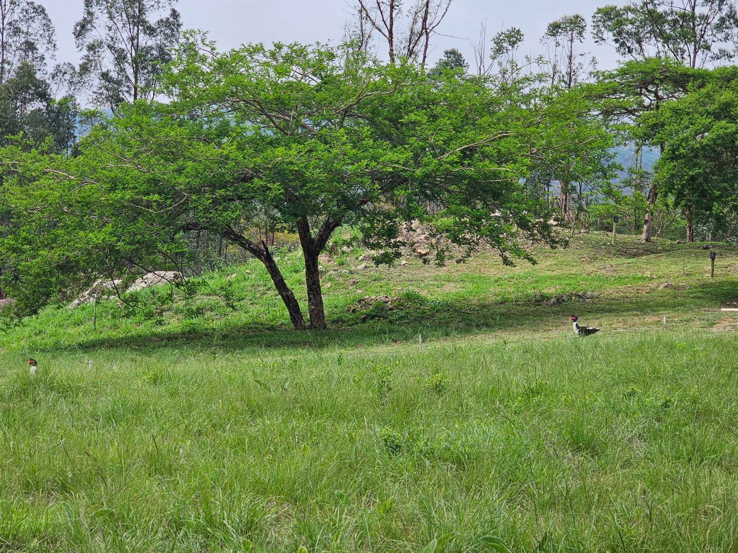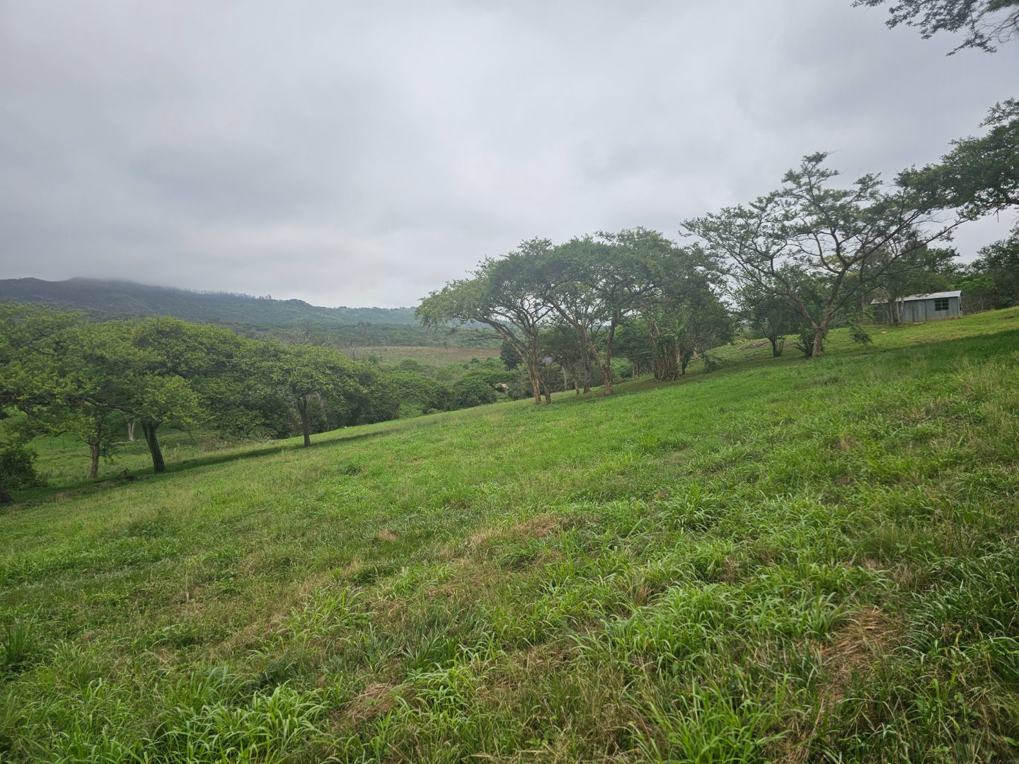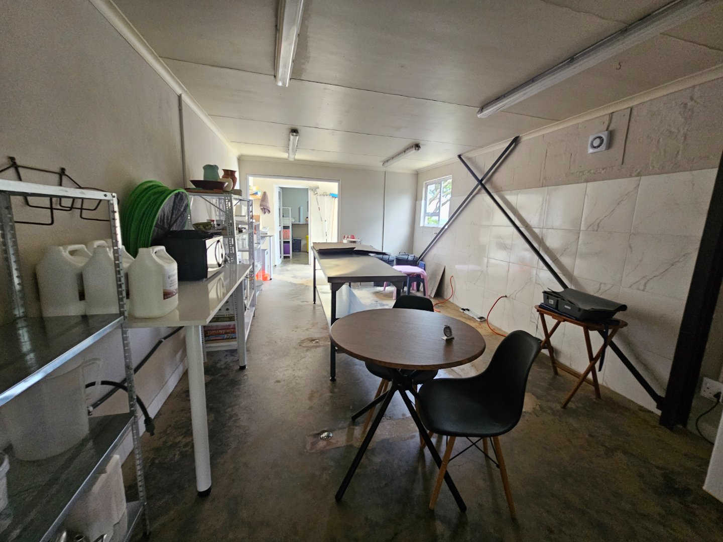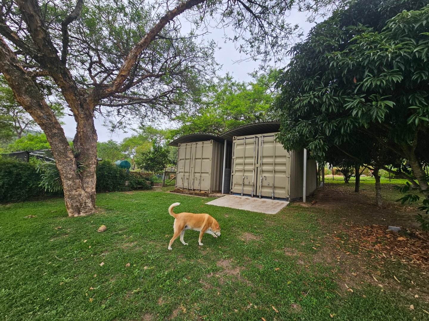 Large shed for farmers to work in. At present there's a bachelor's cottage in a section. There are snail or nursery tents up. There are chicken enclosures.