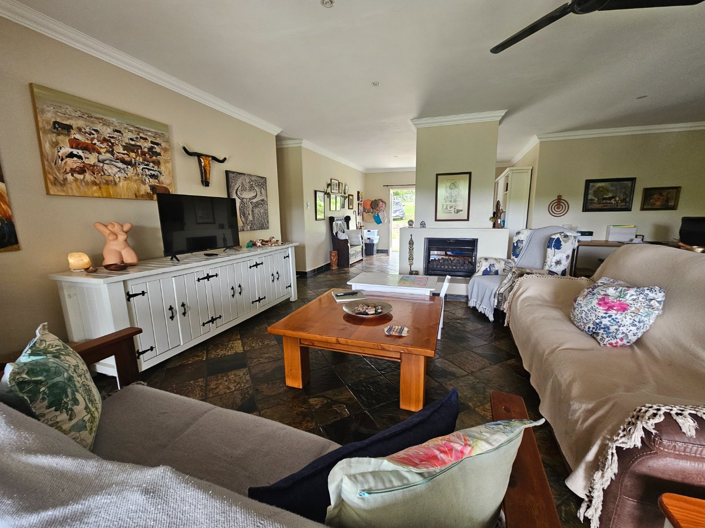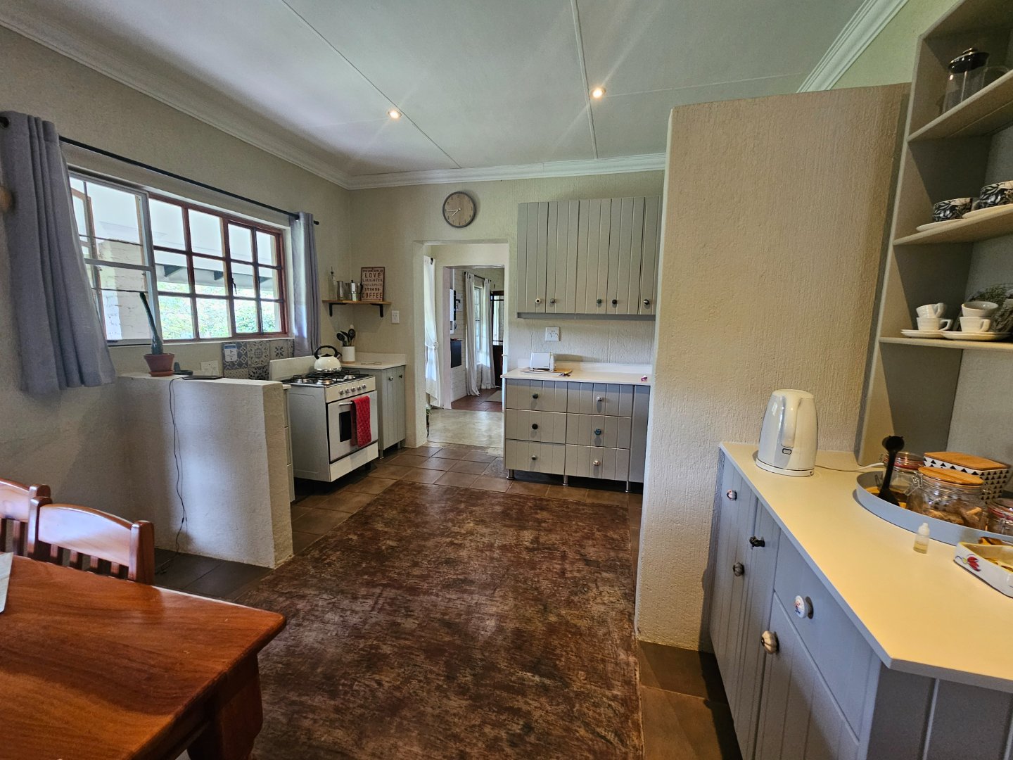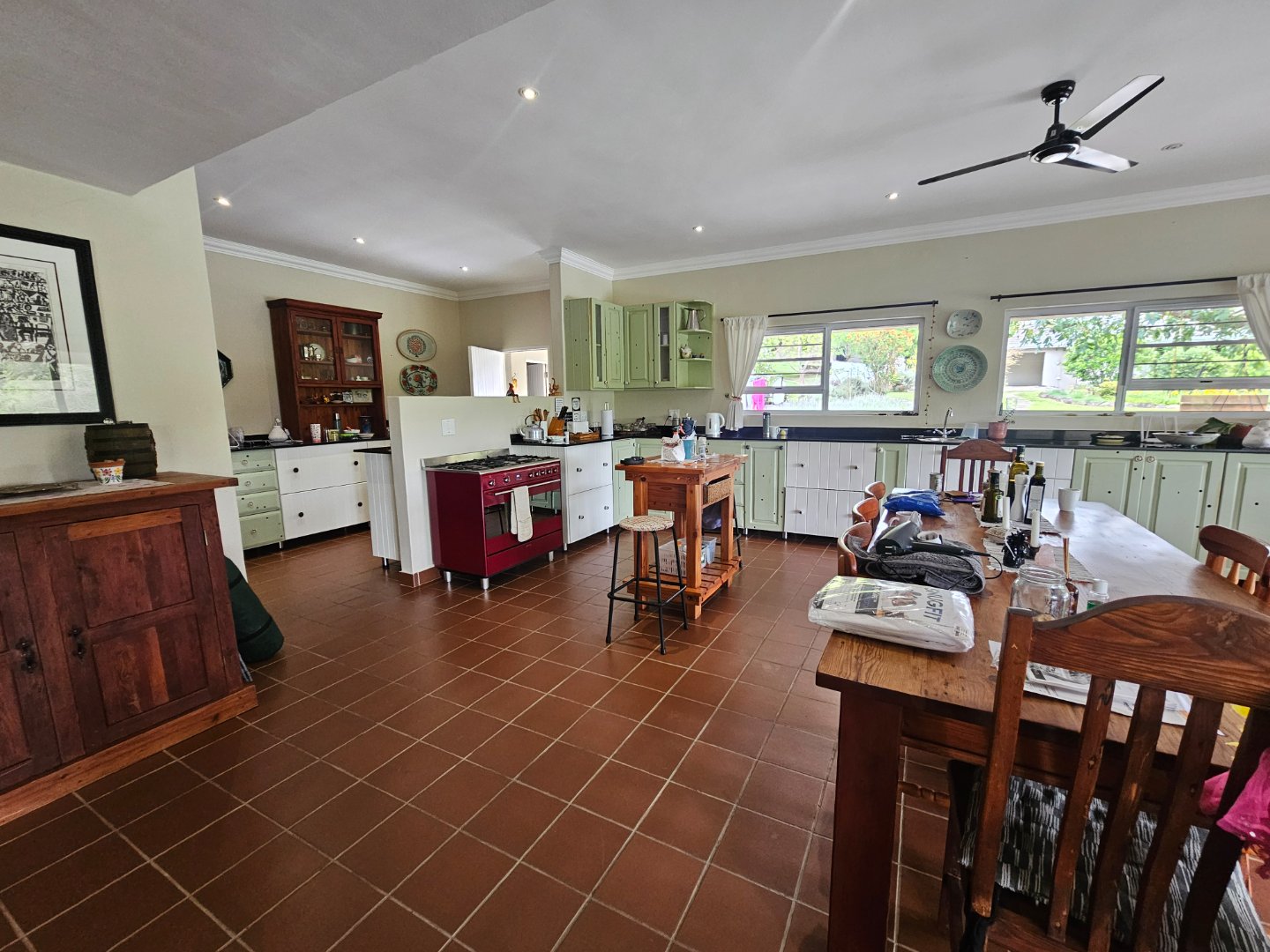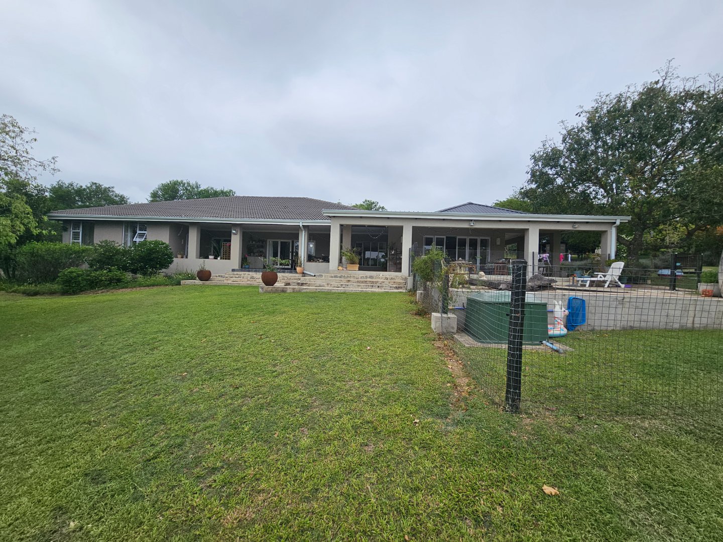 4 Bedrooms, 2 Batgrooms and a double le garage. Large farmhouse kitchen. With open plan living area. A beautiful infinity swinning pool. Over looking the visspruit river with beautiful farm views.