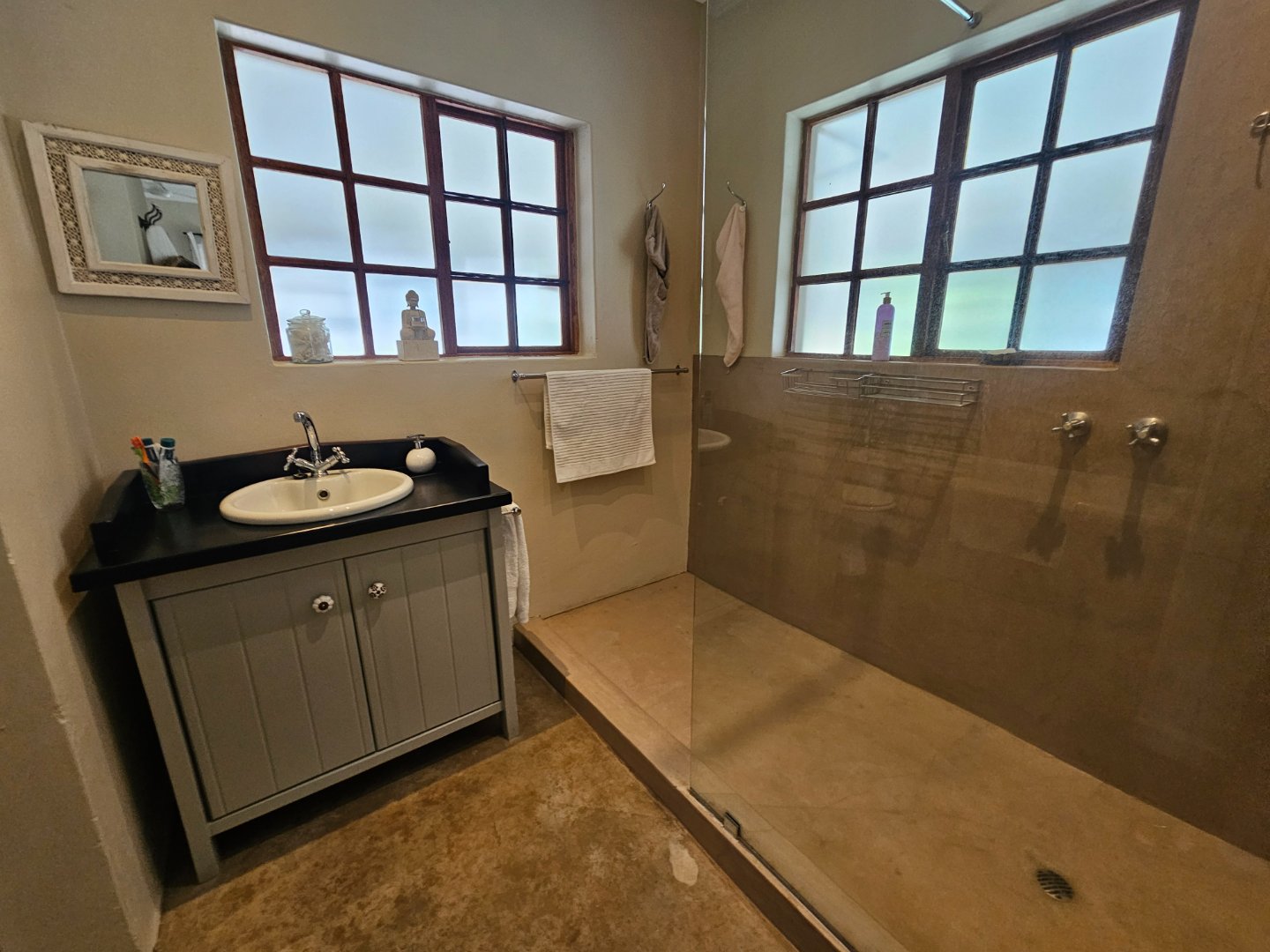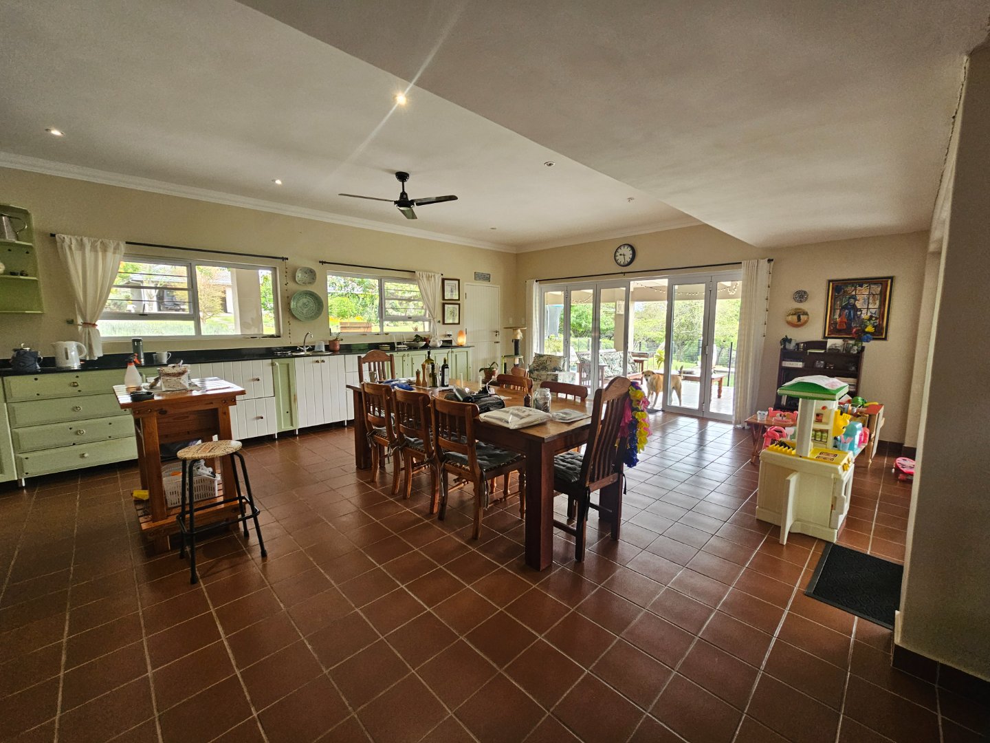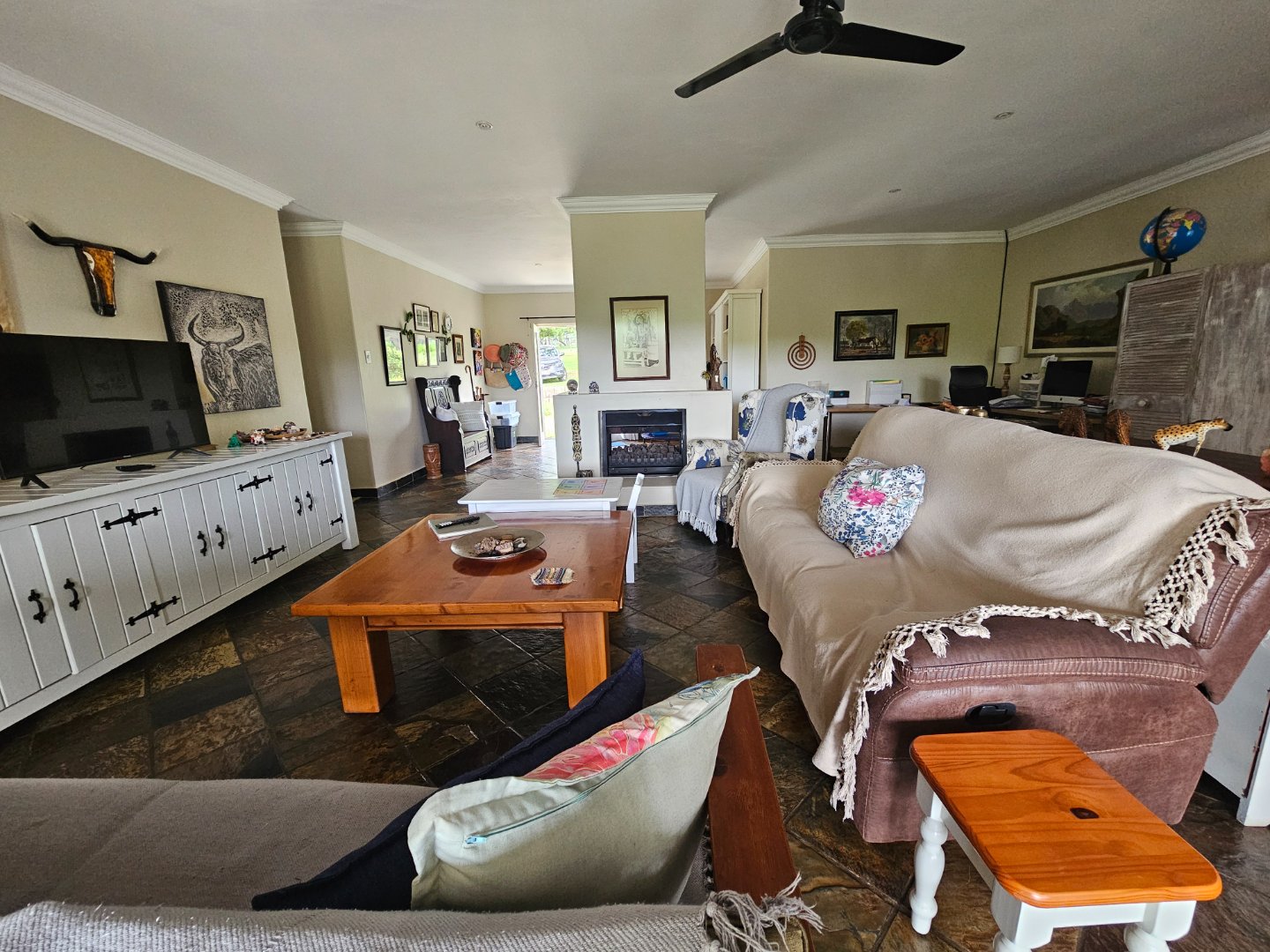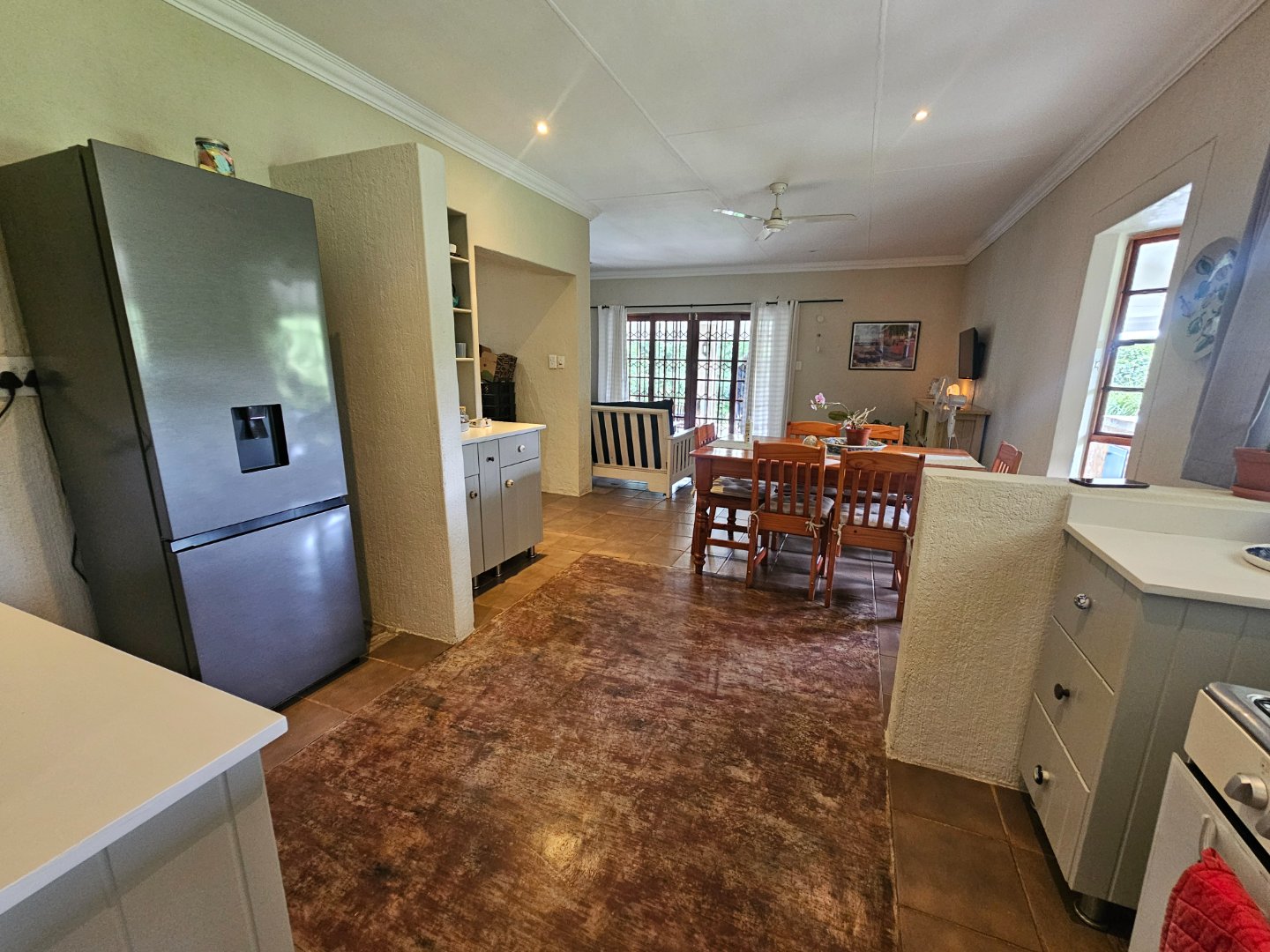 4 Bedrooms, 2 Batgrooms and a double le garage. Large farmhouse kitchen. With open plan living area. A beautiful infinity swinning pool. Over looking the visspruit river with beautiful farm views.
