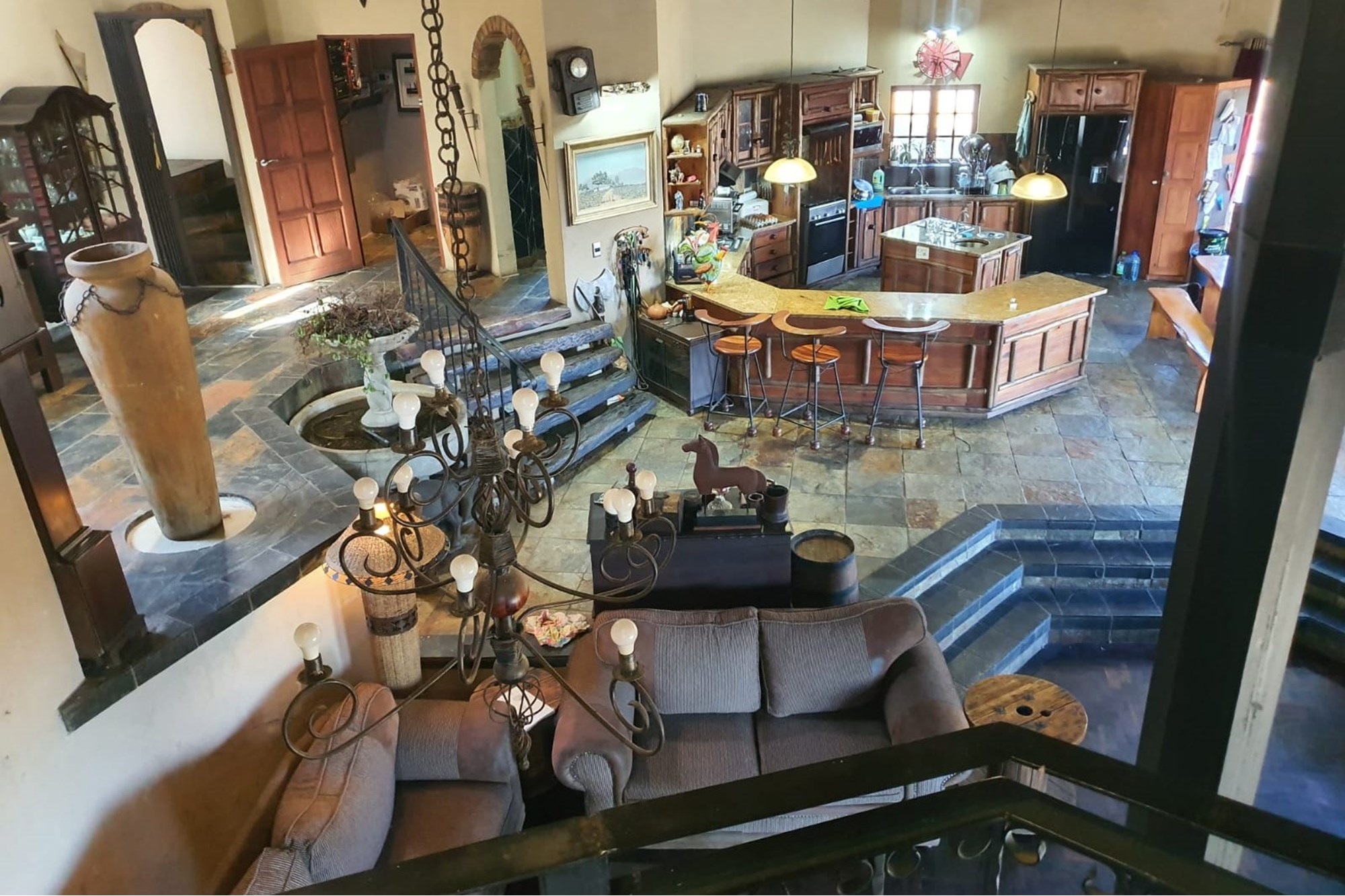 Large open plan living area with a patio, braai pit, pool and bar - because what`s a farm without fire and a little fun.