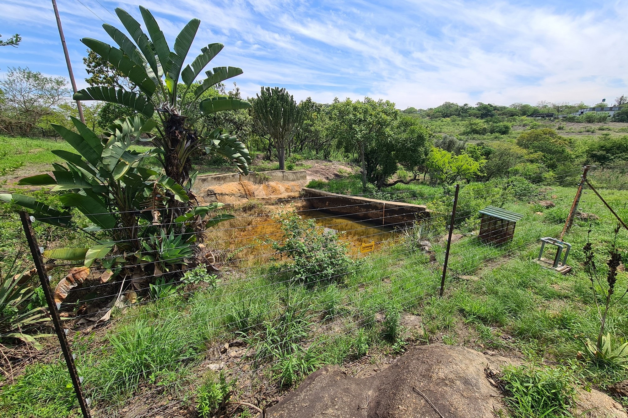 Water is abundant thanks to astrong borehole, delivering 1,500 liters per hour. Water is stored in three elevated tanks and gravity-fed to the property. A small non-perennial dam enhances the property’s charm and attracts a variety of birdlife.