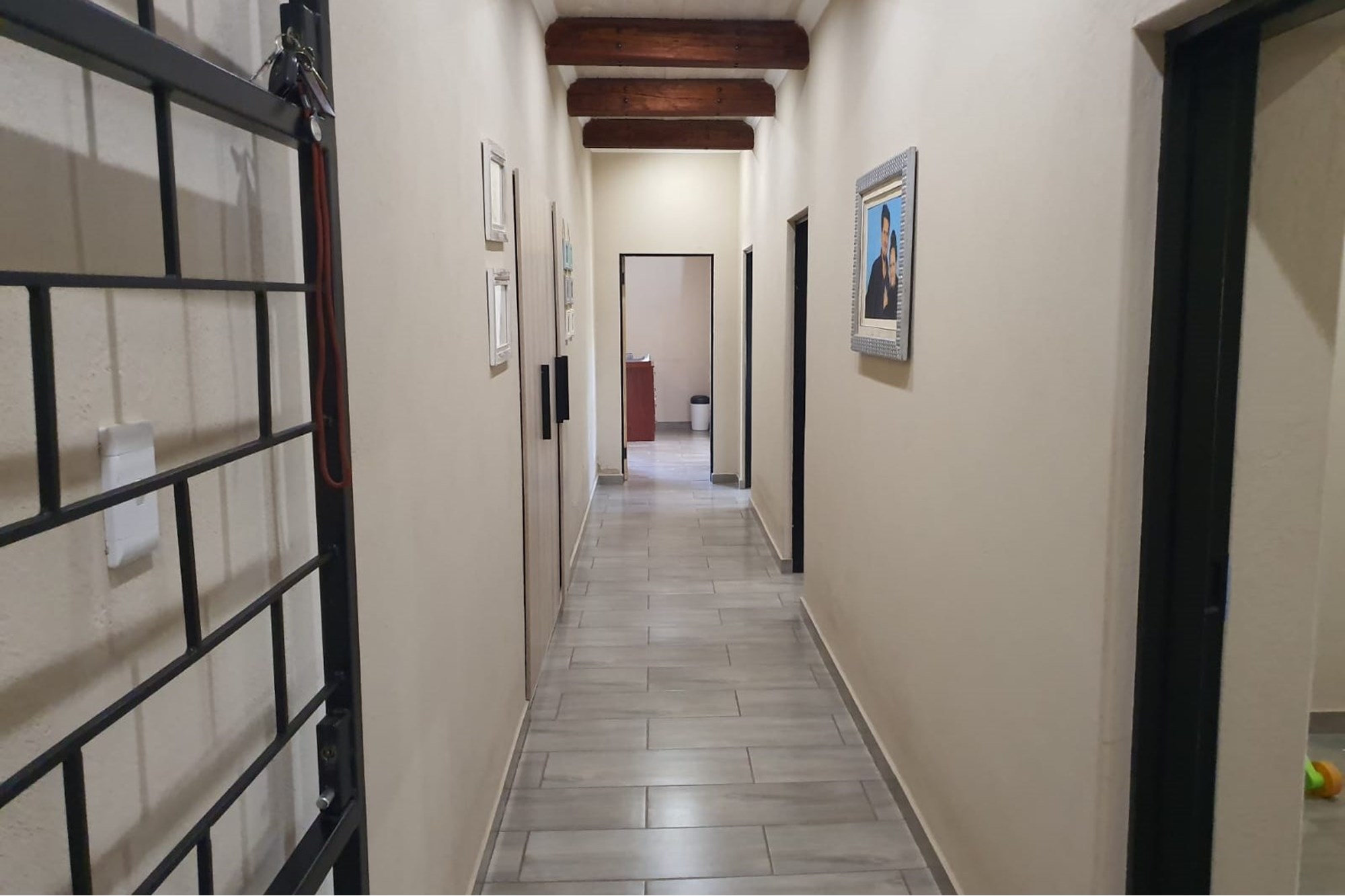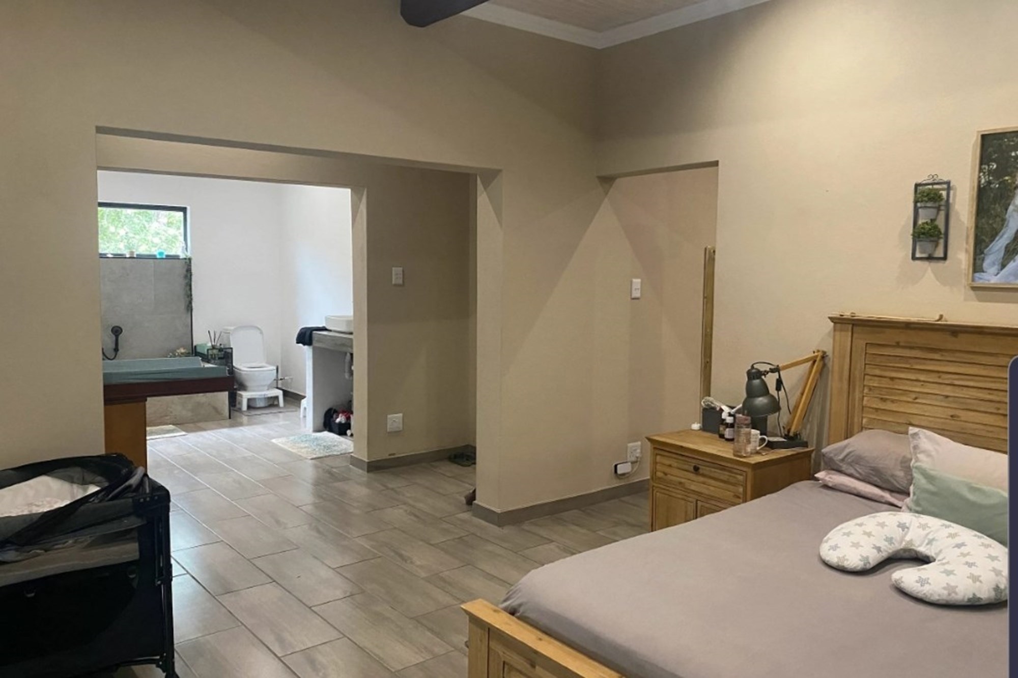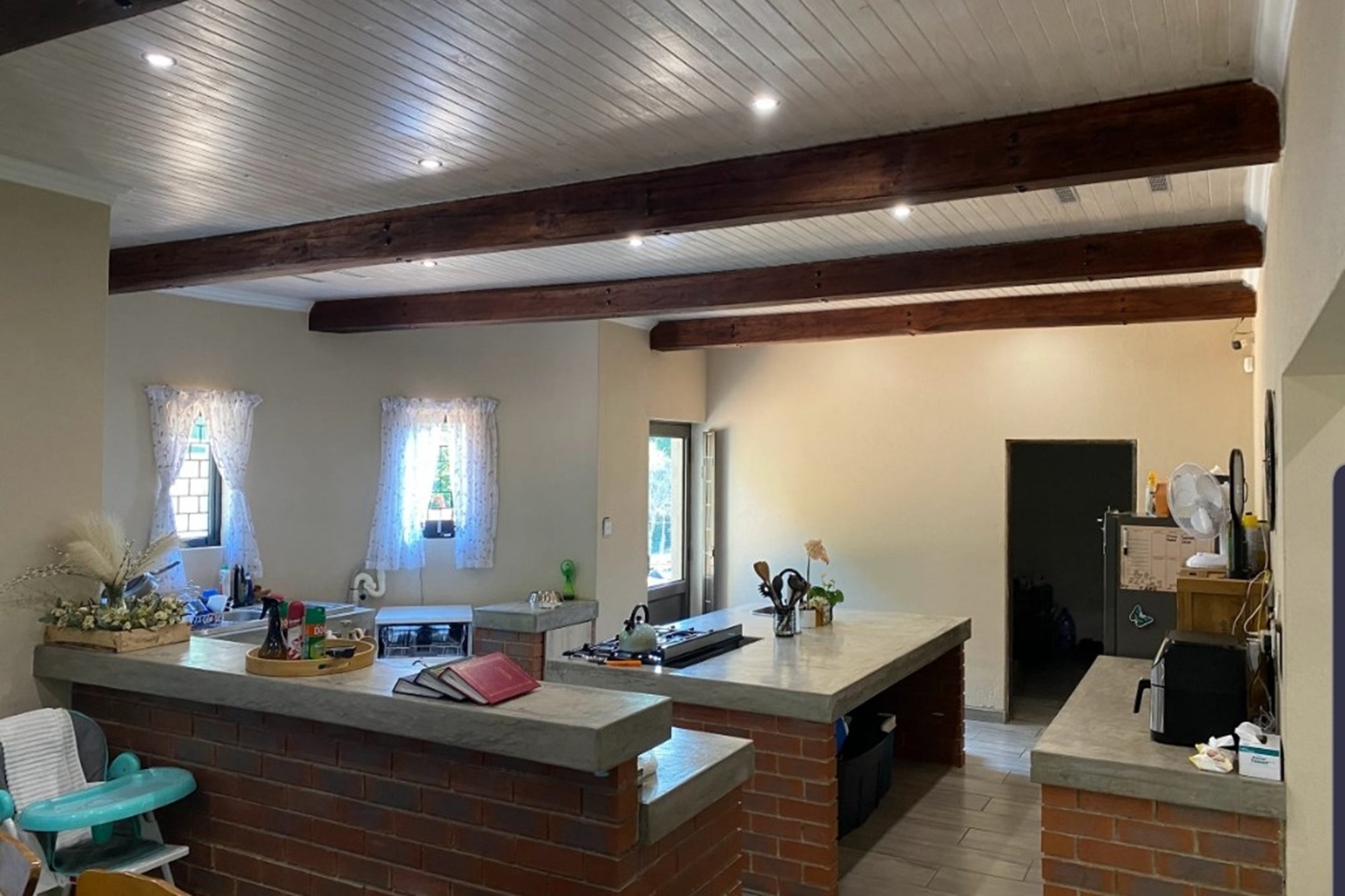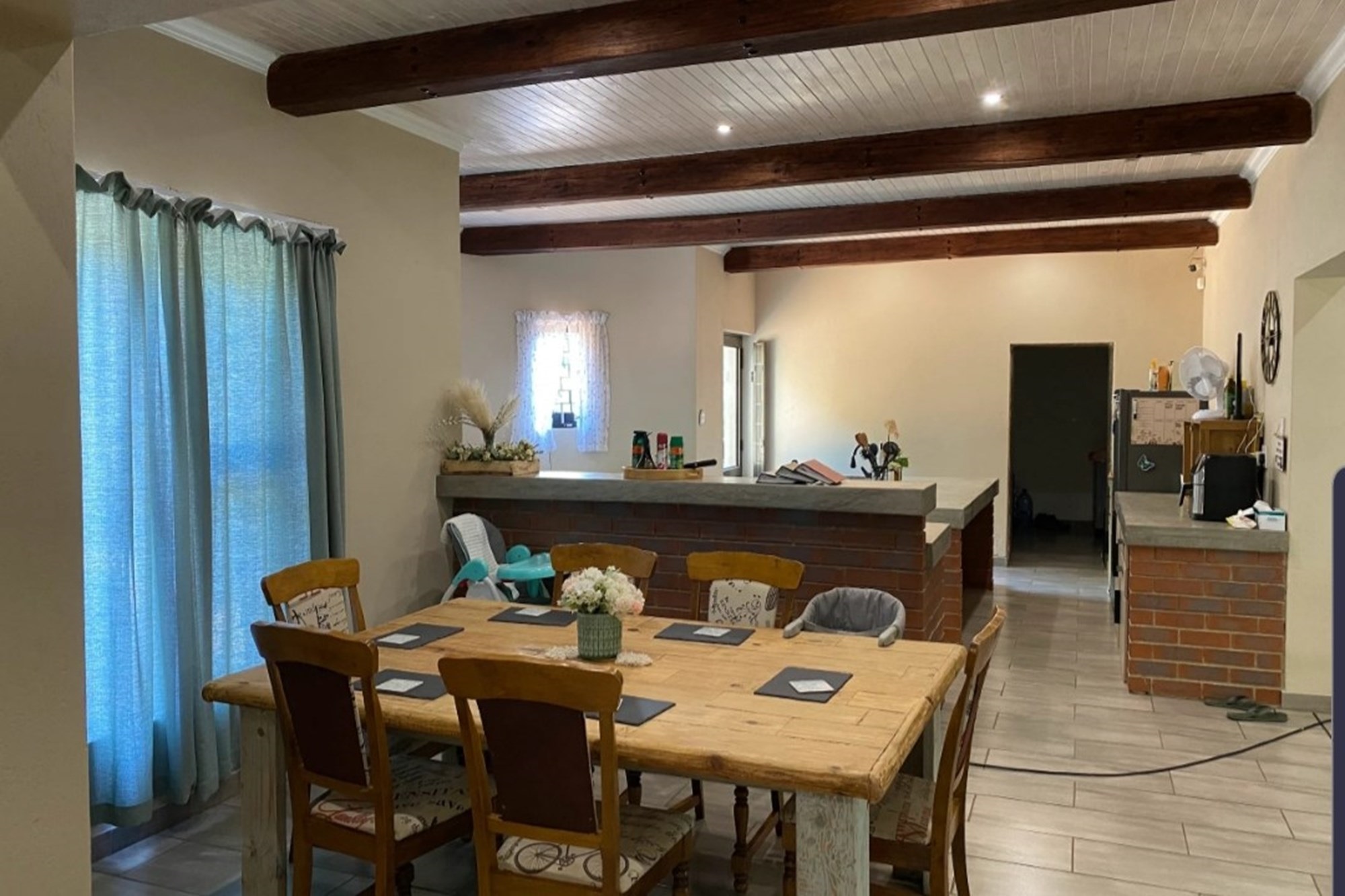 This owner-occupied farm boasts eco-friendly amenities such as10x 450W solar panels, 3x 5,1KW batteries and 10KVA inverter, ensuring sustainability and peace of mind. The spacious layout is complemented by high ceilings with exposed timber beams, new tiling throughout the home, custom built bathrooms and modern design kitchen. The upgraded bathrooms feature en-suite options and built-in closets, providing luxury and functionality.