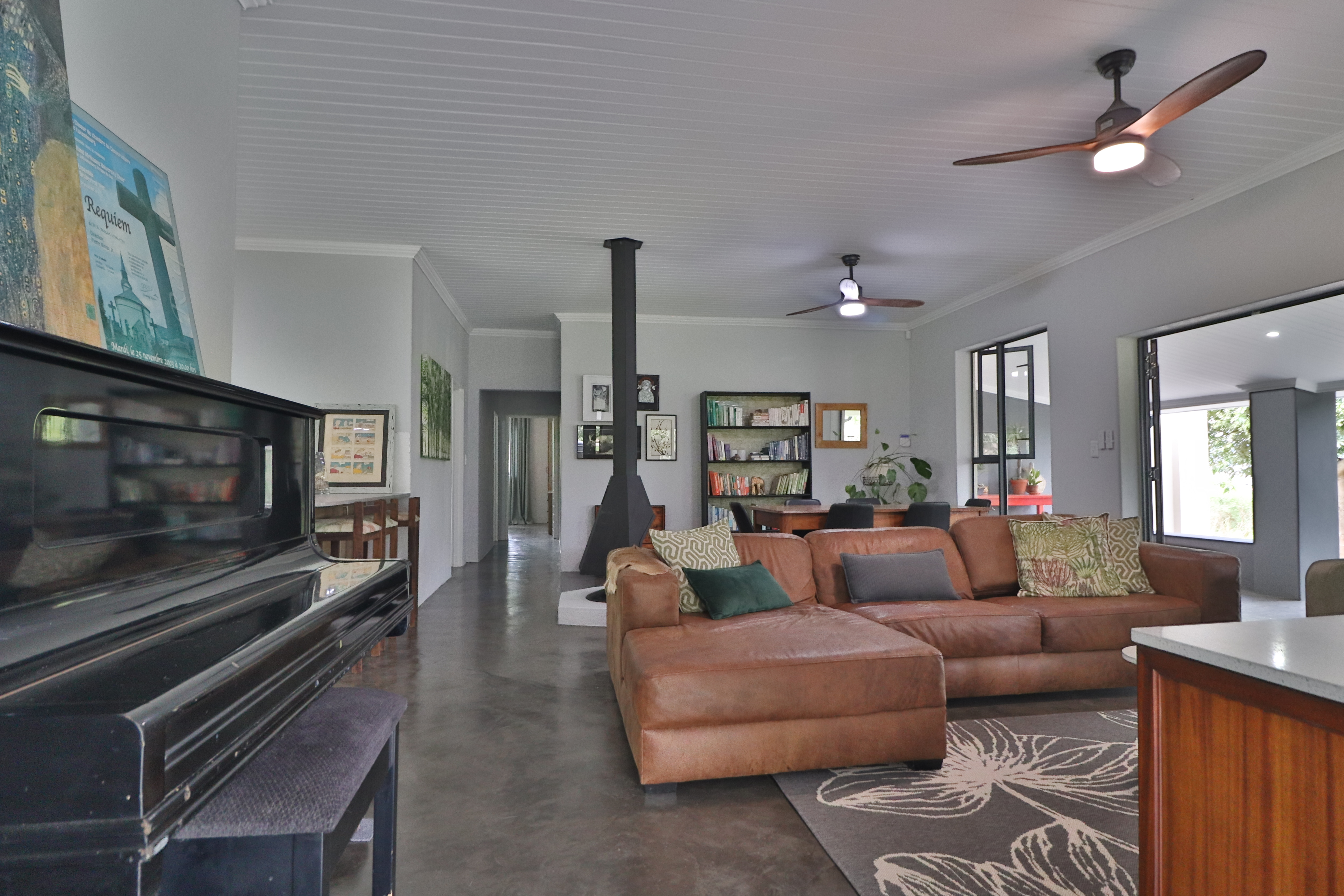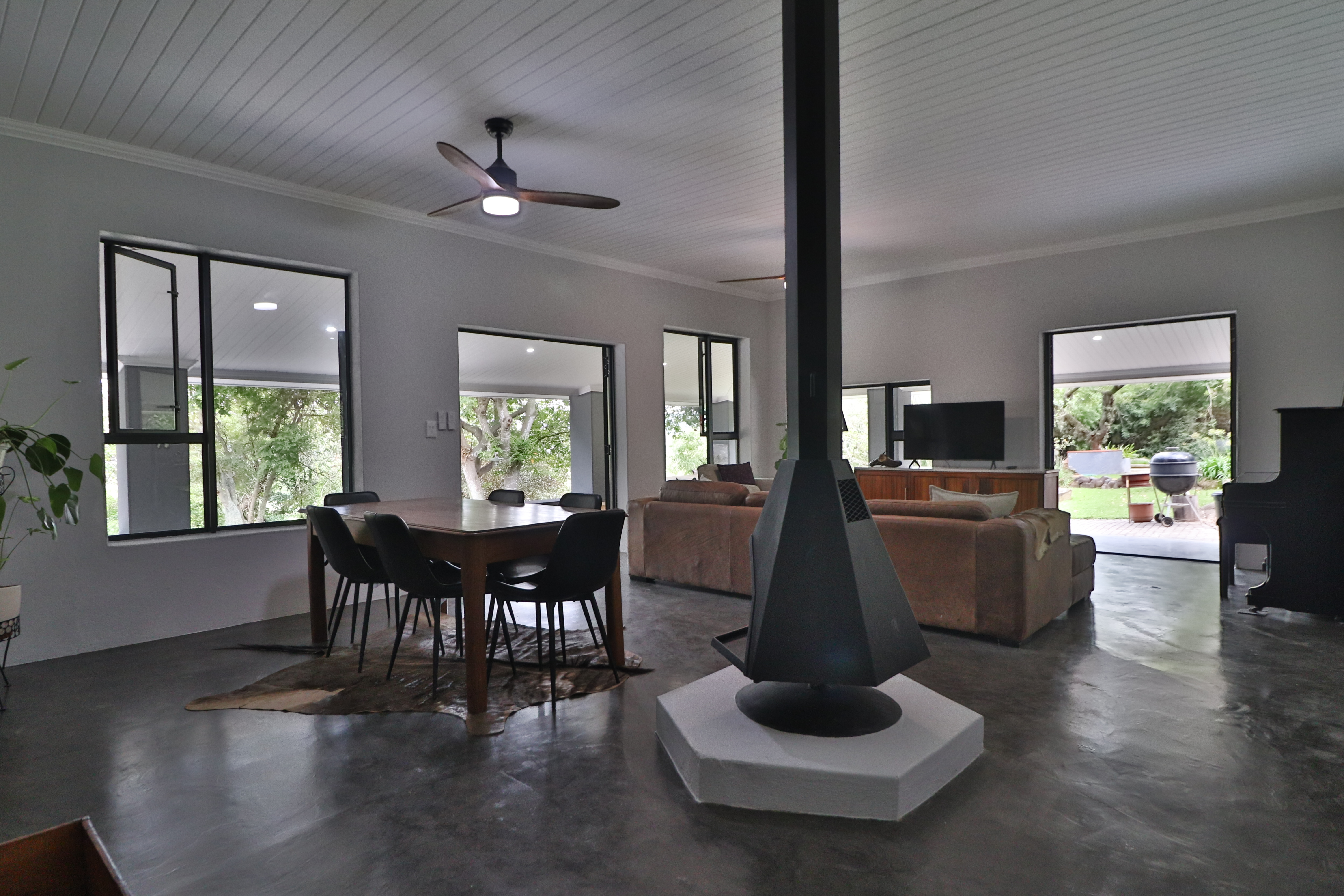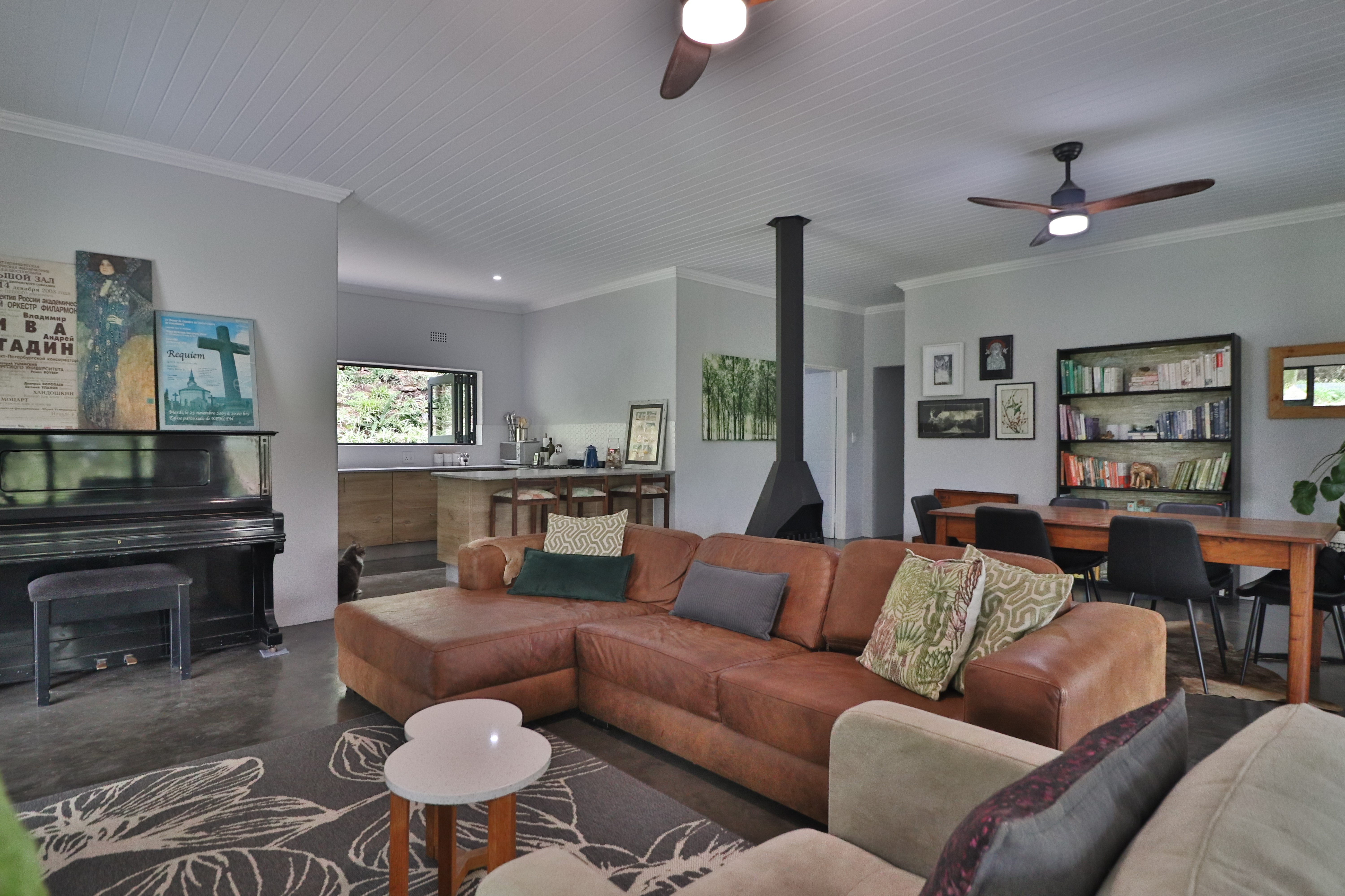 The undercover patio area invites the spectacular scenery and well-kept garden into the house.