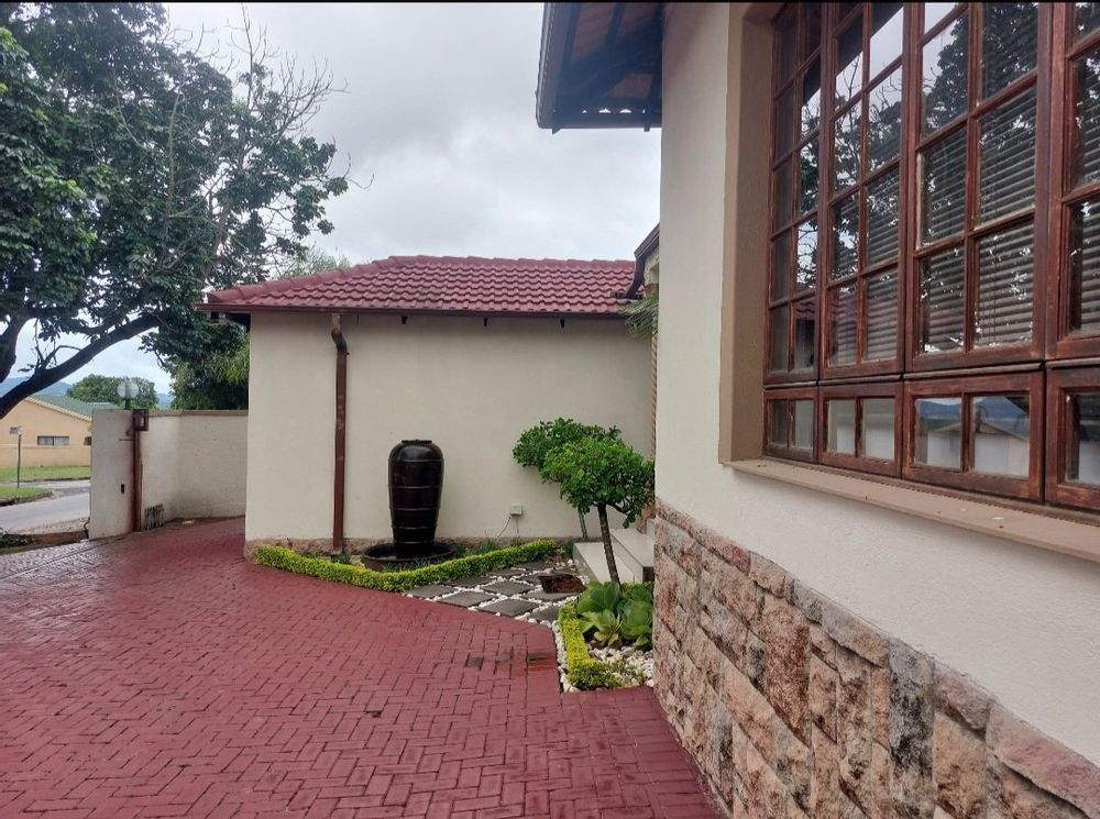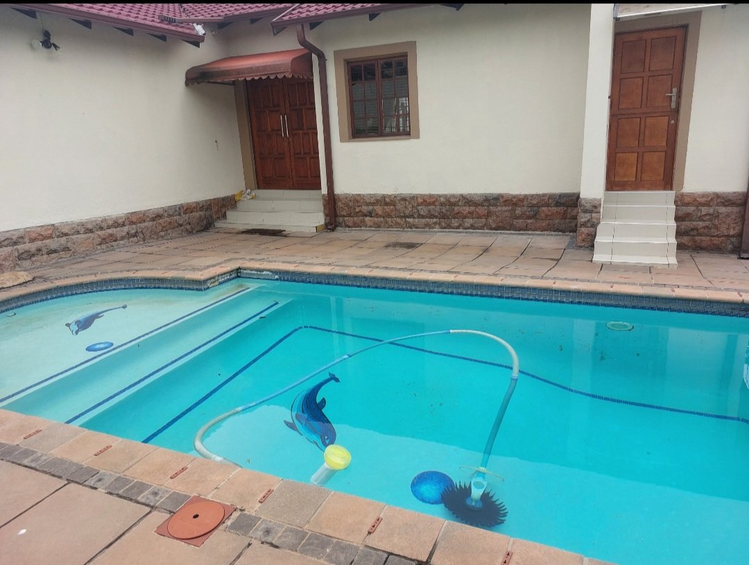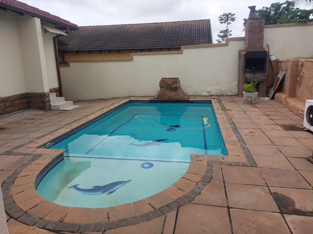 The garden is well maintained with a sparkling swimming pool for hot summer days.