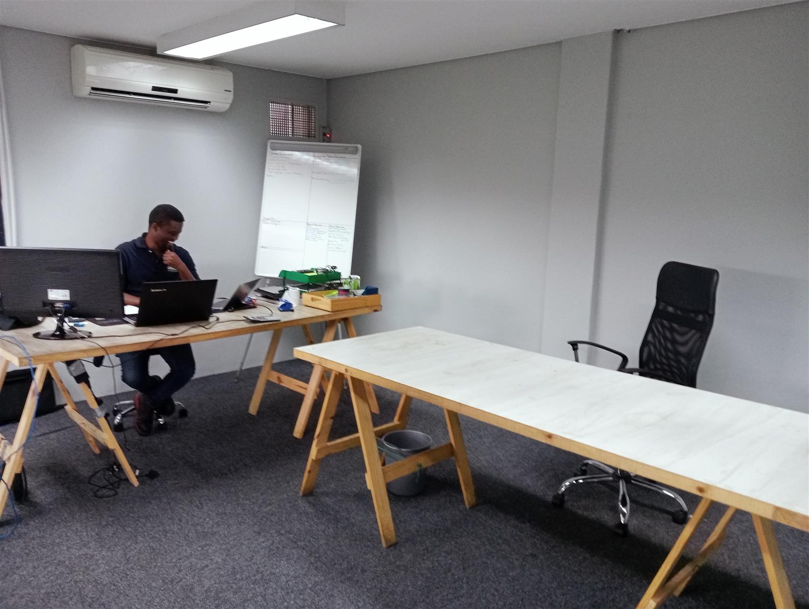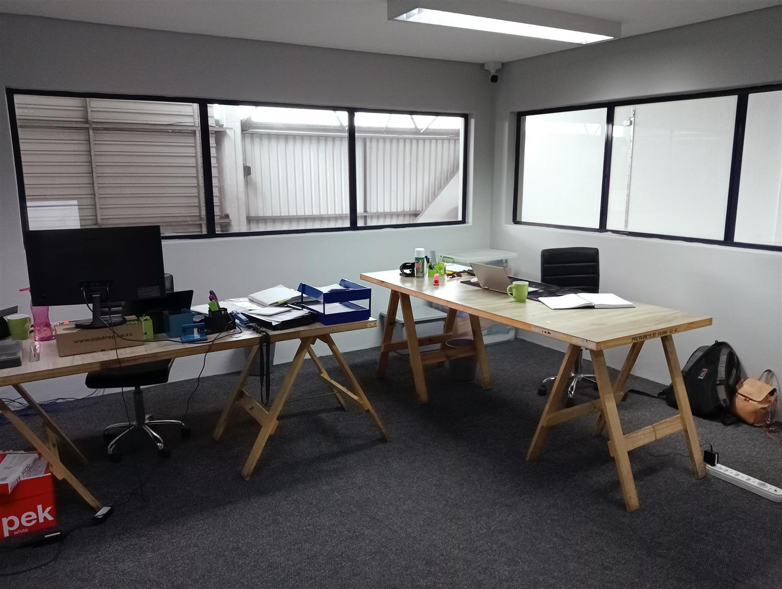2 well-kept offices upstairs, with an office in the factory area. Size: 253m2 Rent per month excl. vat: R23,265.88 Deposit: 3 months rental as deposit Escalation: 10% Power: 160 amps Parking bays: 3 directly in front of unit – not under cover. Reverse parking is practised