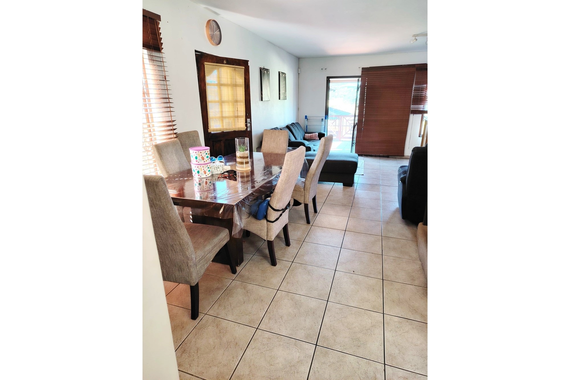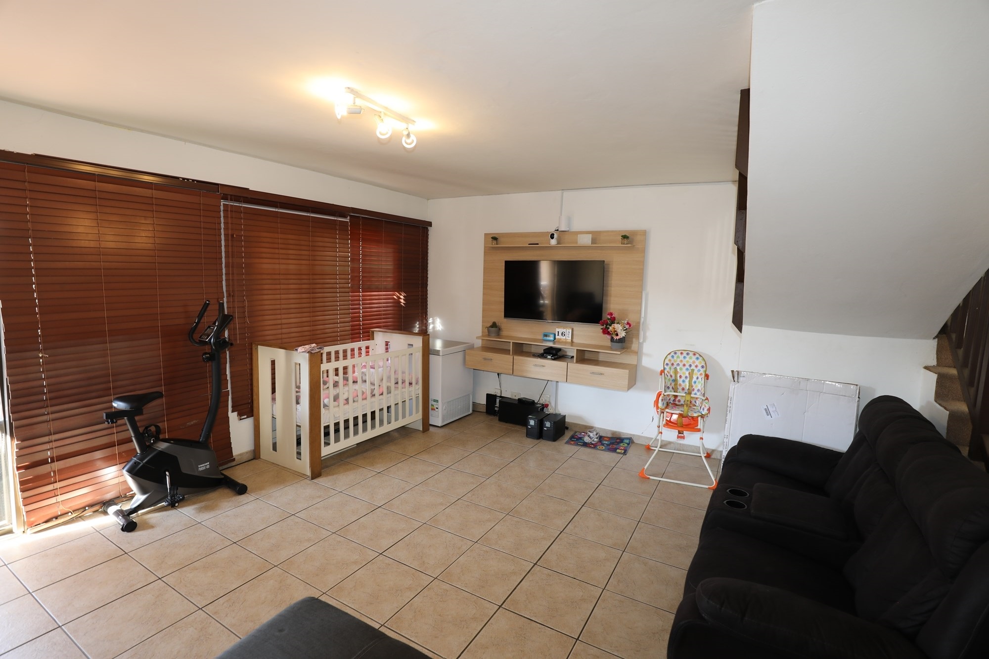 The townhouse features an open floor plan with spacious living areas complemented by tiled floors and aluminum windows, ensuring a light-filled and airy atmosphere. The fully equipped kitchen boasts built-in appliances, including a fridge and microwave, with ample storage space for all your culinary needs. The bathrooms, including an en-suite, are designed with modern showers for ultimate relaxation.