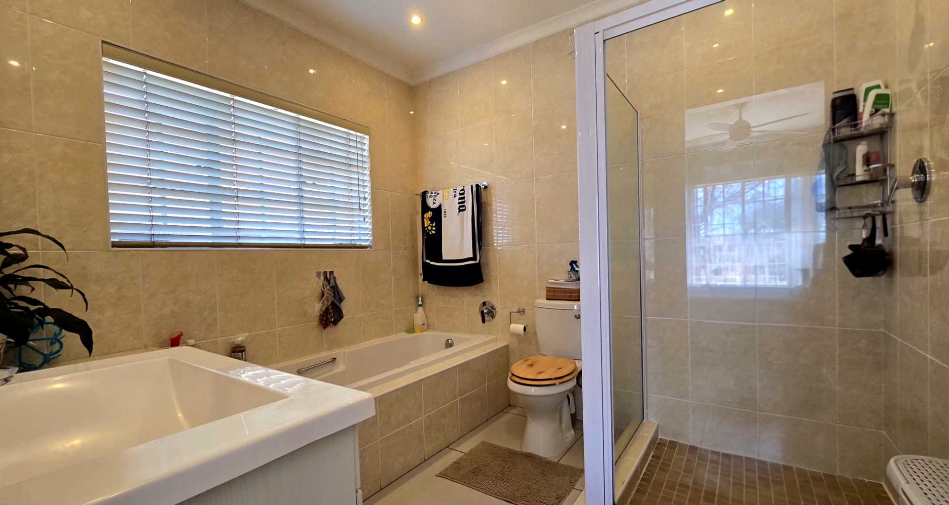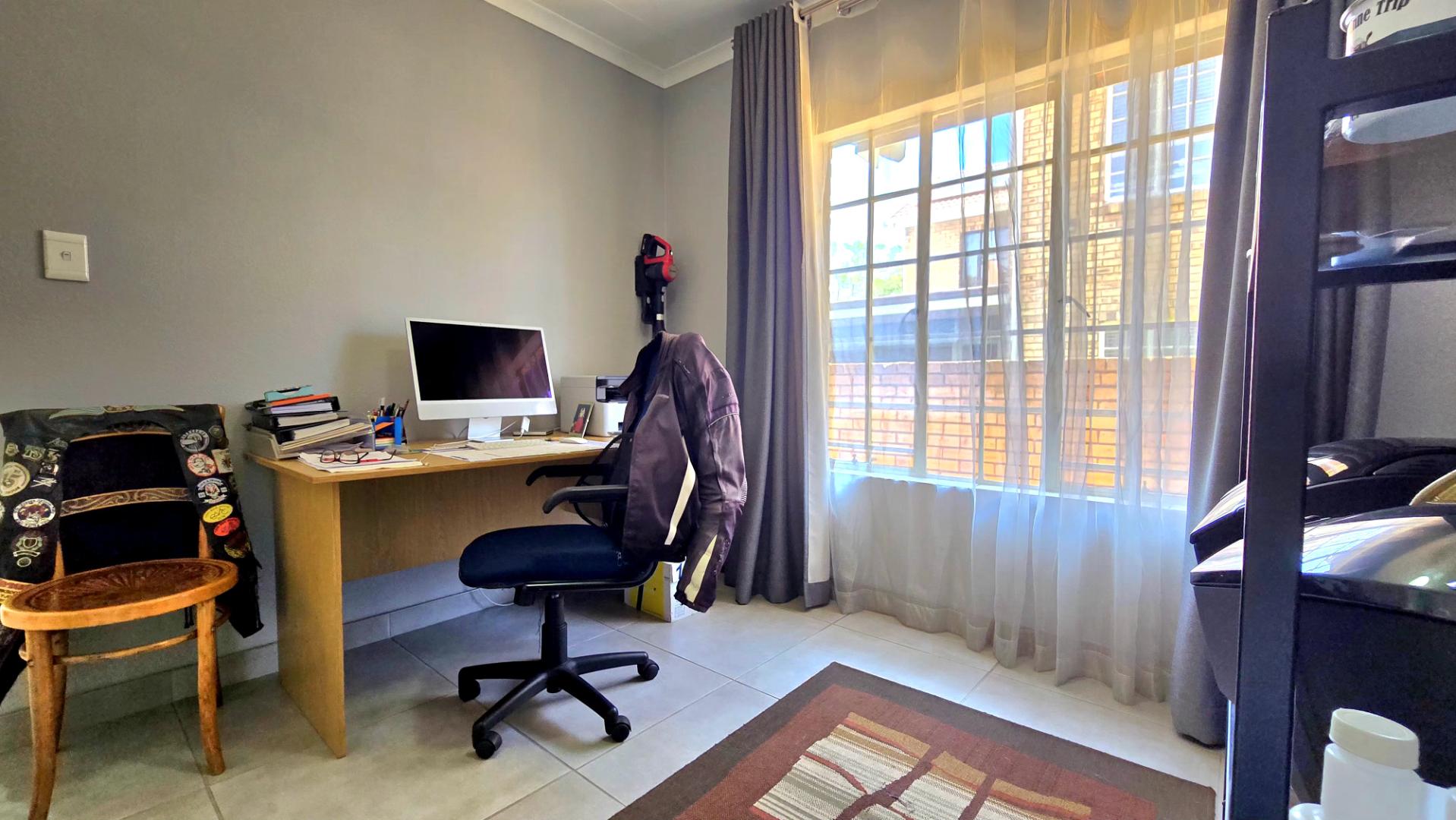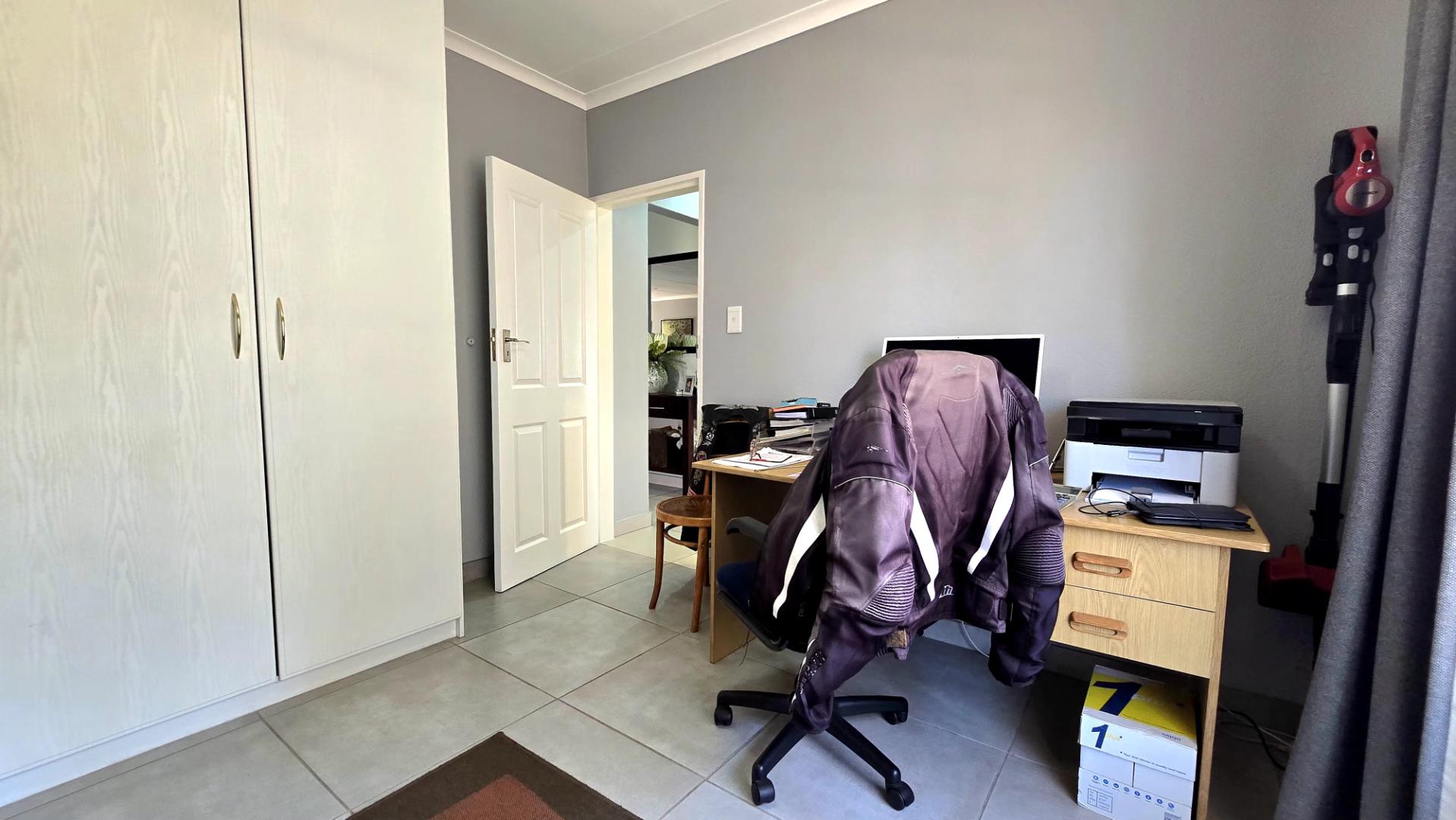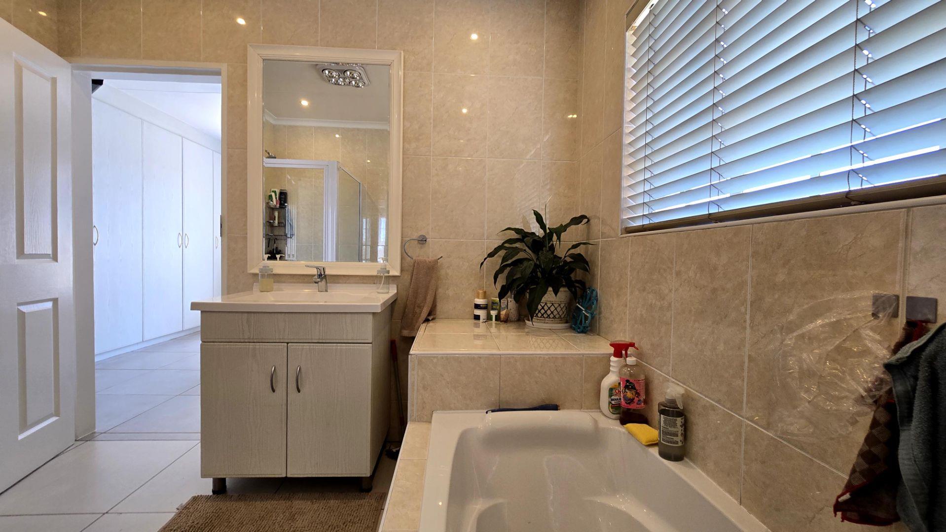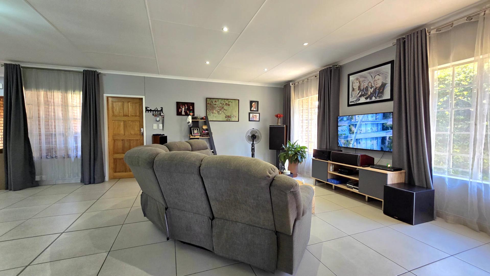 At the heart of the home is a contemporary kitchen, complete with sleek granite countertops and ample cupboard space, ideal for those who love to cook. The open-plan lounge and dining area provide the perfect setting for family gatherings and entertaining guests.
