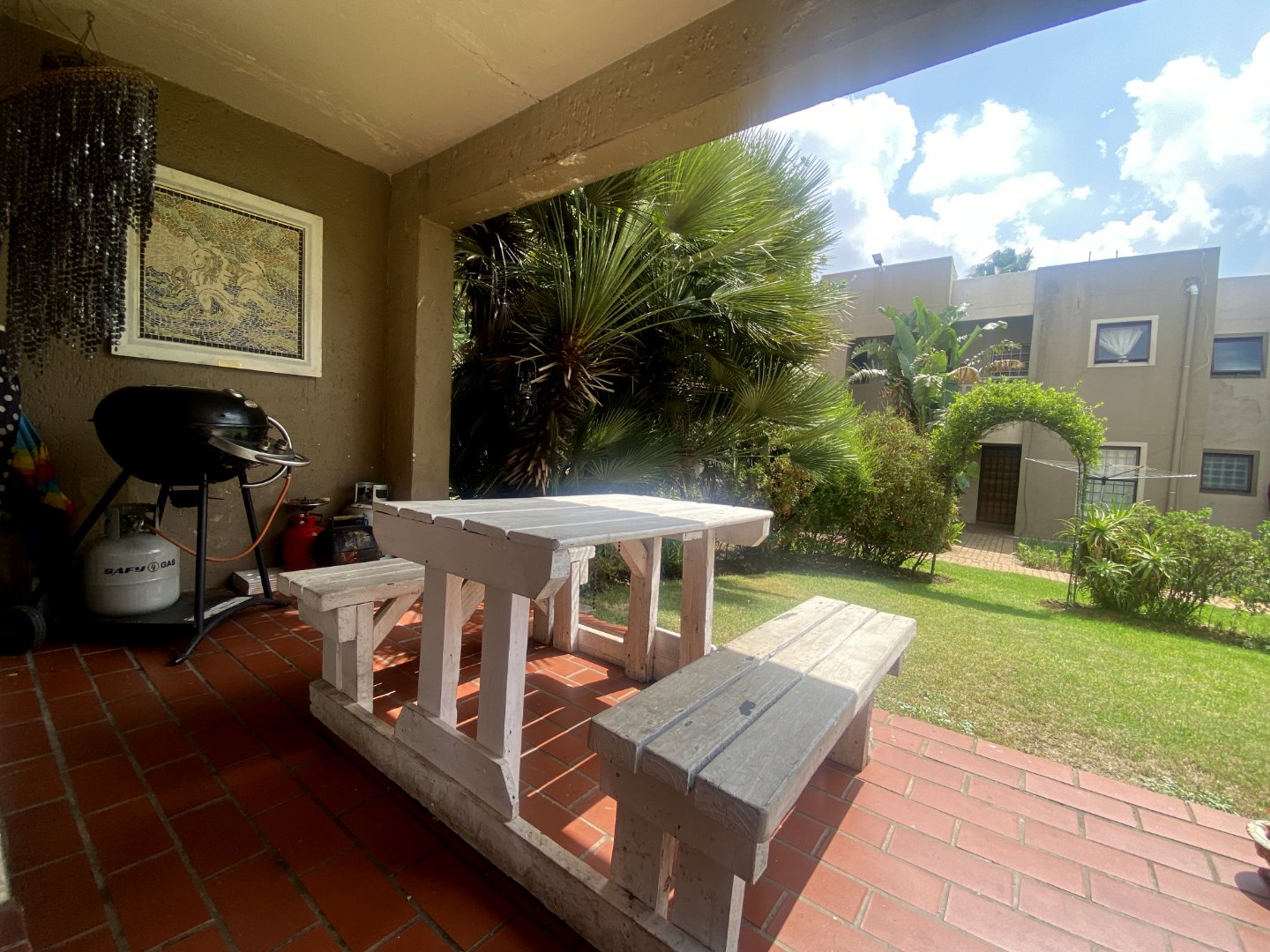 No transfer duties. This apartment is titled throughout. Open plan kitchen with granite tops. Space for a washing machine and a single fridge. Double basin. Large gas stove for those lovely family meals. Eat-in counter with space for 4 bar chairs. Spacious lounge with wooden doors opening onto a covered balcony and lovely established garden. The main bedroom can accommodate a queen size bed with double cupboard space. The second bedroom can accommodate a single or 3/4 bed and have built-in cupboards. The bathroom have a large shower, toilet and basin. Wooden blinds throughout. Covered carport in front of the unit. Visitors parking. The complex has beautiful gardens. 24 hour guarded security. CCTV all round the complex. Electric fencing. Strict controlled visitors access. Within walking distance to all amenities, transport and freeways.